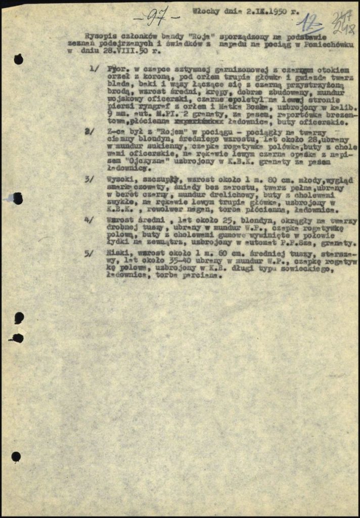 Utrwalono w nim relację świadka Władysława Majewskiego, który za to tylko, że widział zdarzenie 28.08.1950 akcji zbrojnej oddziału Mieczysława Dziemieszkiewicza ps. Rój na stacji w Pomiechówku, odsiedział wyrok w stalinowskim więzieniu. Materiał opatrzony jest komentarzem historycznym dr. Piotra Oleńczaka. Po projekcji zebrani wysłuchali wykładu Kacpra Kempistego z Oddziałowego Biura Edukacji Narodowej Instytutu Pamięci Narodowej, dotyczącego kontekstu historycznego sytuacji politycznej, która była genezą fenomenu powojennej konspiracji niepodległościowej.