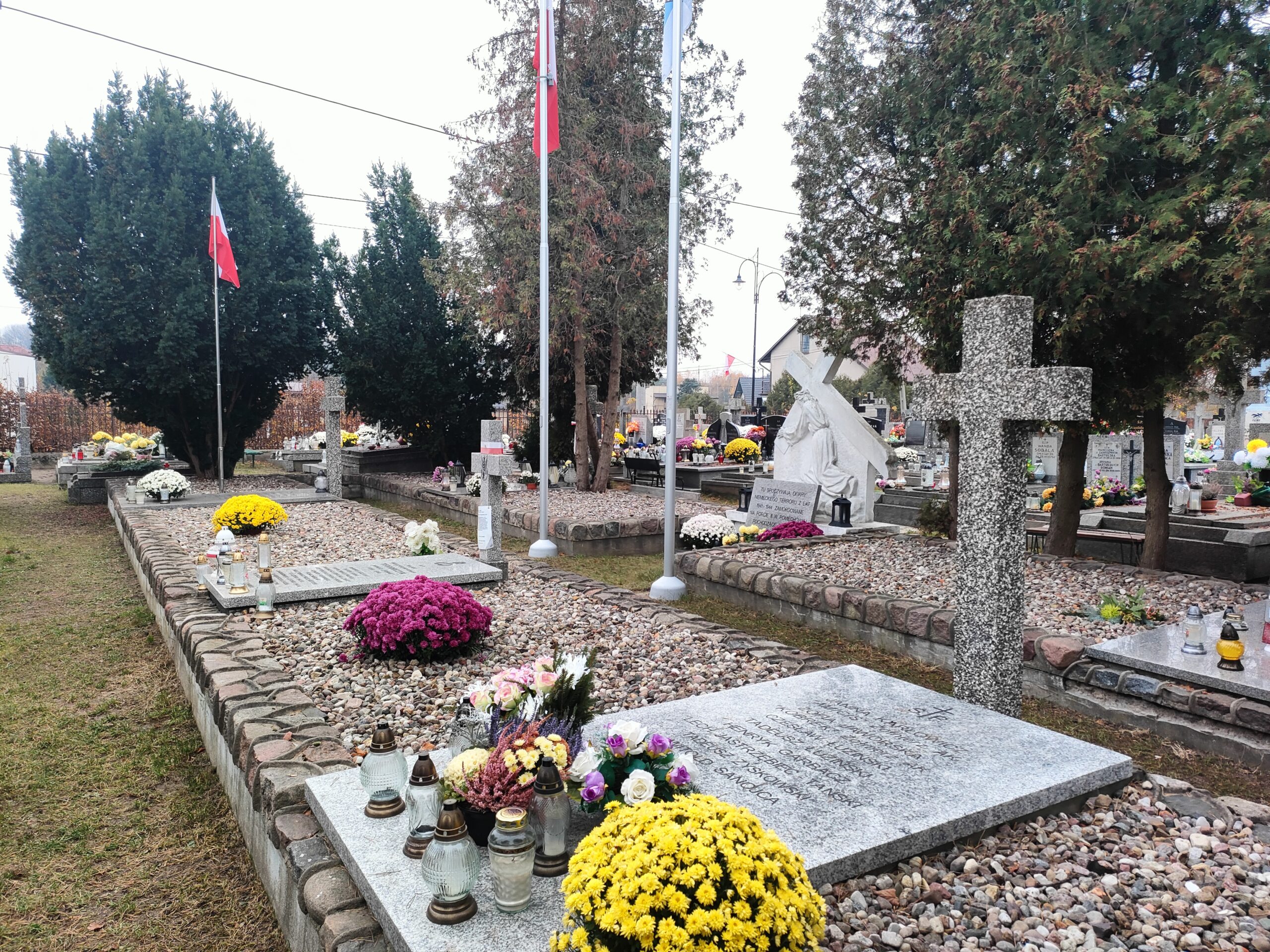 Na cmentarzu znajdują się 3 mogiły zbiorowe. Na lewo od wejścia, od strony ulicy Kościelnej, znajduje się mogiła żołnierzy poległych w obronie Fortu III we wrześniu 1939 roku. Ostatni pochówek do tej mogiły odbył się w maju 2021 roku po ekshumacjach na Forcie III. Pochowano wtedy 8 żołnierzy. W uroczystości uczestniczyli przedstawiciele najwyższych władz państwowych oraz kompania honorowa WP. Wieńce przysłali prezydent, premier, marszałek sejmu, minister obrony narodowej.