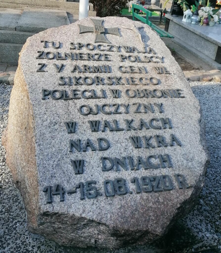 Pośrodku cmentarza znajduje się mogiła zbiorowa żołnierzy poległych w bitwie nad Wkrą w dniach 14-15 sierpnia 1920 roku. Poległych upamiętniają dwa kamienie umieszczone na mogile, widoczne na zdjęciu. Spoczywają tu bezimienni bohaterowie. Bitwa nad Wkra była ważnym wsparciem Bitwy Warszawskiej z 15 sierpnia 1920 roku, podczas której Polacy rozgromili bolszewików. Zaraz po wojnie i w czasach komunizmu temat wojny polsko-bolszewickiej był zakazany. Mogiła była oznaczona jako mogiła żołnierzy poległych w II wojnie światowej, aż do xxxx roku.