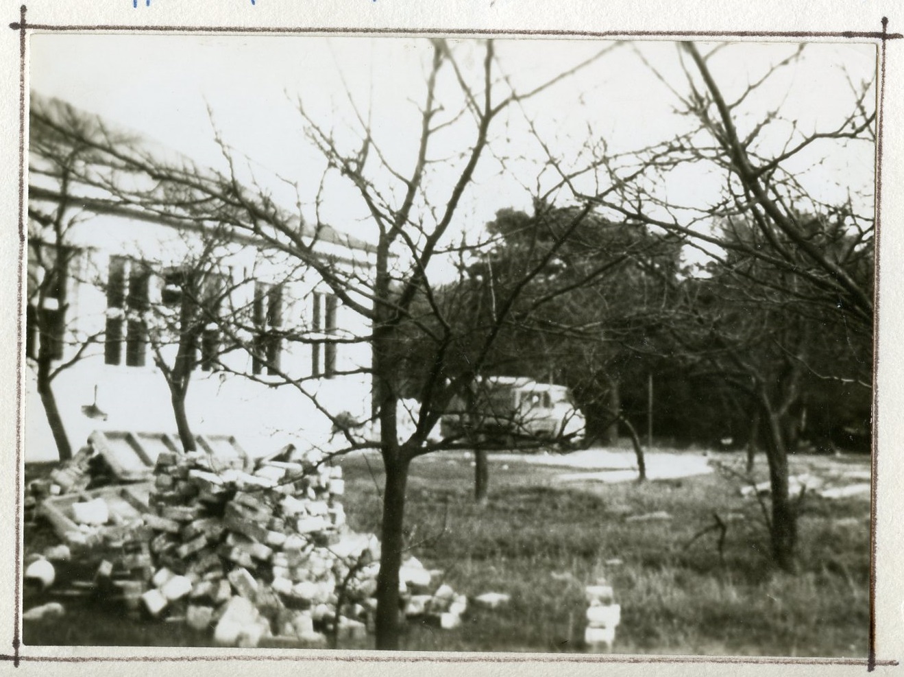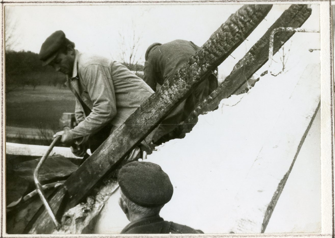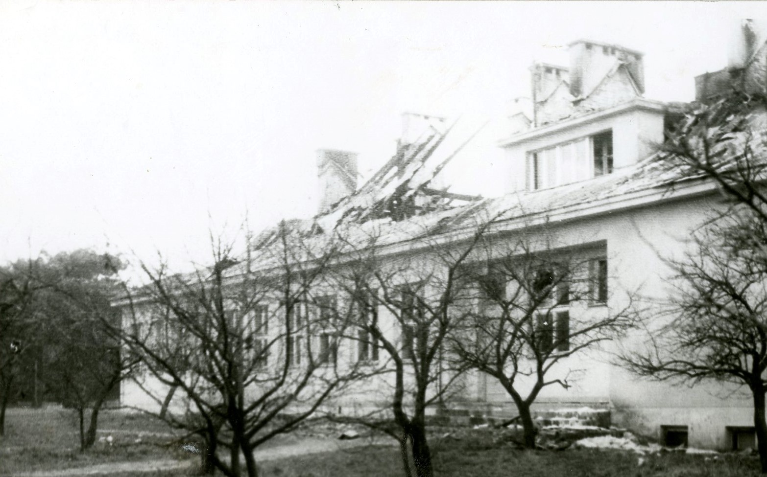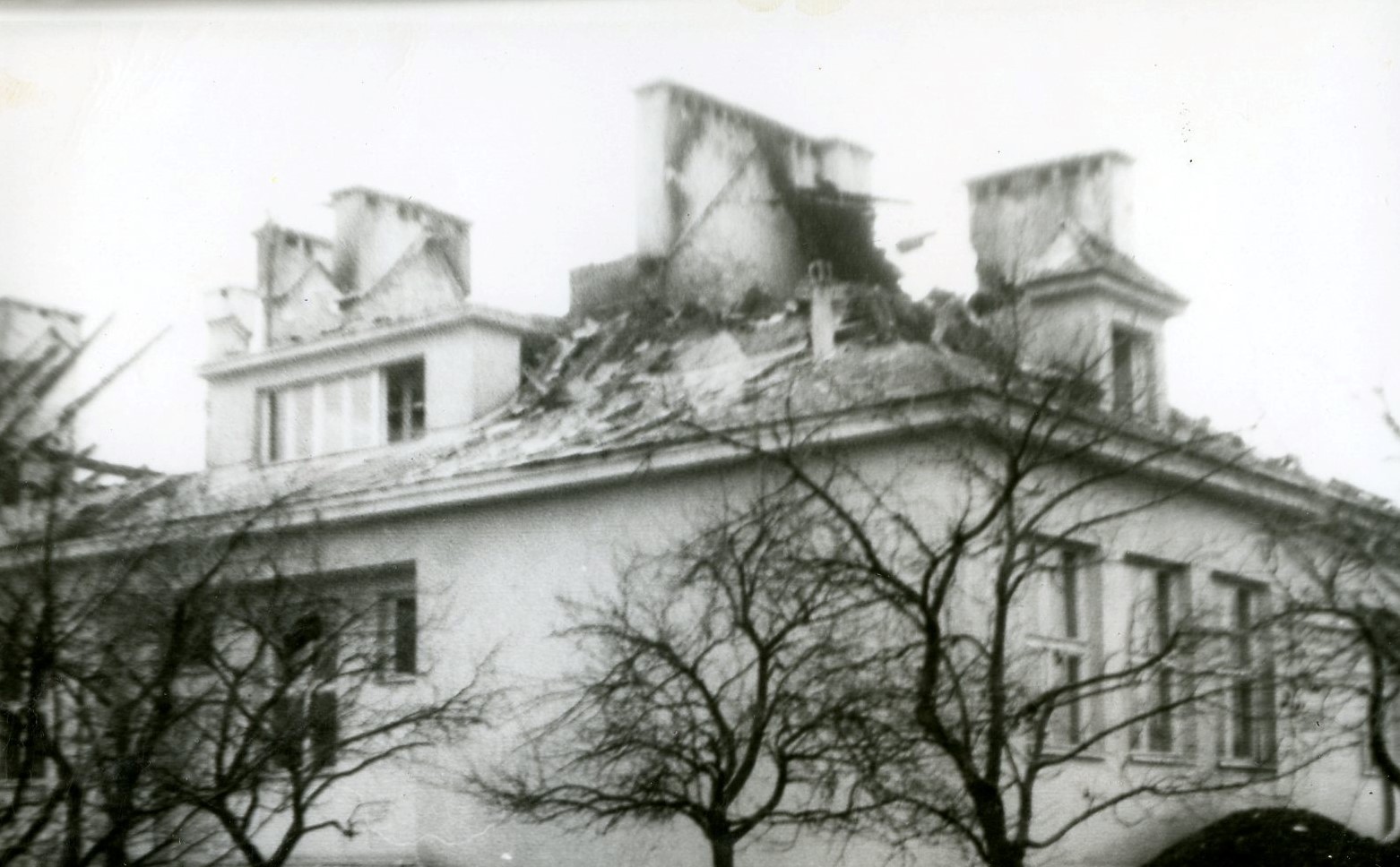 Zniszczenia budynku szkoły spowodowane pożarem, który wybuchł w nocy z 23/24 października 1977 r.