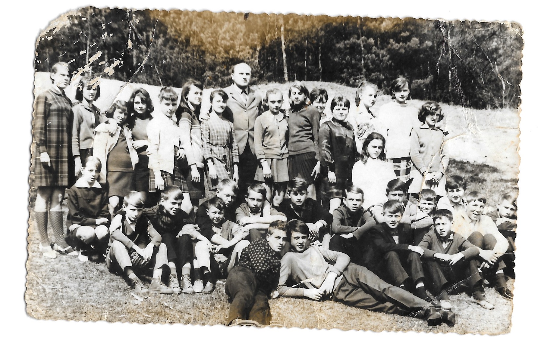 Na zdjęciu rozpoznano 1 rząd: Janina Ferenc, Ewa Markowska, Zosia Lewandowska, Ewa Radzikowska, Marysia Kaliś, 2 rząd: Zbyszek Włodarczyk, Stefan Sołtysik, Andrzej Cisak, Stanisław Lis, Wojciech Czerwiński, Krzysztof Oleksiak, Stanisław Wichowski, 3 rząd: Ania Kurpiewska, Hania Pierewoz, Ela Wróbel, Basia Zalewska, Ela Jaskólska, Wanda Myślińska, Józek Błaszczak, 4 rząd, Tadek Kulik, Antek Kołodziejski, Wiesław Nagiel, Janek Oleksiak, Rysiek Jackiewicz, Janusz Michalak, Grzegorz Grzybowski, Marek Błaszczak. Z albumu Justyny Szukalskiej – Bura