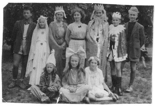 Pamiątka z przedstawienia „Prawdziwa Księżniczka” 01.05.1958 r. W górnym rzędzie w środku p. Ineza Jarosz. Na dole w środku E. Brodowska, obok po prawej Aleksandra Kucharczyk.