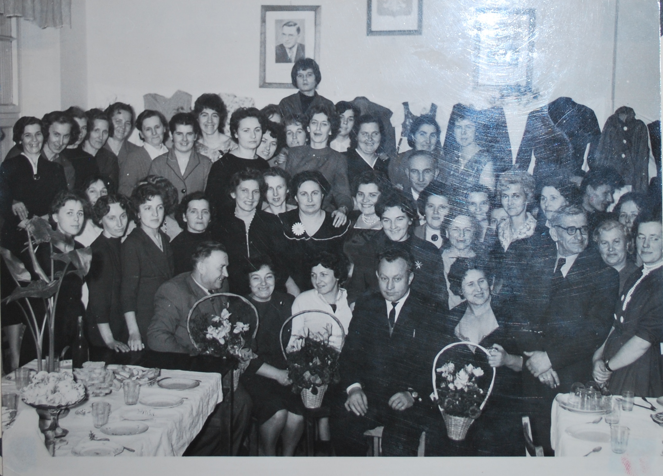 1961 r. Kurs racjonalnego żywienia, odbywał się w SP w Pomiechówku. Osoby na zdjęciu: Michalina Grabowska – gospodyni obiektu, kierowniczka szkoły, Stanisław Wojciechowski – prezes GS, Feliks Kruszewski – przewodniczący rady nadzorczej GS, Wiesława Lach instruktor, komitet d/s gospodarczych z Warszawy, Genowefa Trzeciak – wykładowczyni ( żona dowódcy Fortu XV), Cyryla Regulska, Stanisława Motylińska – Kruszewska, p. Sitkiewicz, Janina Kujawska, Emilia Kurpiewska (wieloletni pracownik sklepu mięsnego koło św. Anny), Helena Michałowska, Zofia Łazarska, Eugenia Tomaszewska, p. Domżała, p. Radwańska, p. Ferenc ( z Księżej Góry), Lucyna Kownacka, Stanisława Wójcik, p. Damińska, p. Tłoczkowska, Janina Falak, p. Grzegorczyk ( mieszkanka Zamościa)