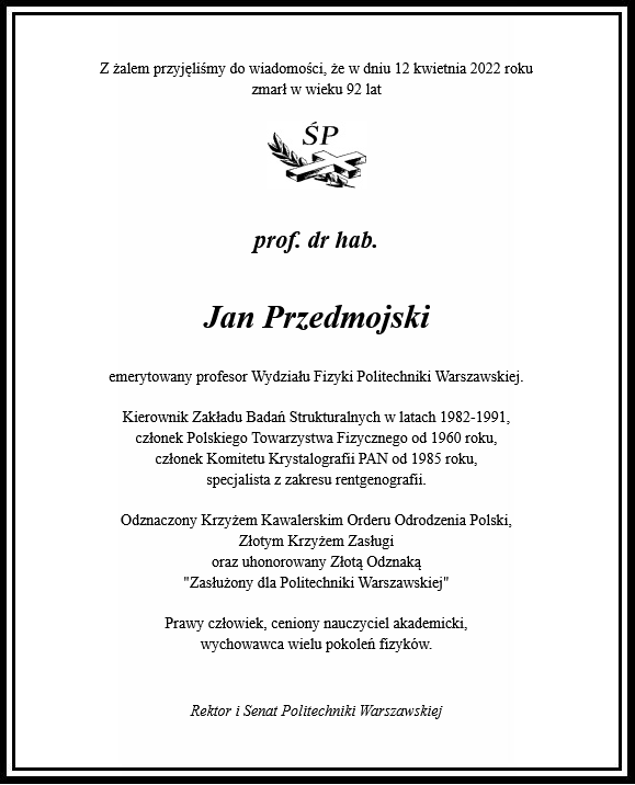 https://www.fizyka.pw.edu.pl/Aktualnosci/Zmarl-prof.-dr-hab.-Jan-Przedmojski