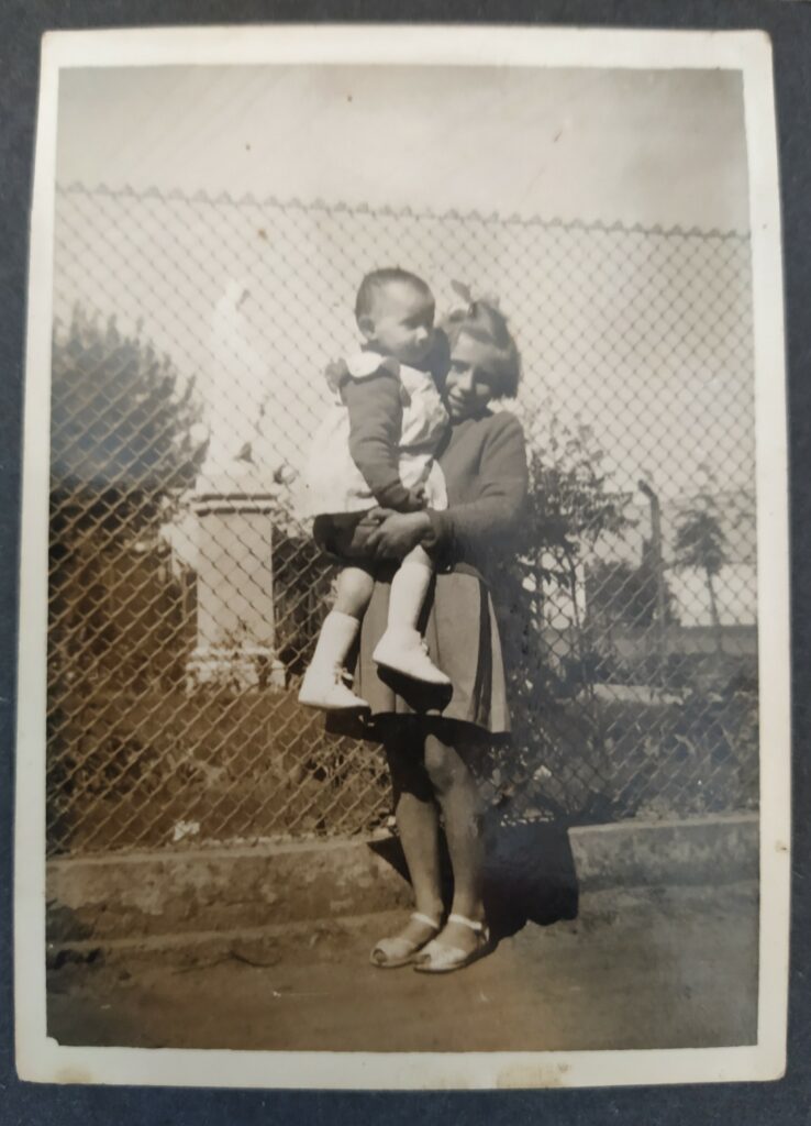 Kapliczka pana Kuleszy, ul. Serocka Zdj. z około 1962 r. Na pierwszym planie moja Mama z kuzynką na rękach (K. Koper)