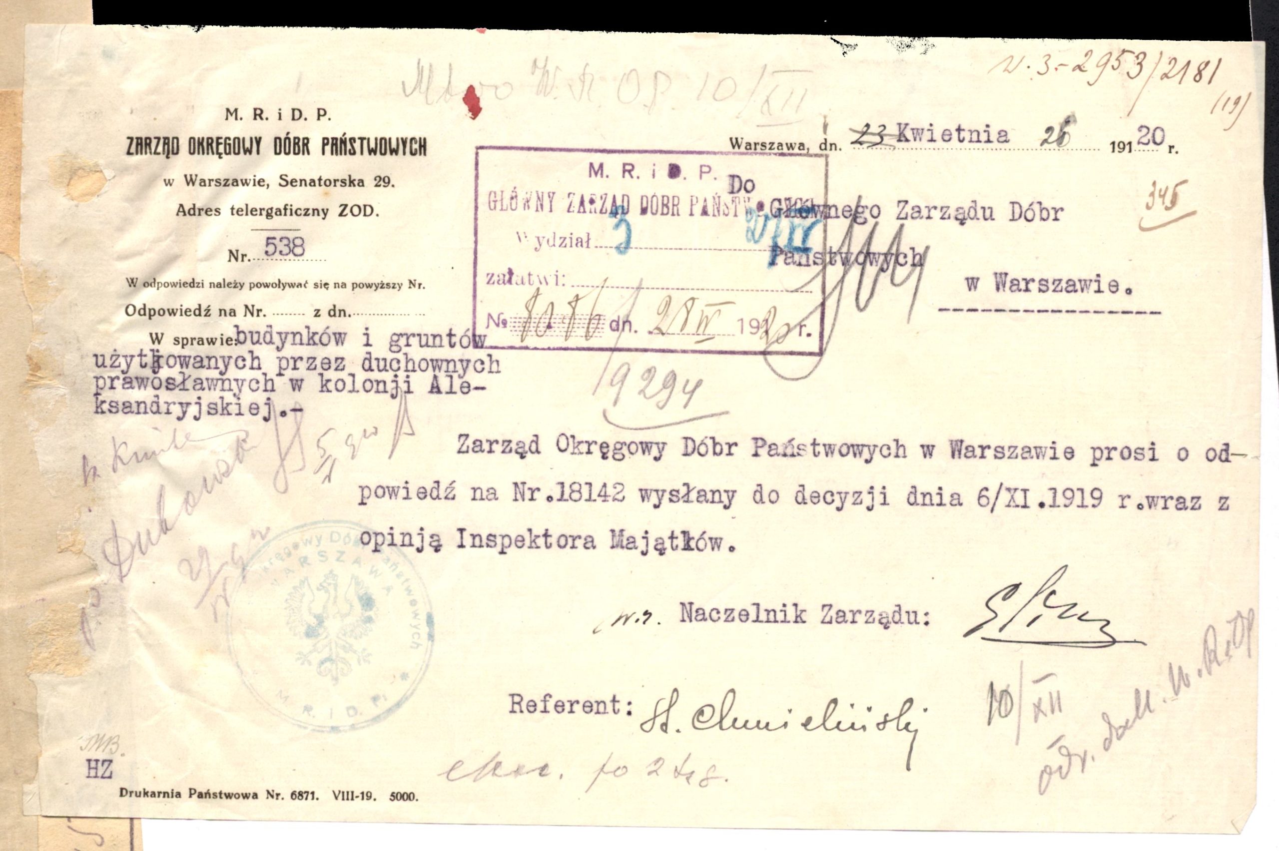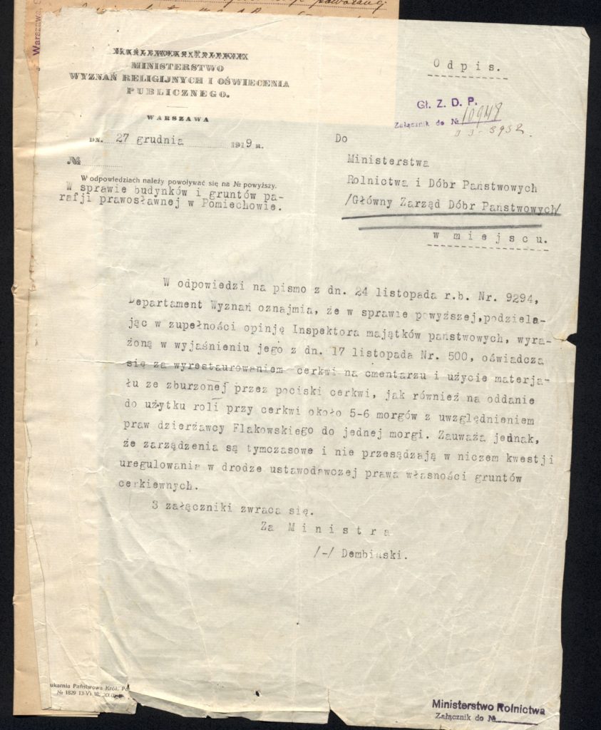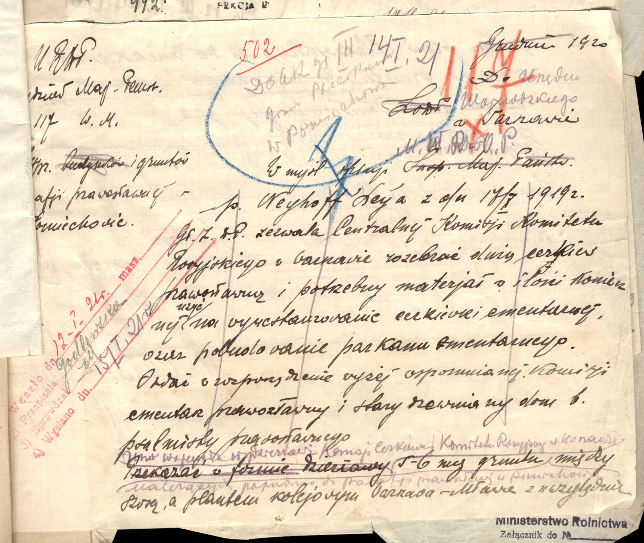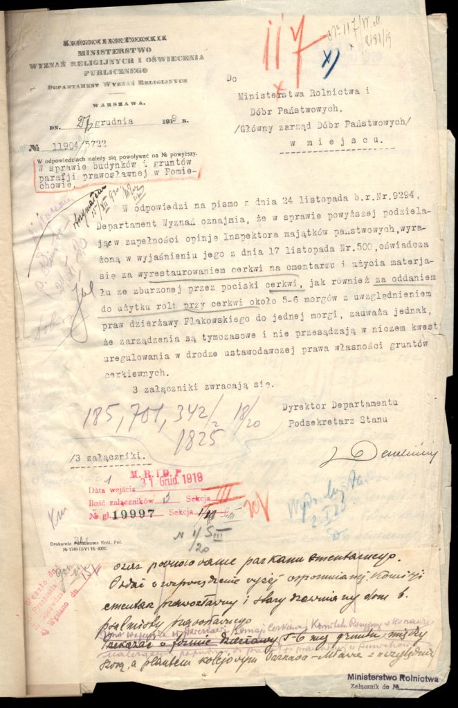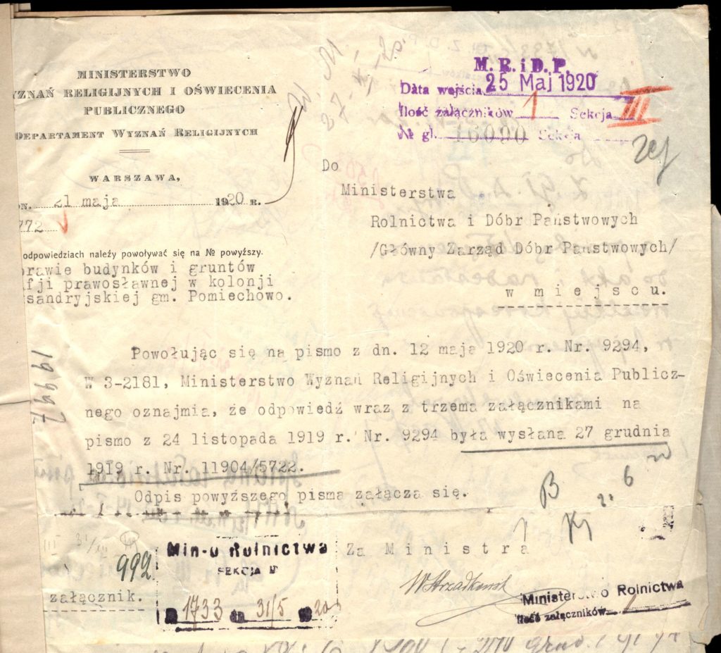Korespondencja w sprawie odrestaurowania cerkwi 1919-21 1919 1920 1921 Źródło: Ministerstwo Rolnictwa i Reform Rolnych