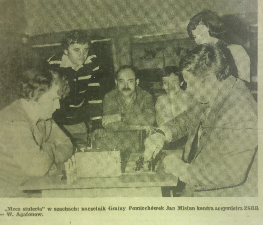 W nowej siedzibie GOPiK rozpoczął prężną działalność. Ważne, godne odnotowania wydarzenie odbyło się jeszcze w tym samym miesiącu. 29 kwietnia odbył się mecz szachowy Naszelnika gminy Pomiechówek pana Jana Misiuna z radzieckim mistrzem Afaganowem, który zwyciężył 9:1. Na zdjęciu obok skupieni zawodnicy przy planszy. Po prawej nad mistrzem ówczesna dyrektor domu kultury pani Danuta Jaruga. Tego samego roku odnotowano także następujących gości: