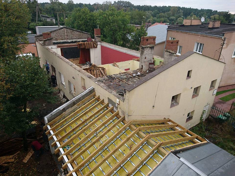 W 2016 roku rozpoczęto burzenie Gminnego Ośrodka Kultury, który istniał w tej postaci wiele lat. Poniższe zdjęcia oddają moment początku demontażu dachu, opróżniania sal. Są to ostatnie momenty starego budynku.