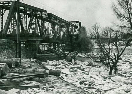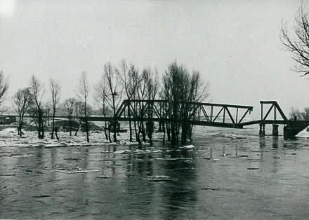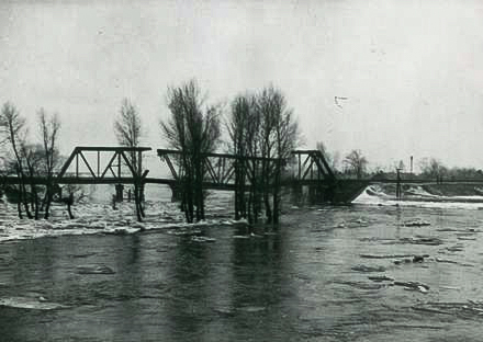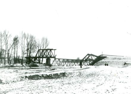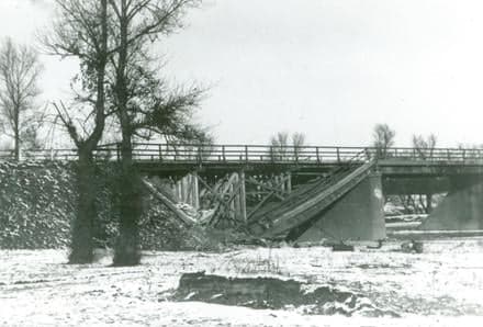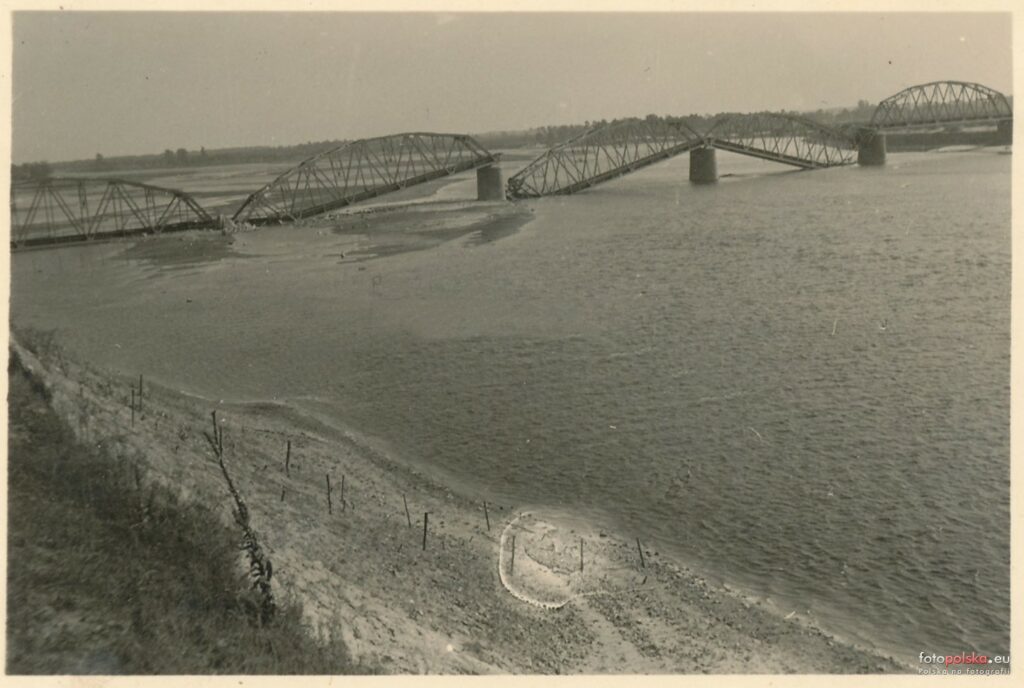 Most kolejowy na rzece Wkra w Pomiechówku. Zniszczony w 1939 r.