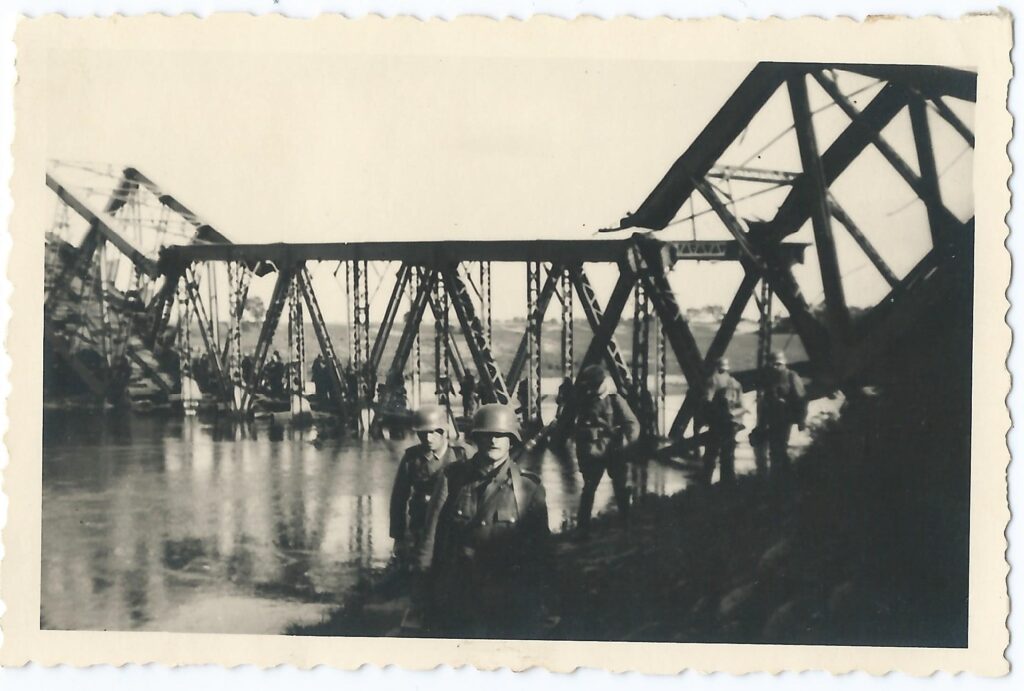 Wrzesień 1939 r. Zniszczony most kolejowy w Pomiechówku i żołnierze Niemieccy. Z albumu A.Ł.