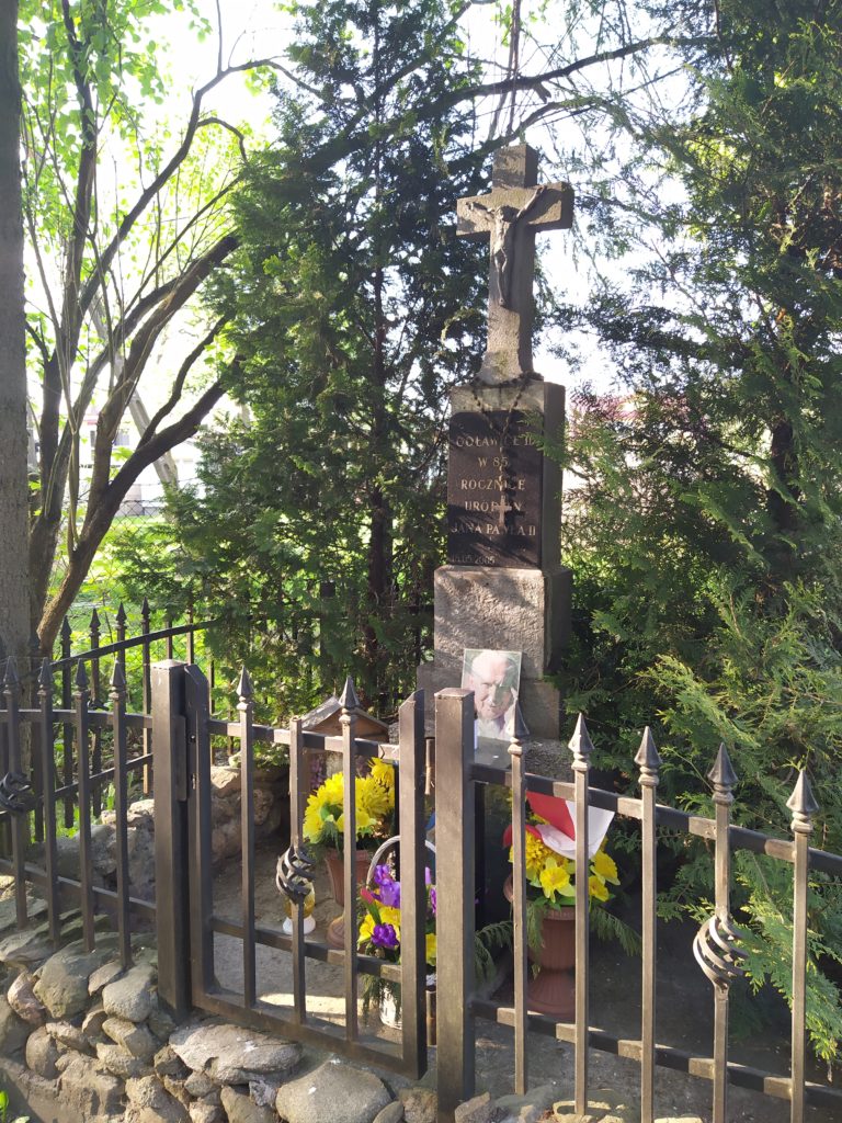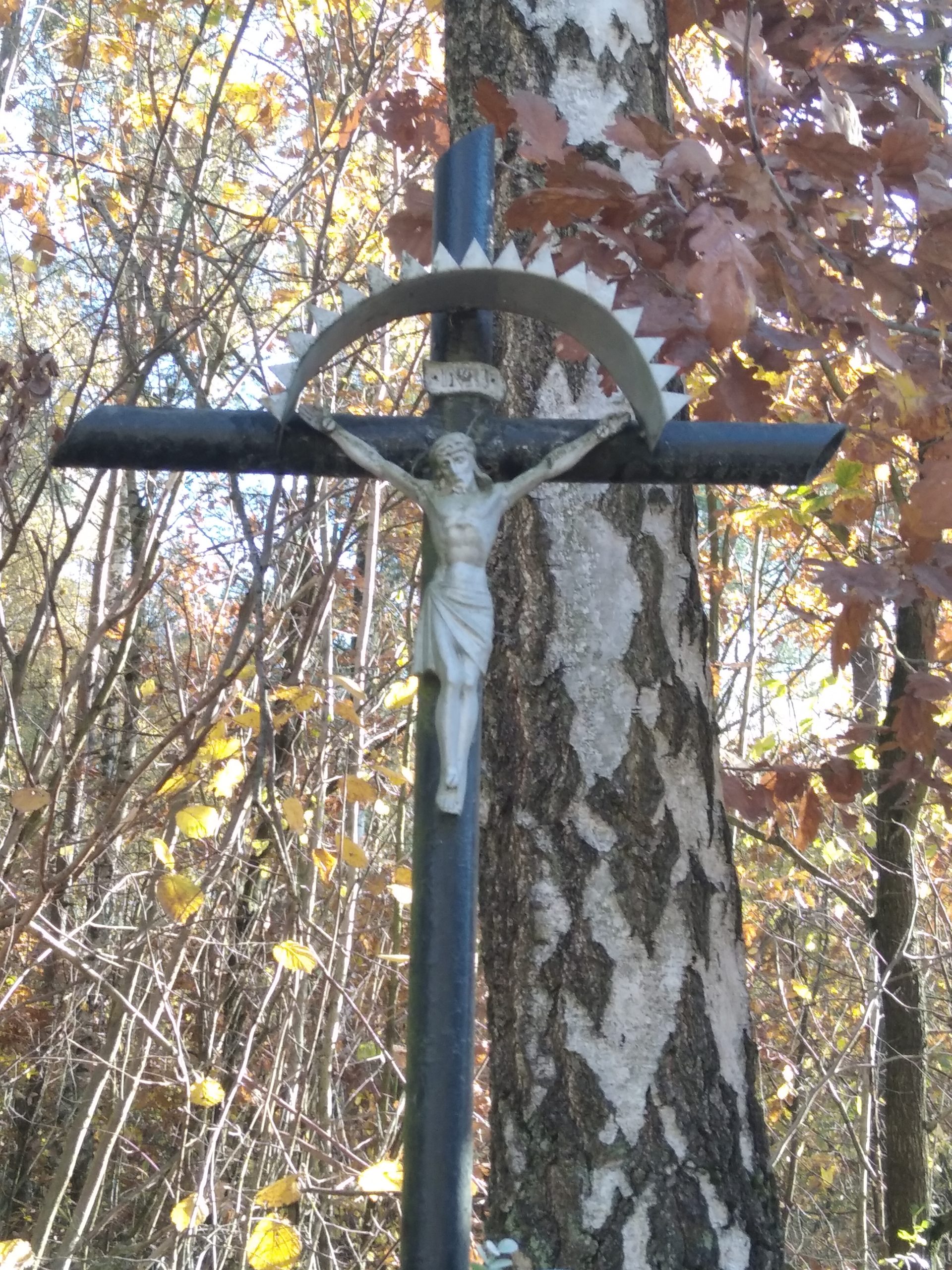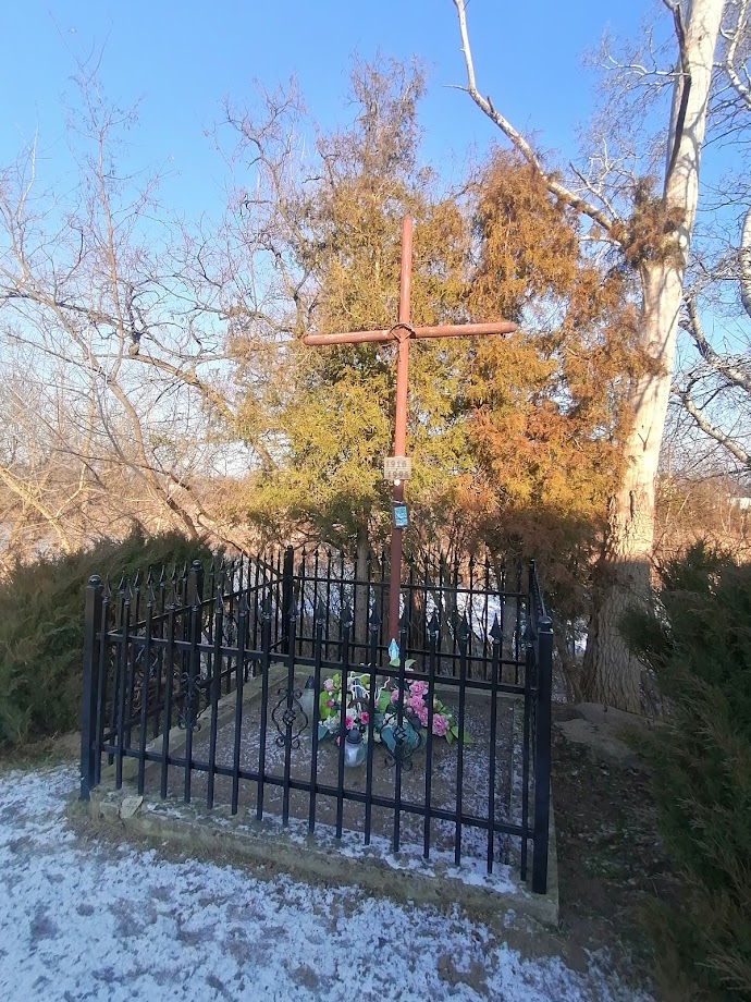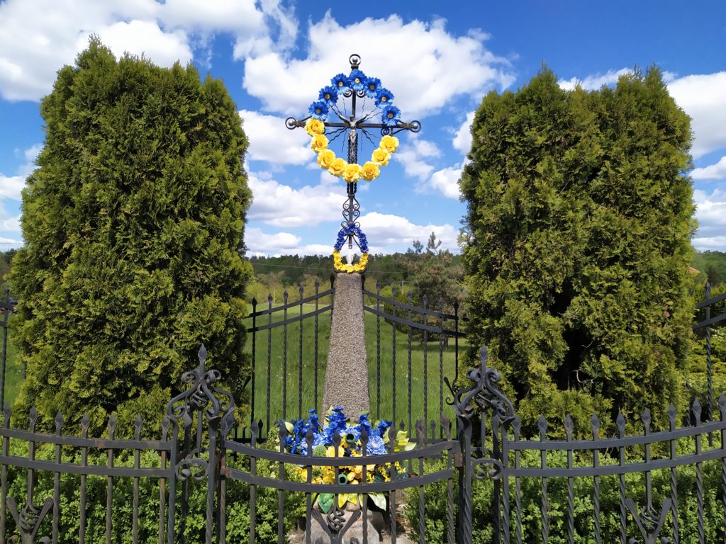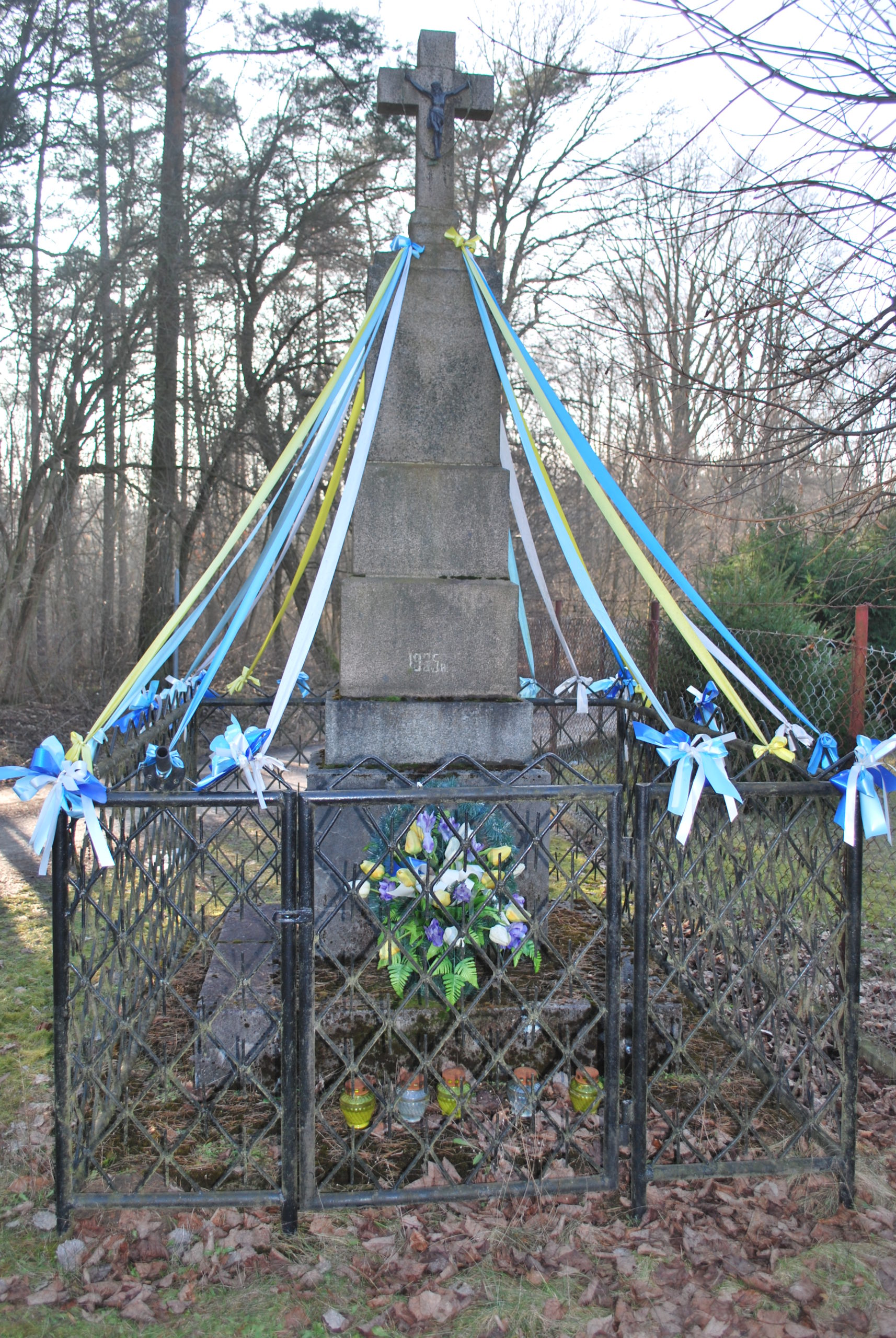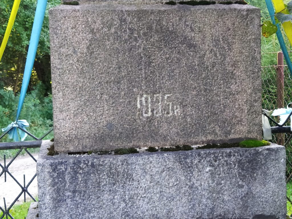 Joanna Kurpiewska: „Ten kamienny postument z metalowym krzyżem został przywieziony z cmentarza z grobu mojej prababci ok. 30 lat temu. Mój tata, Leonard Oleksiak, ustawił go na miejscu drewnianego krzyża (na poświęconej zapewne kiedyś ziemi) za zgodą ówczesnego właściciela najbliższej posesji. Na postumencie widać ślad po odkręconej tablicy nagrobnej, która przechowywana jest w naszej rodzinie do dziś. Widnieje na niej data śmierci prababci – 1907 r. Prawdopodobnie krzyż został wykonany właśnie w tym czasie.”