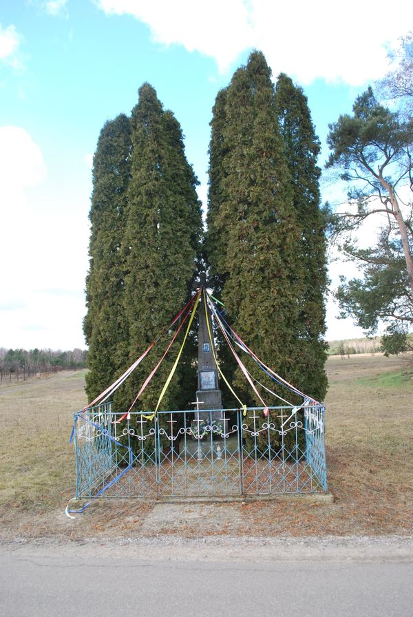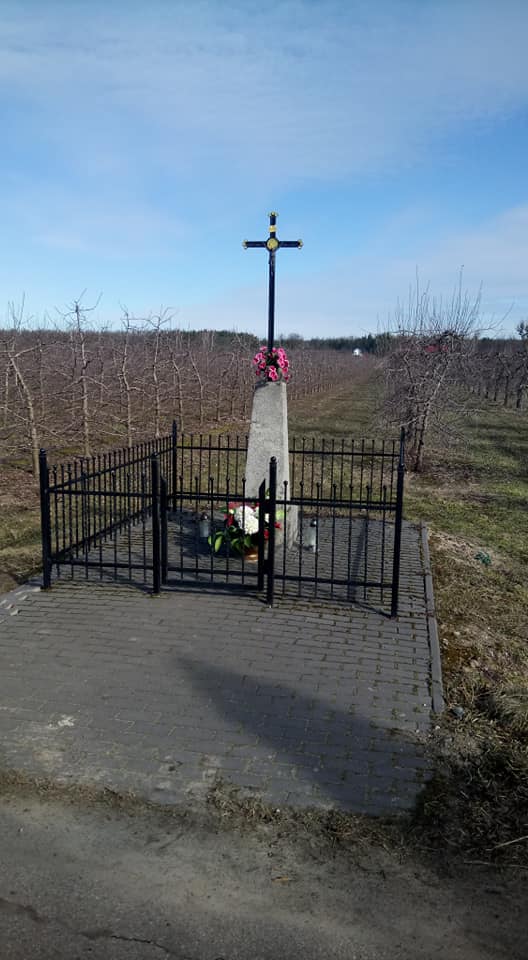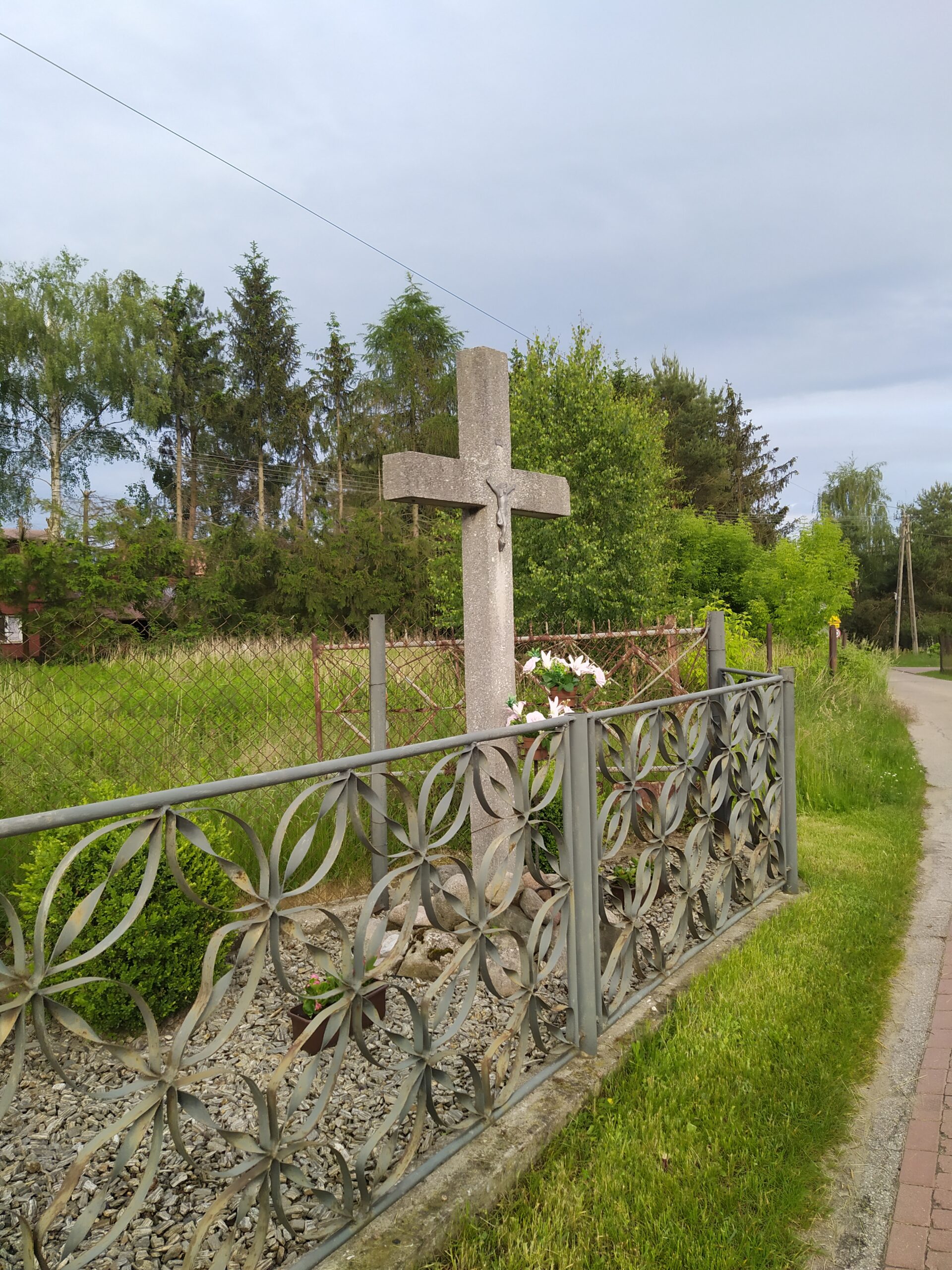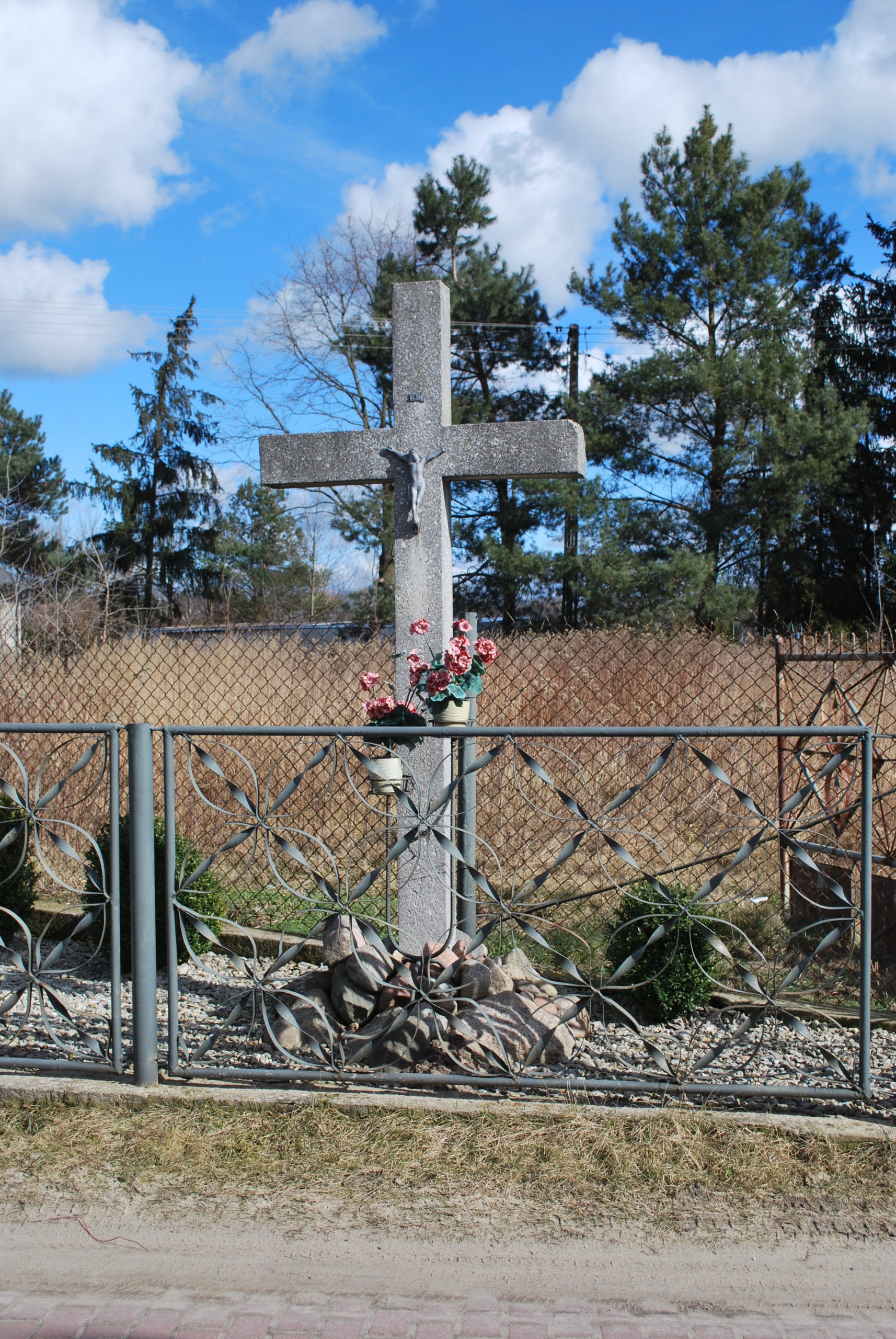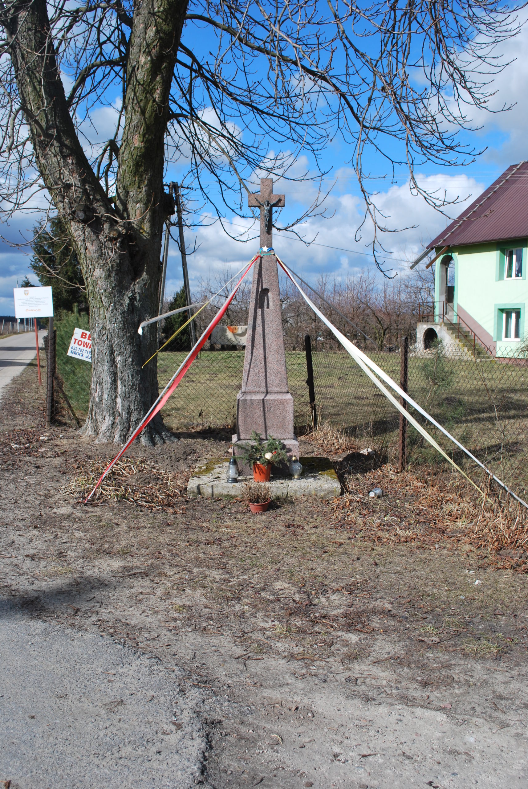 Krzyż został ustawiony w nocy po kryjomu w obecnym miejscu, na działce śp. Stefanii Kapczyńskiej. Pod koniec lat 90. spróchniały już krzyż został wymieniony na nowy metalowy, wraz z ogrodzeniem. Fundatorami metalowego krzyża była śp. Stefania Kapczyńska wraz z córkami oraz rodzina Kopyrskich, wykonawcą był pan Mirosław Fabisiak. Obecnie krzyżem opiekują się córki Stefani Kapczyńskiej i rodzina Kopyrskich.”