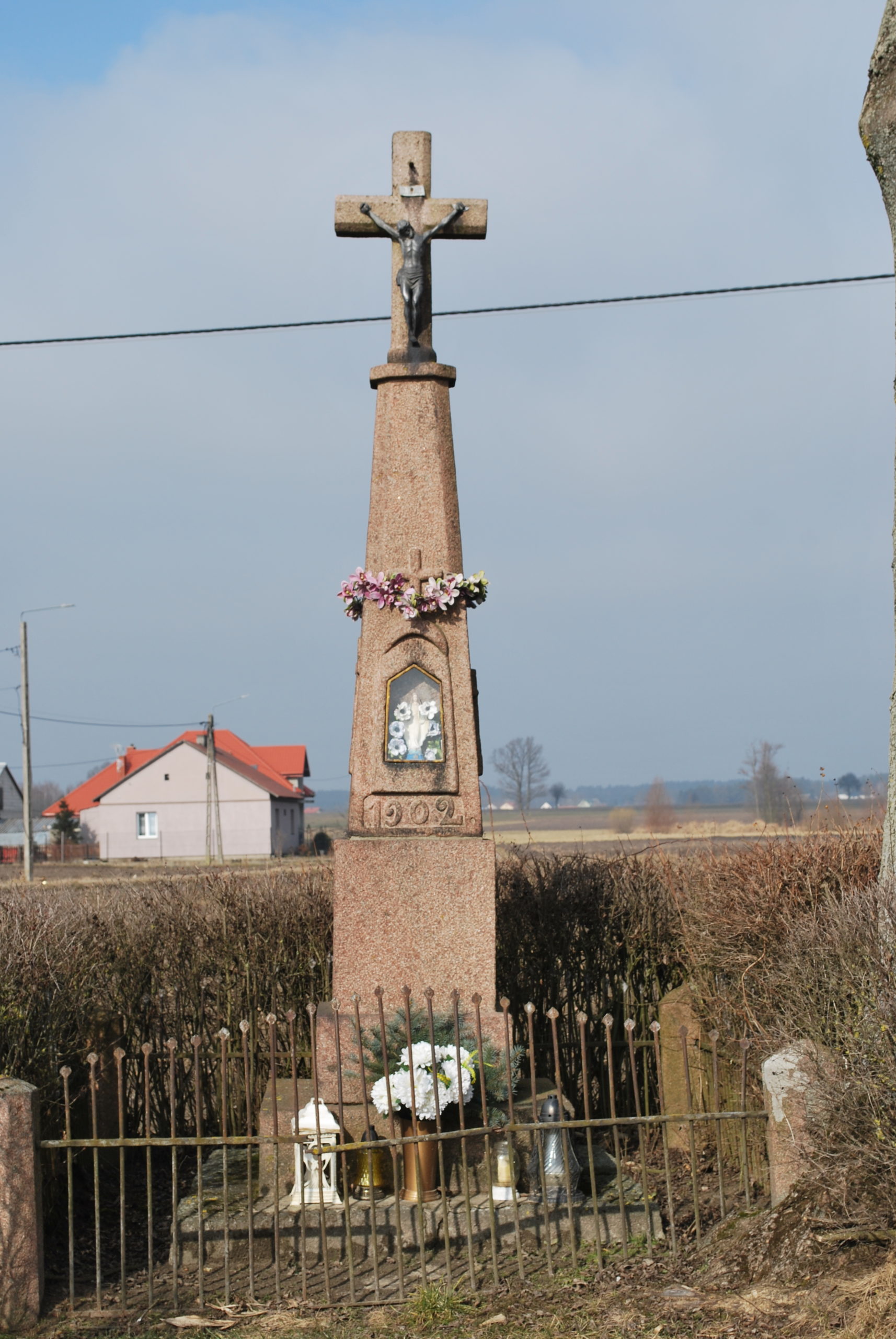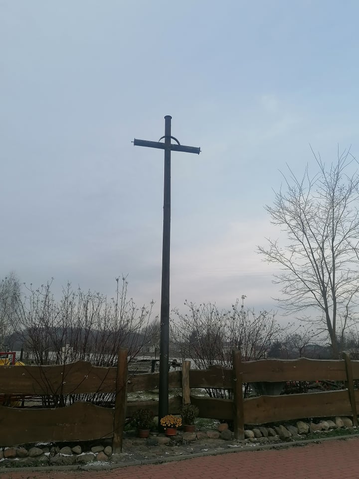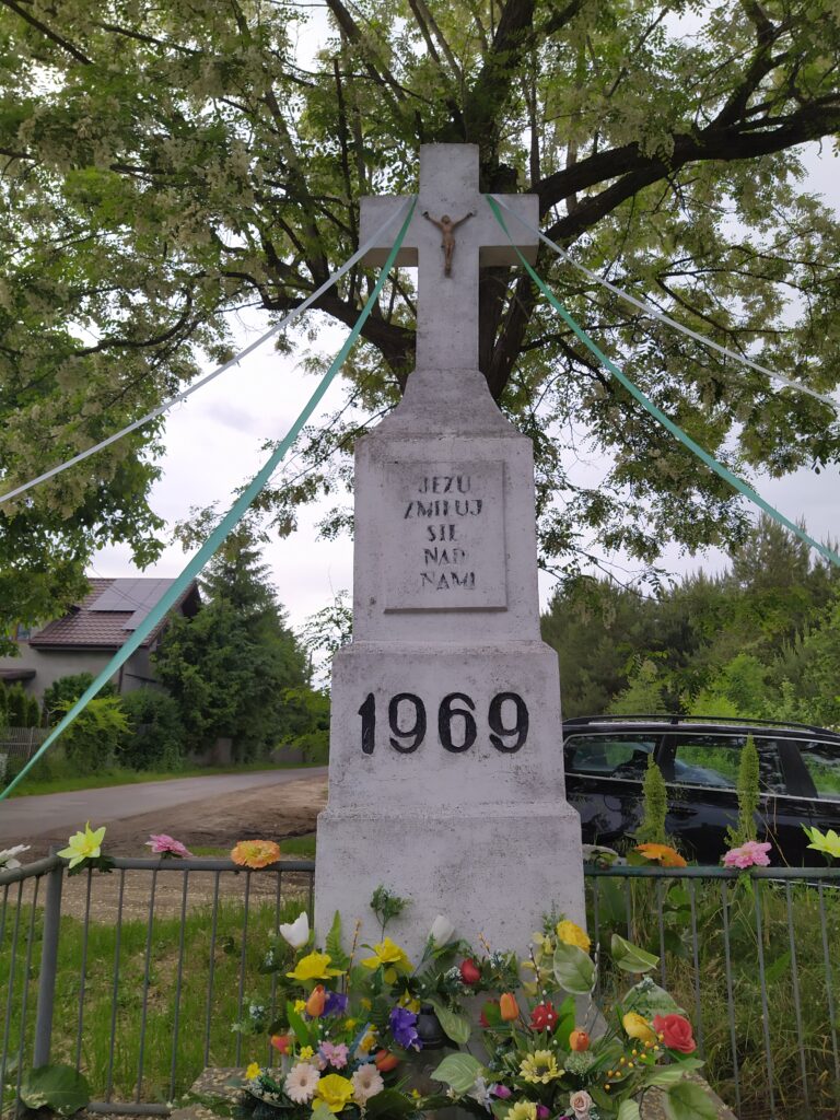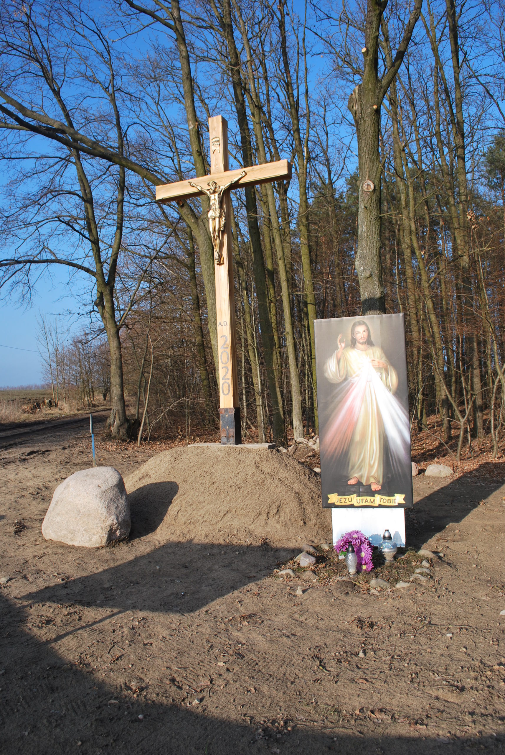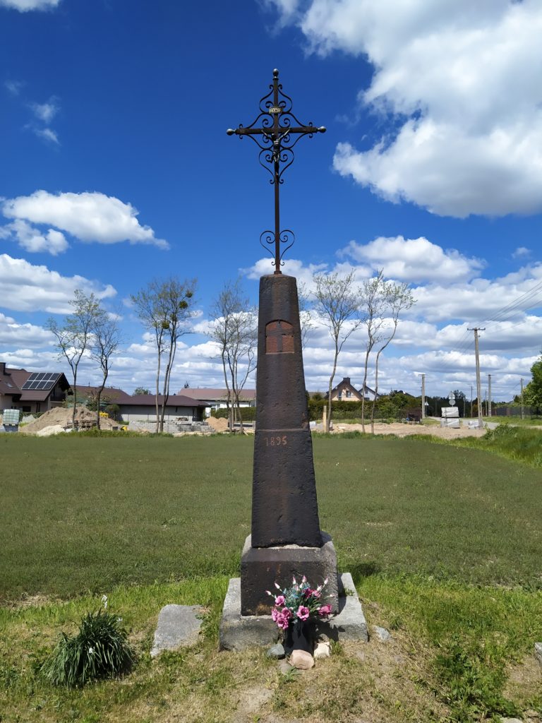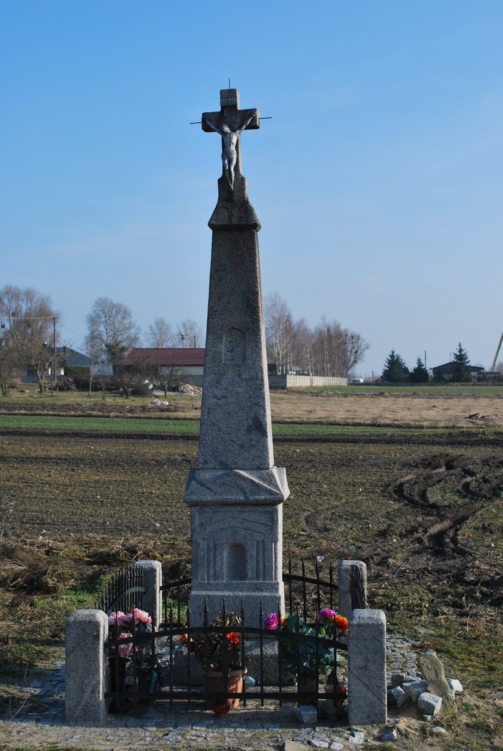 Krzyż został ustawiony w nocy po kryjomu w obecnym miejscu, na działce śp. Stefanii Kapczyńskiej. Pod koniec lat 90. spróchniały już krzyż został wymieniony na nowy metalowy, wraz z ogrodzeniem. Fundatorami metalowego krzyża była śp. Stefania Kapczyńska wraz z córkami oraz rodzina Kopyrskich, wykonawcą był pan Mirosław Fabisiak. Obecnie krzyżem opiekują się córki Stefani Kapczyńskiej i rodzina Kopyrskich.”