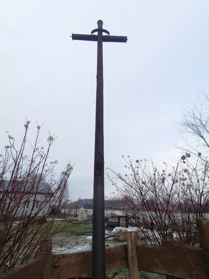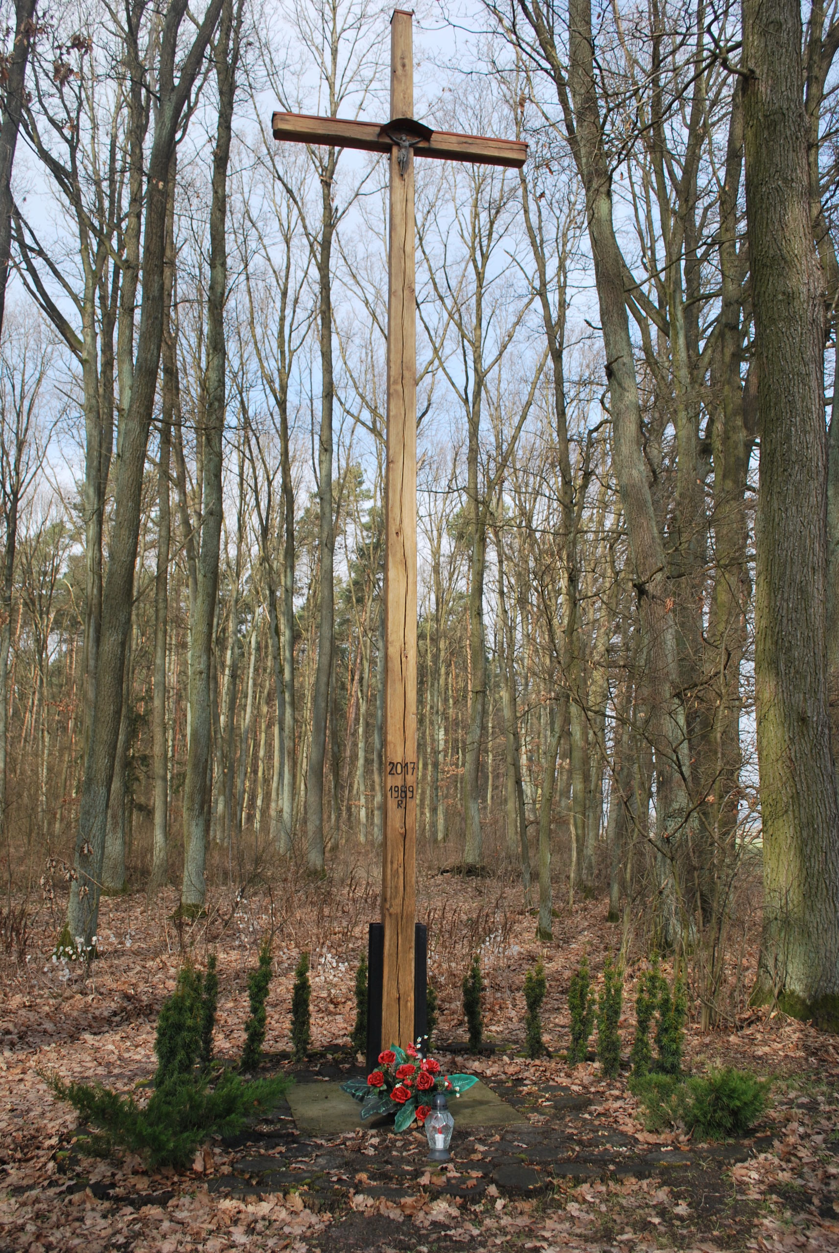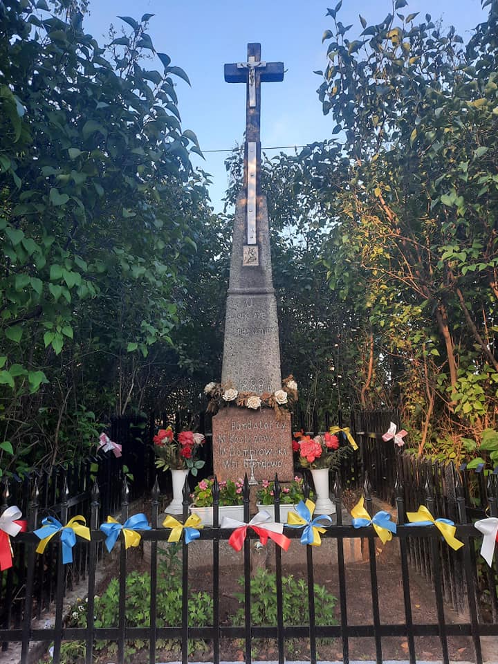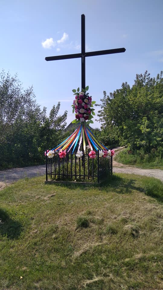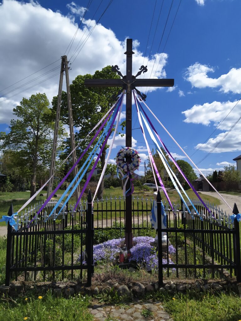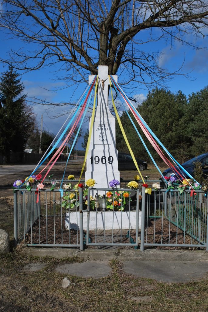 Krzyż został ustawiony w nocy po kryjomu w obecnym miejscu, na działce śp. Stefanii Kapczyńskiej. Pod koniec lat 90. spróchniały już krzyż został wymieniony na nowy metalowy, wraz z ogrodzeniem. Fundatorami metalowego krzyża była śp. Stefania Kapczyńska wraz z córkami oraz rodzina Kopyrskich, wykonawcą był pan Mirosław Fabisiak. Obecnie krzyżem opiekują się córki Stefani Kapczyńskiej i rodzina Kopyrskich.”