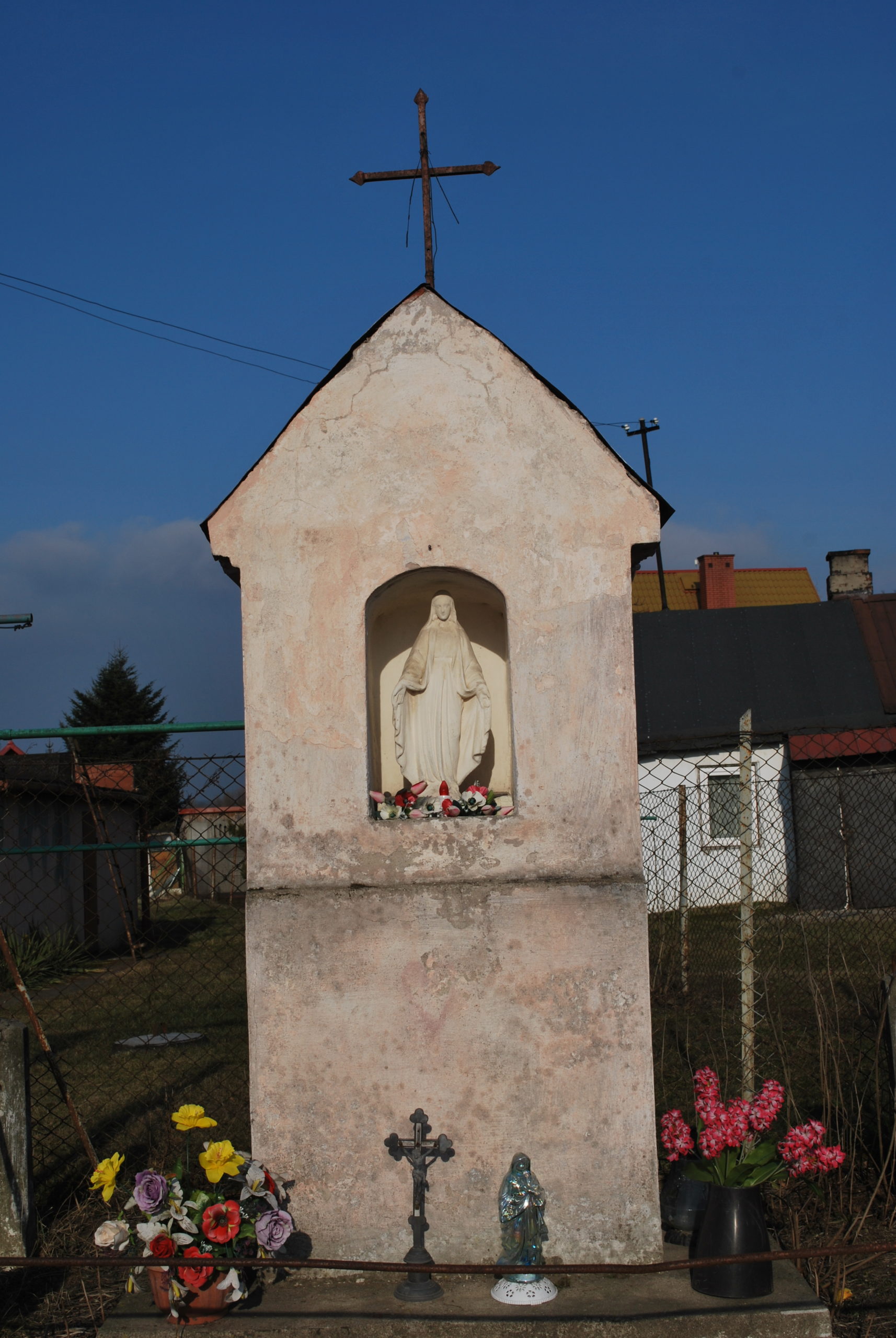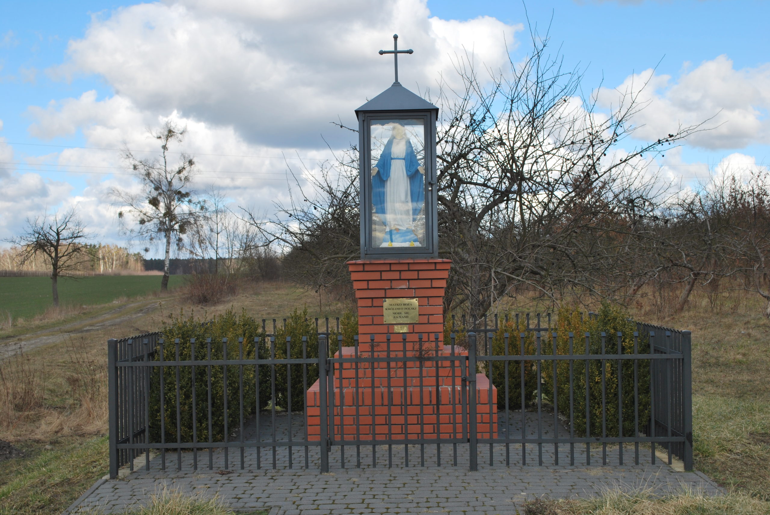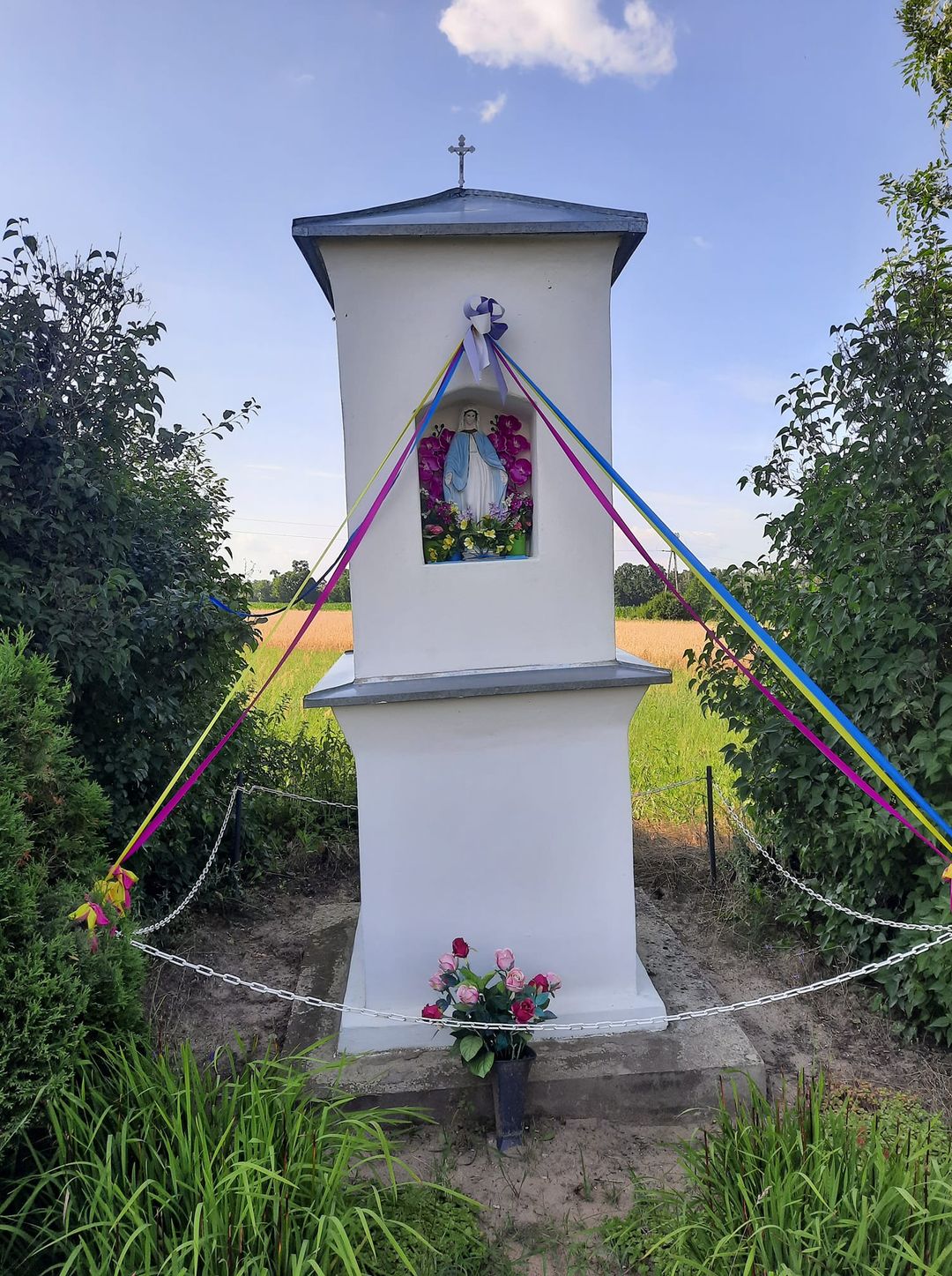 Pierwotnie usytuowana była przy stawku. W latach osiemdziesiątych Jan Ciuliński postawił ją w aktualnej lokalizacji. Na przełomie lat 2011/2012 mieszkańcy podjęli decyzję o remoncie kapliczki. Wymieniliśmy figurę Maryi, postawiliśmy większy cokół, wykonaliśmy zadaszenie, położyliśmy kostkę I wykonaliśmy ogrodzenie. Wszystko metodą składkową i gospodarską. Zamurowaliśmy list fundatorski z nazwiskami mieszkańców oraz pomocników, zawierający podziękowania dla p. Kostrzewskiego, który umożliwił nam remont kapliczki znajdującej się obecnie na jego działce. Kapliczka została poświęcona podczas uroczystości święcenia pól w 2012 r.