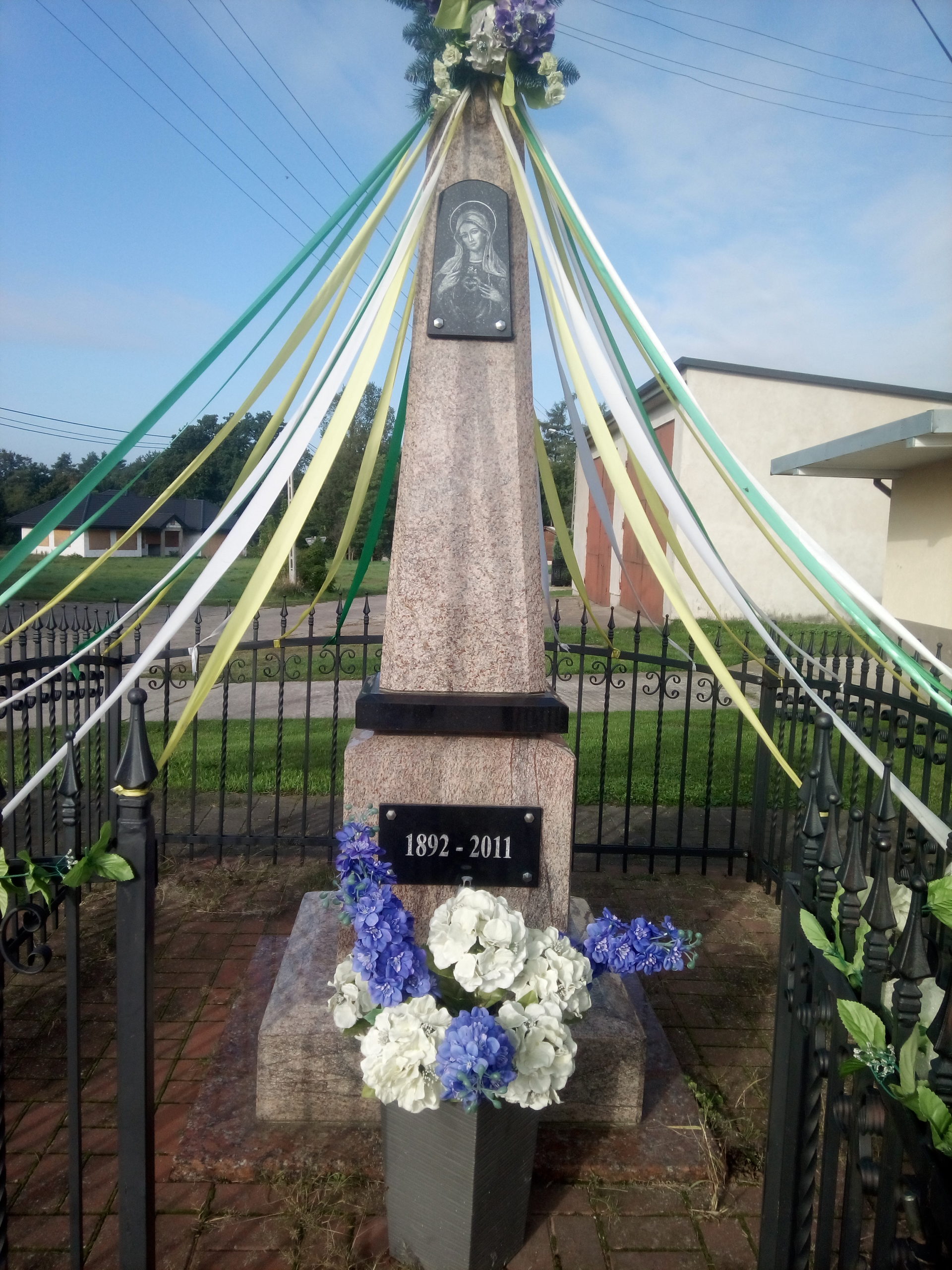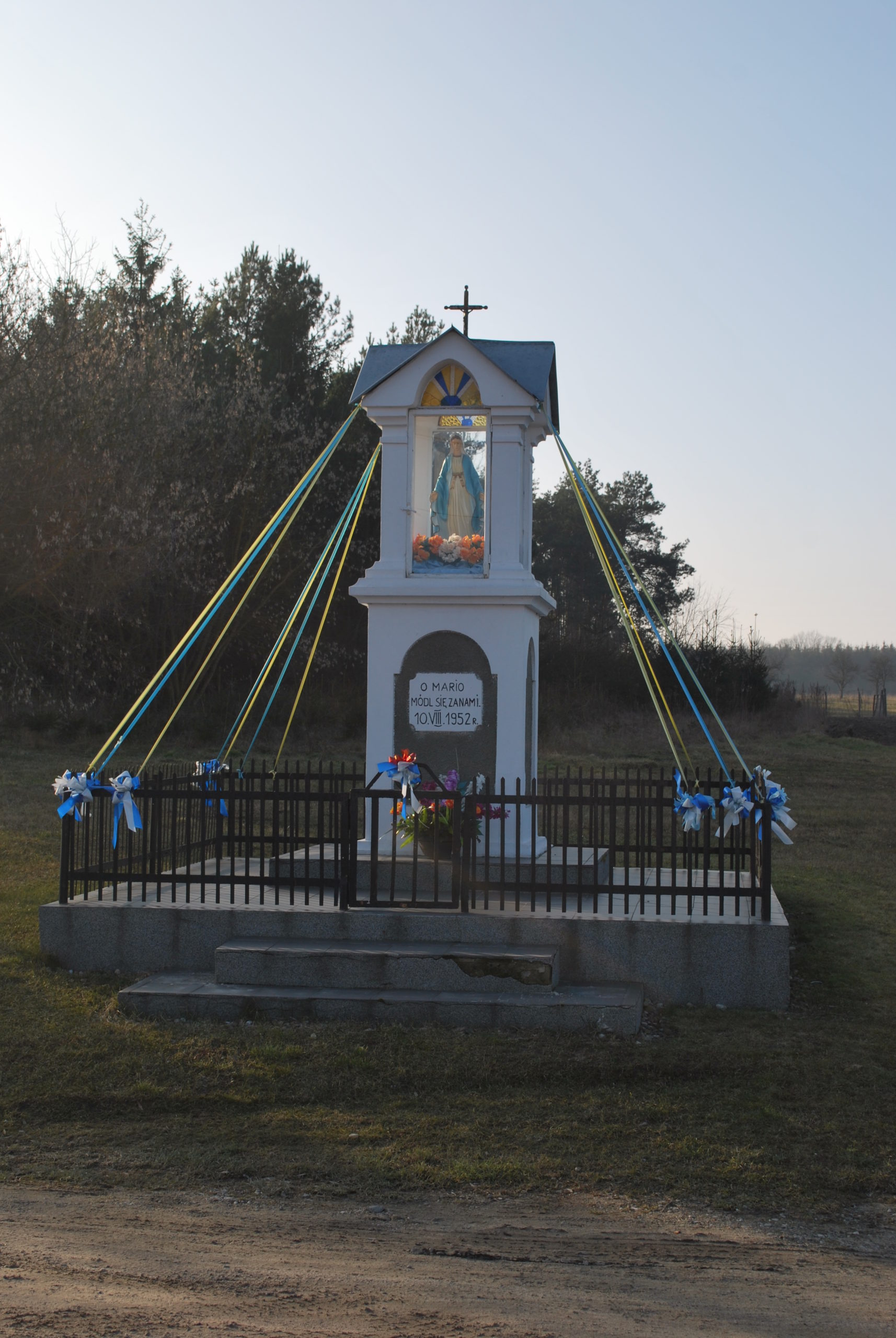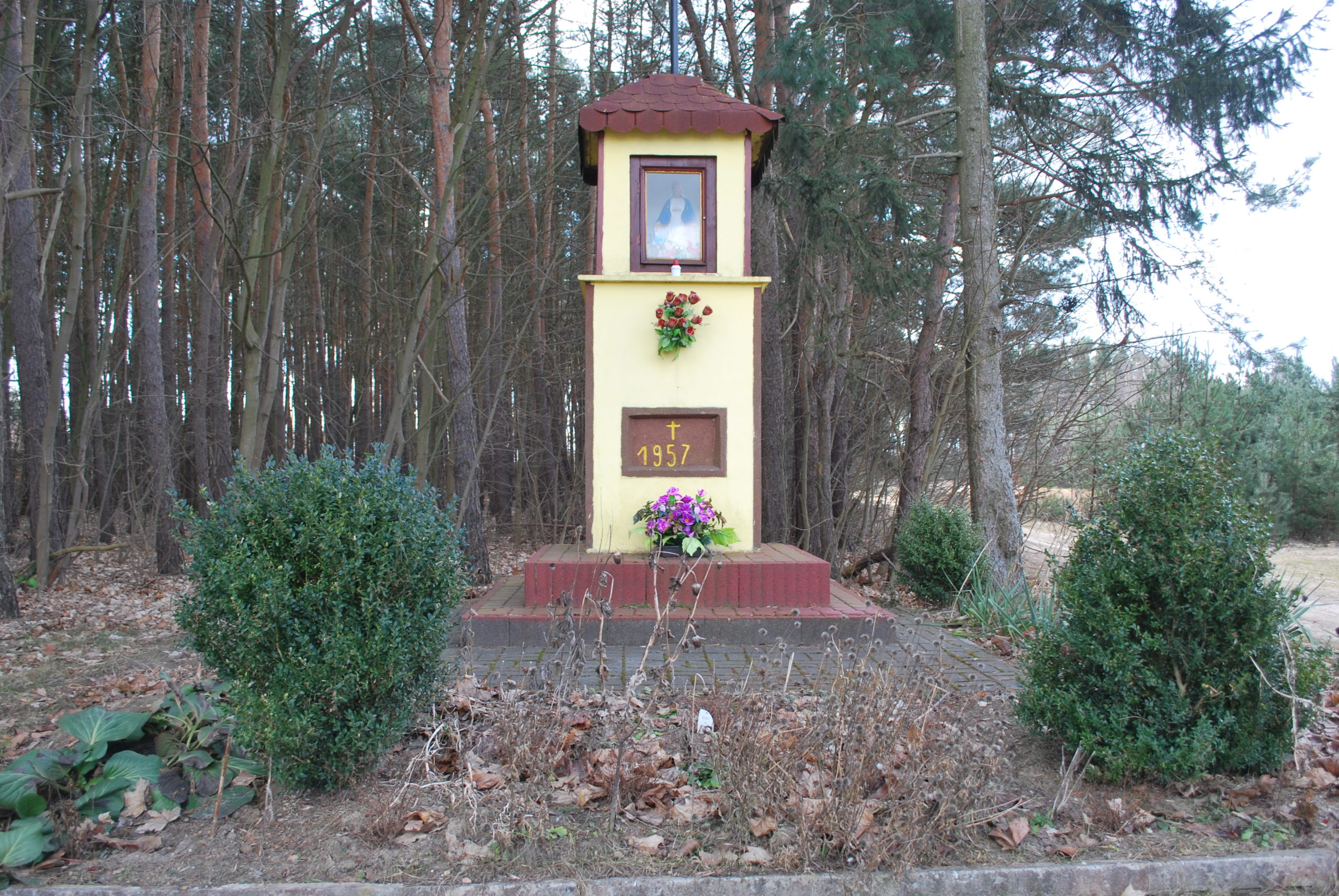 Pierwotnie usytuowana była przy stawku. W latach osiemdziesiątych Jan Ciuliński postawił ją w aktualnej lokalizacji. Na przełomie lat 2011/2012 mieszkańcy podjęli decyzję o remoncie kapliczki. Wymieniliśmy figurę Maryi, postawiliśmy większy cokół, wykonaliśmy zadaszenie, położyliśmy kostkę I wykonaliśmy ogrodzenie. Wszystko metodą składkową i gospodarską. Zamurowaliśmy list fundatorski z nazwiskami mieszkańców oraz pomocników, zawierający podziękowania dla p. Kostrzewskiego, który umożliwił nam remont kapliczki znajdującej się obecnie na jego działce. Kapliczka została poświęcona podczas uroczystości święcenia pól w 2012 r.