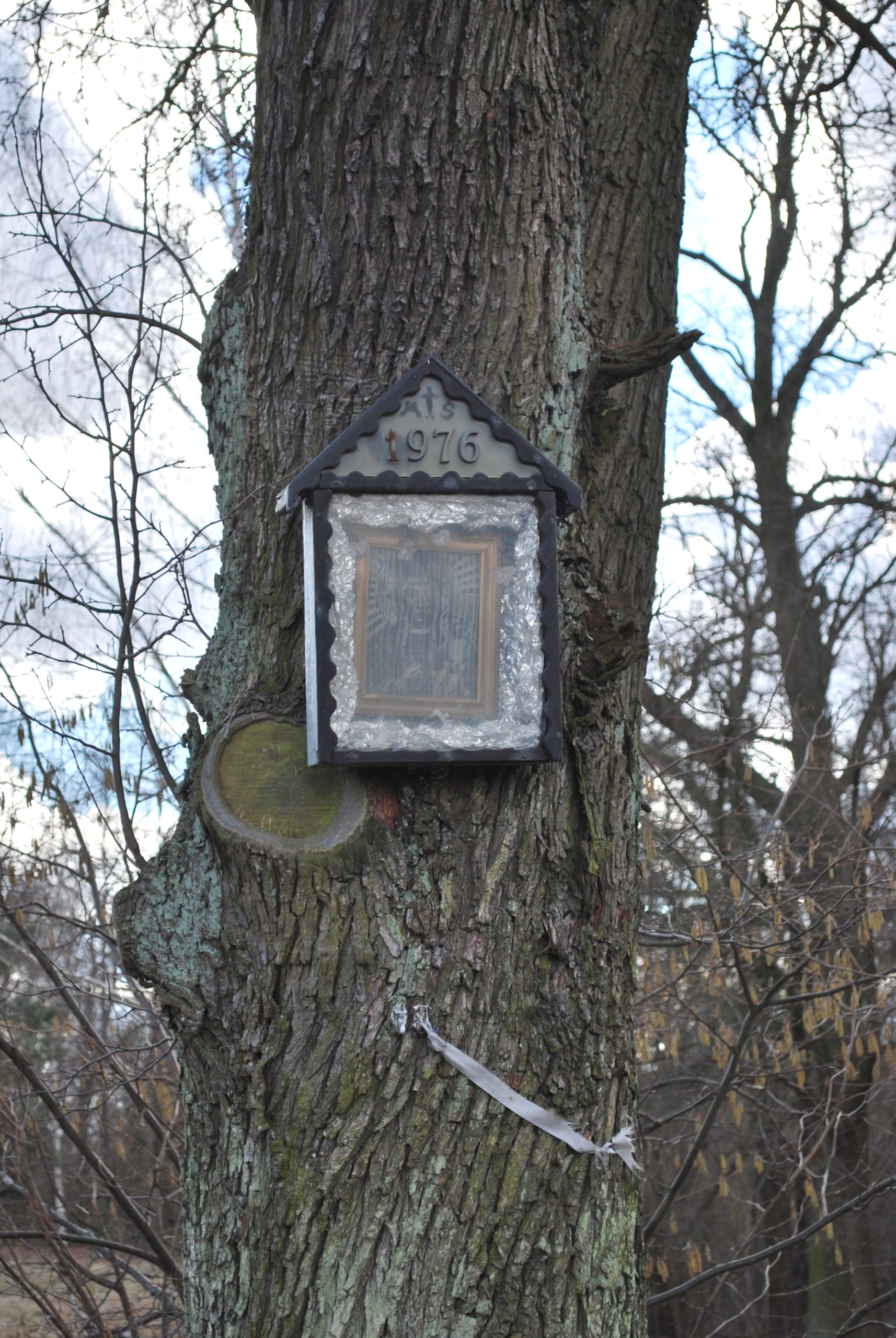 Kapliczka na drzewie, na posesji przy ulicy Nasielskiej, która powstała z inicjatywy pani mieszkającej tam na przełomie XX i XXI wieku.