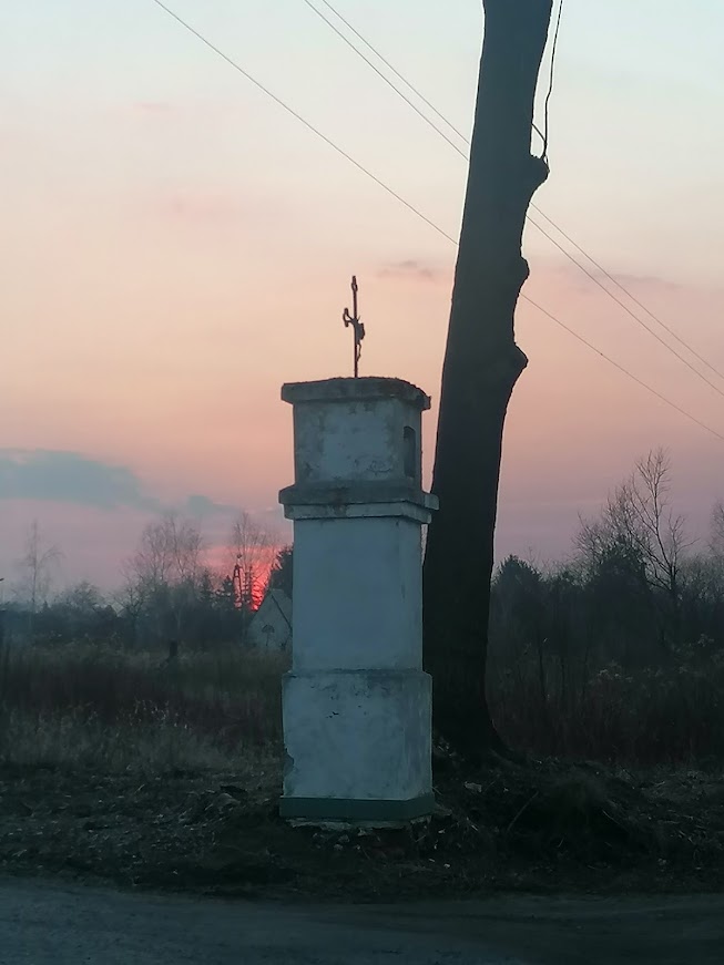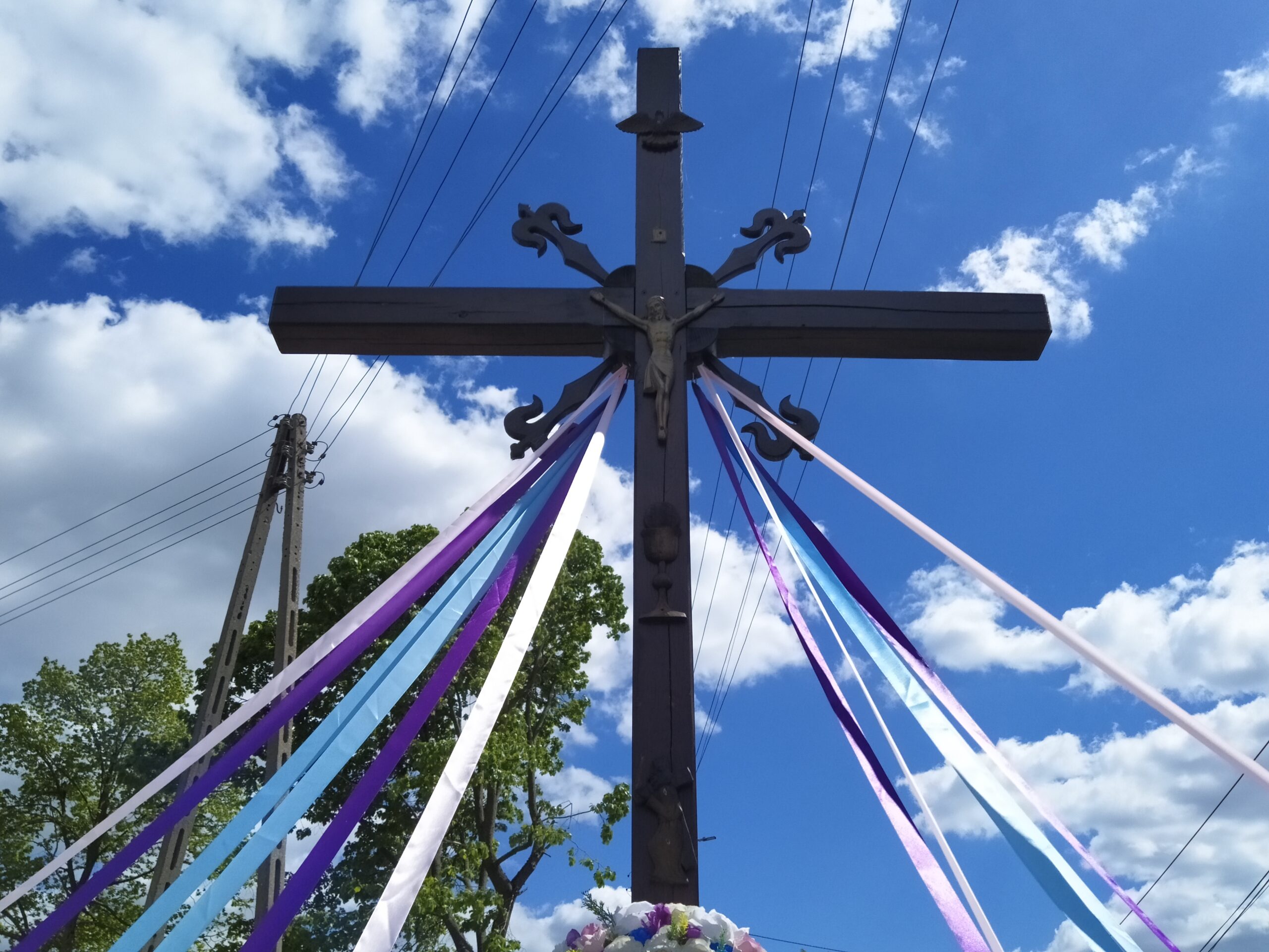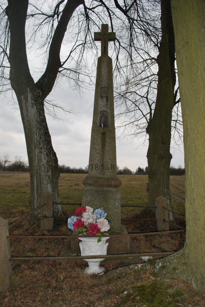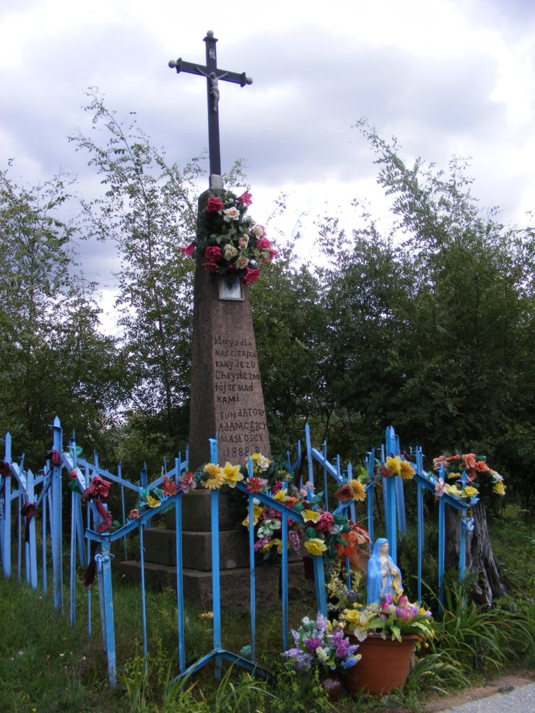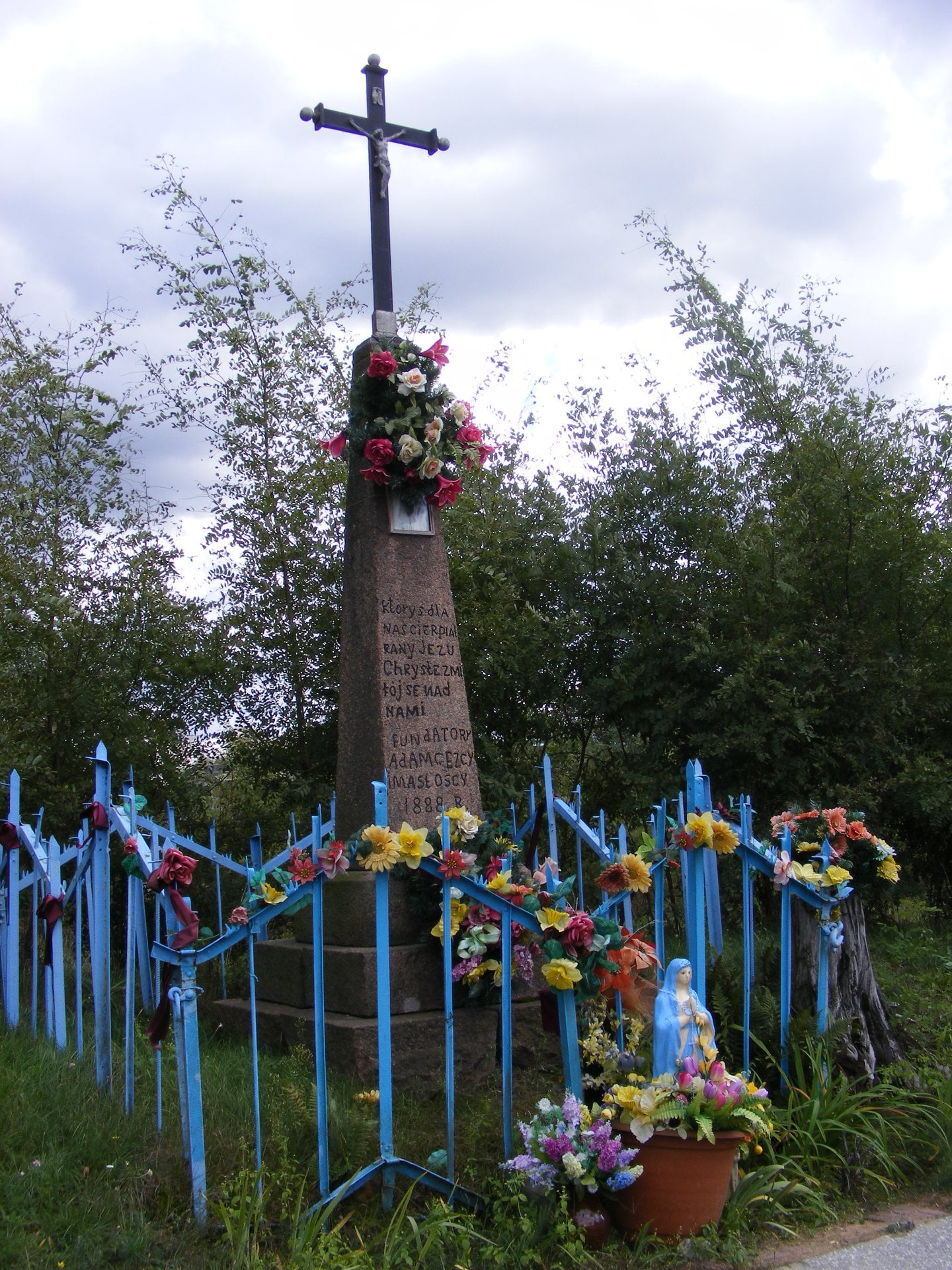 Przydrożny krzyż, do którego odprowadzano zmarłych mieszkańców wsi.