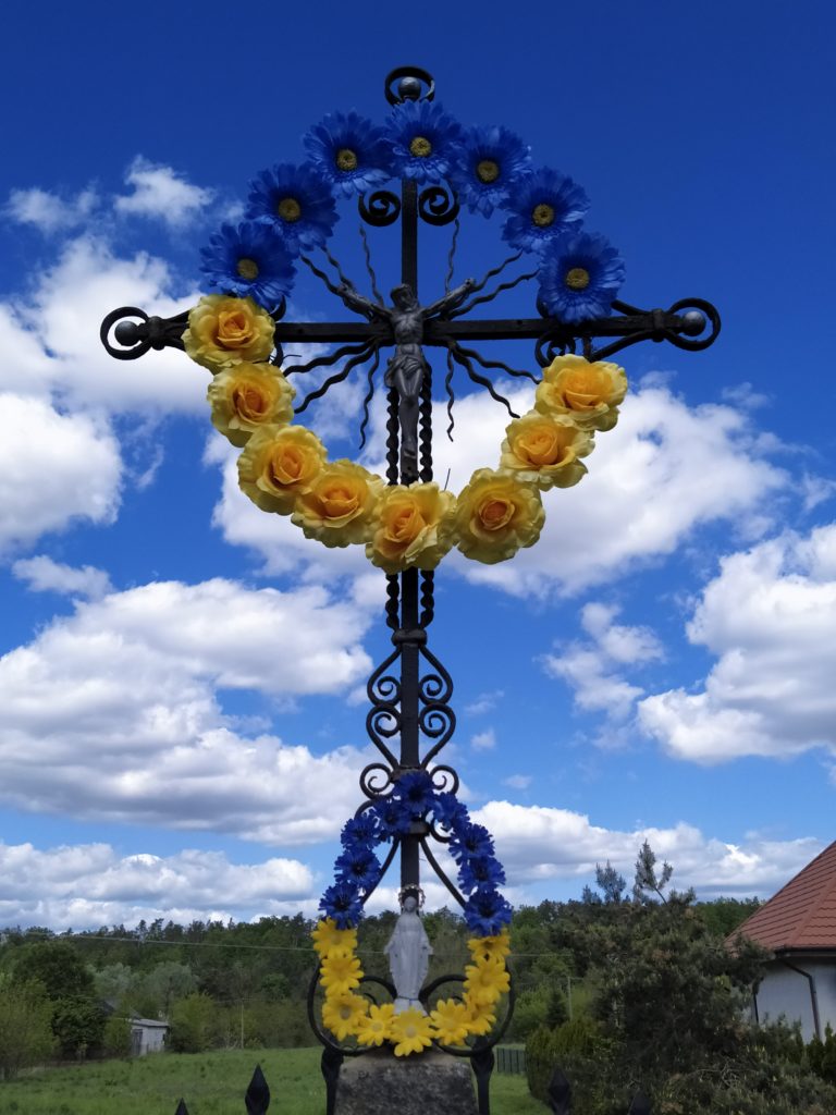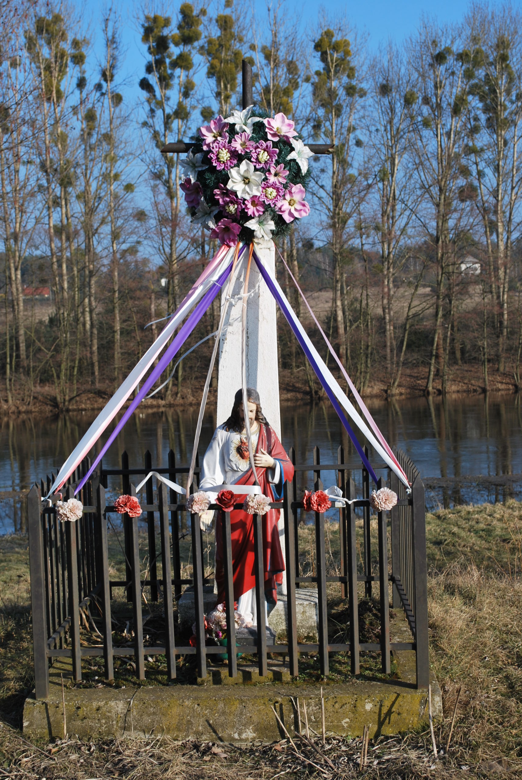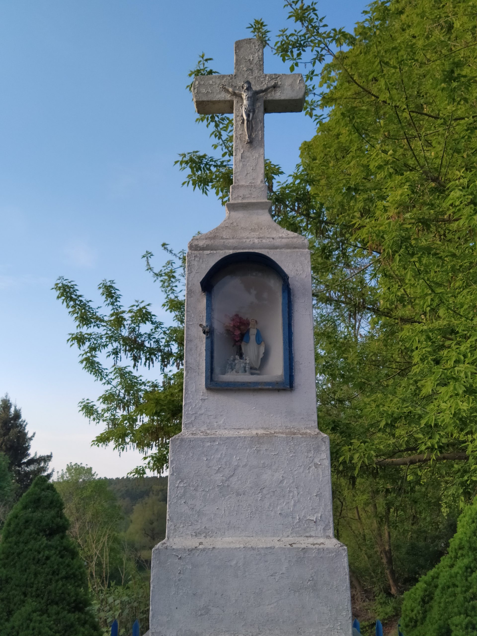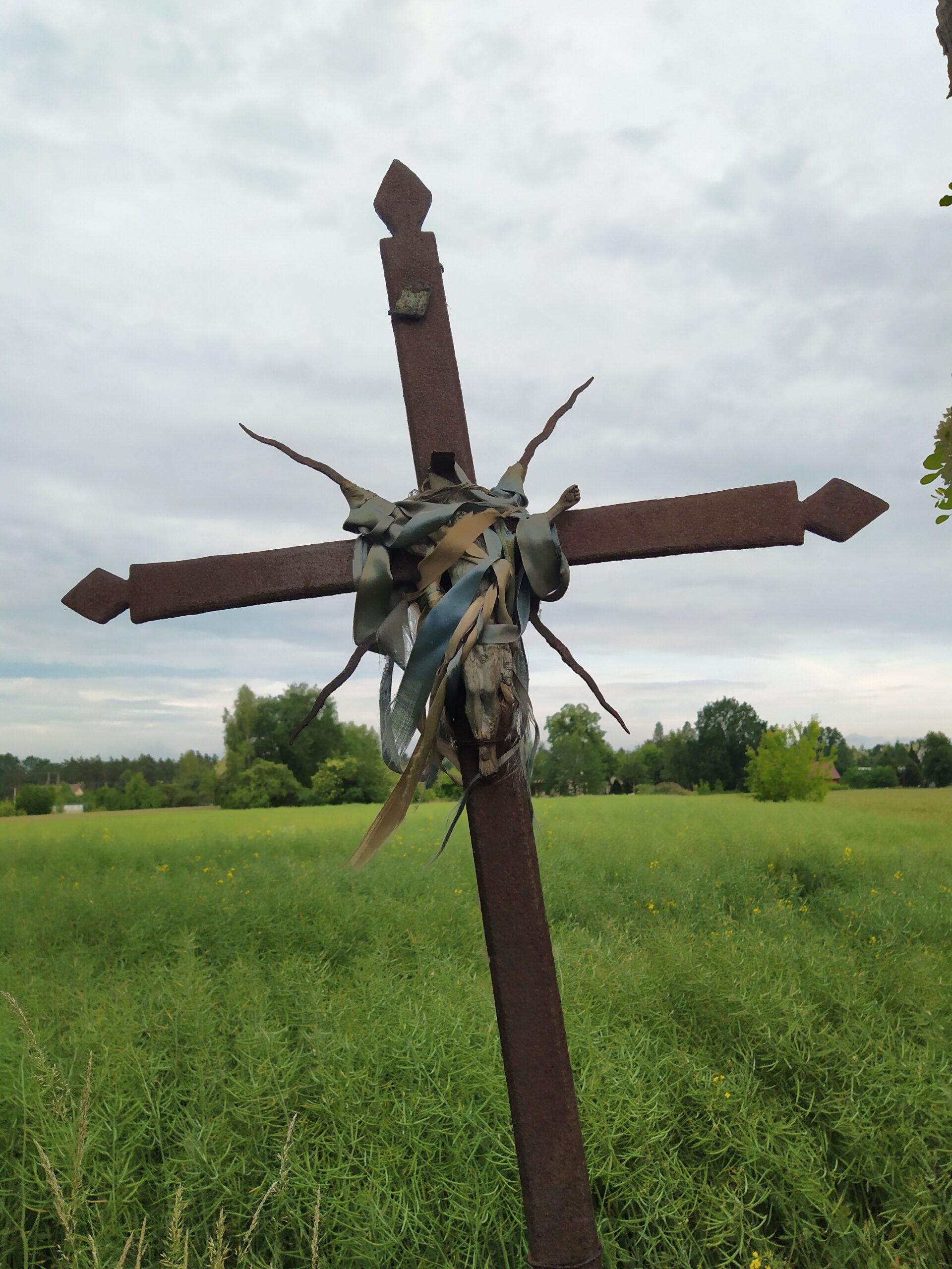 Przydrożny krzyż, do którego odprowadzano zmarłych mieszkańców wsi.