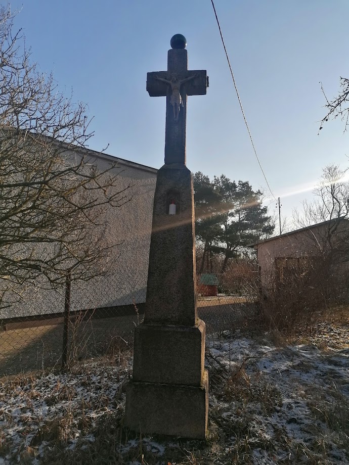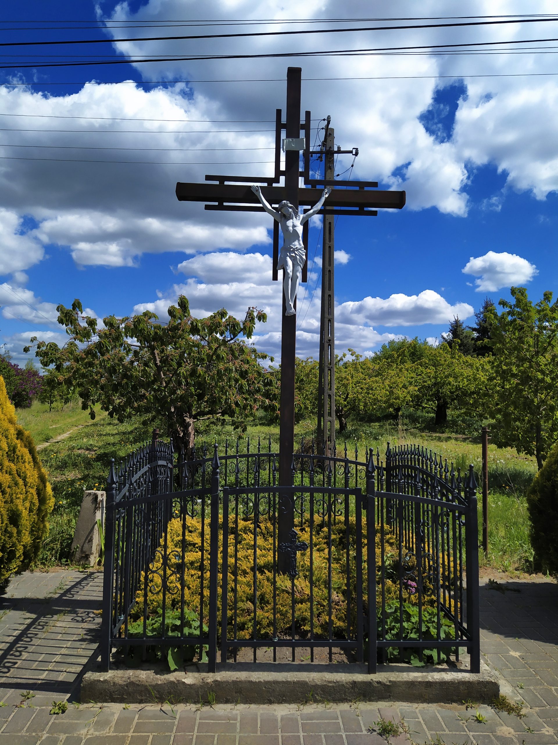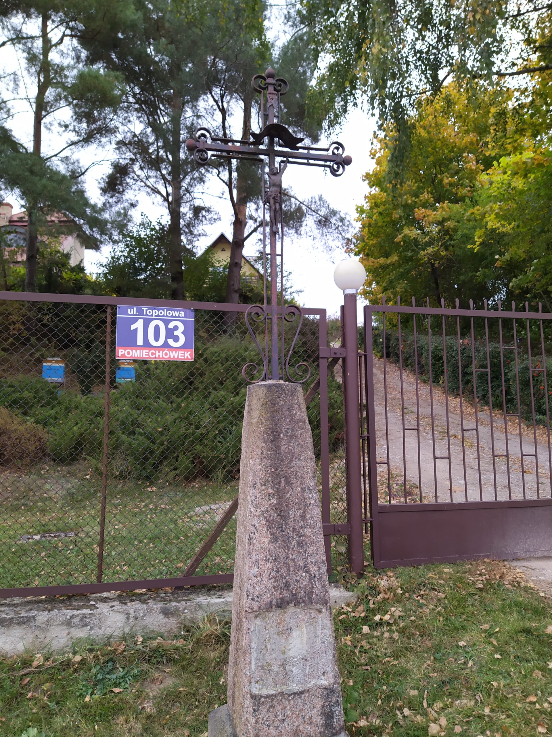 Metalowy krzyż znajdujący się na posesji, na skrzyżowaniu ulic Kwiatowej i Ogrodowej. Według przekazu ustnego, powstał jako wotum za szczęśliwy powrót z wojny.