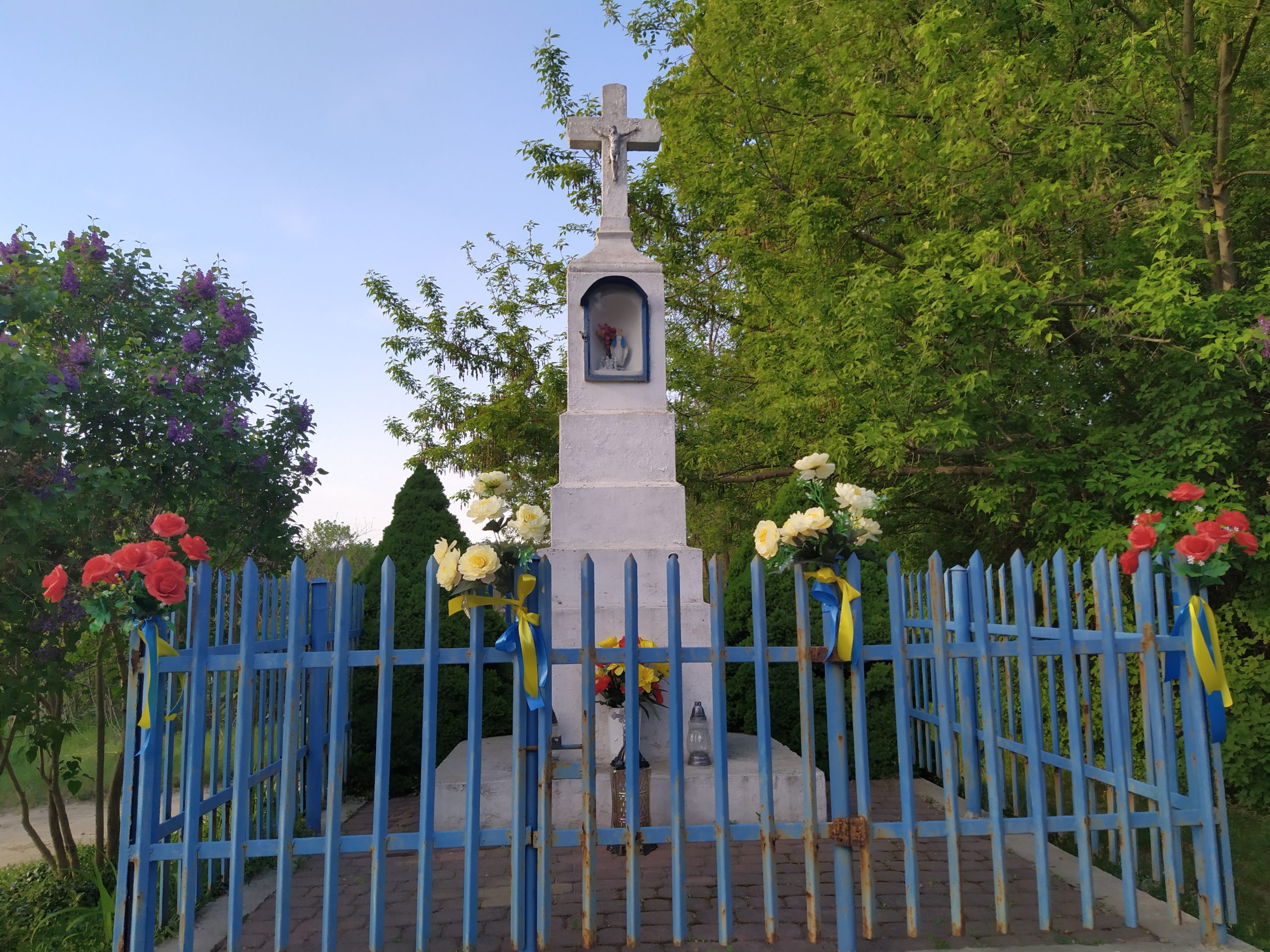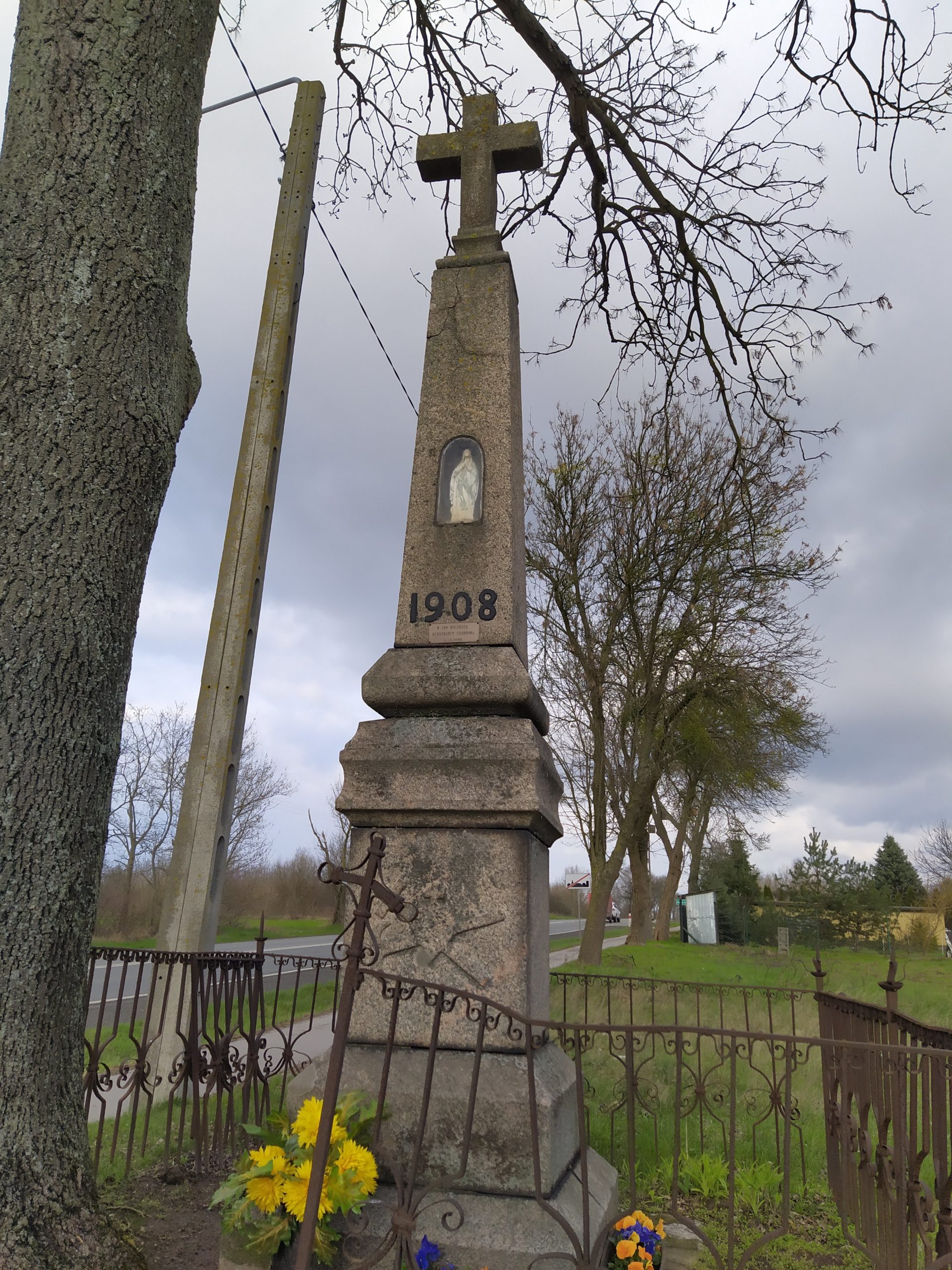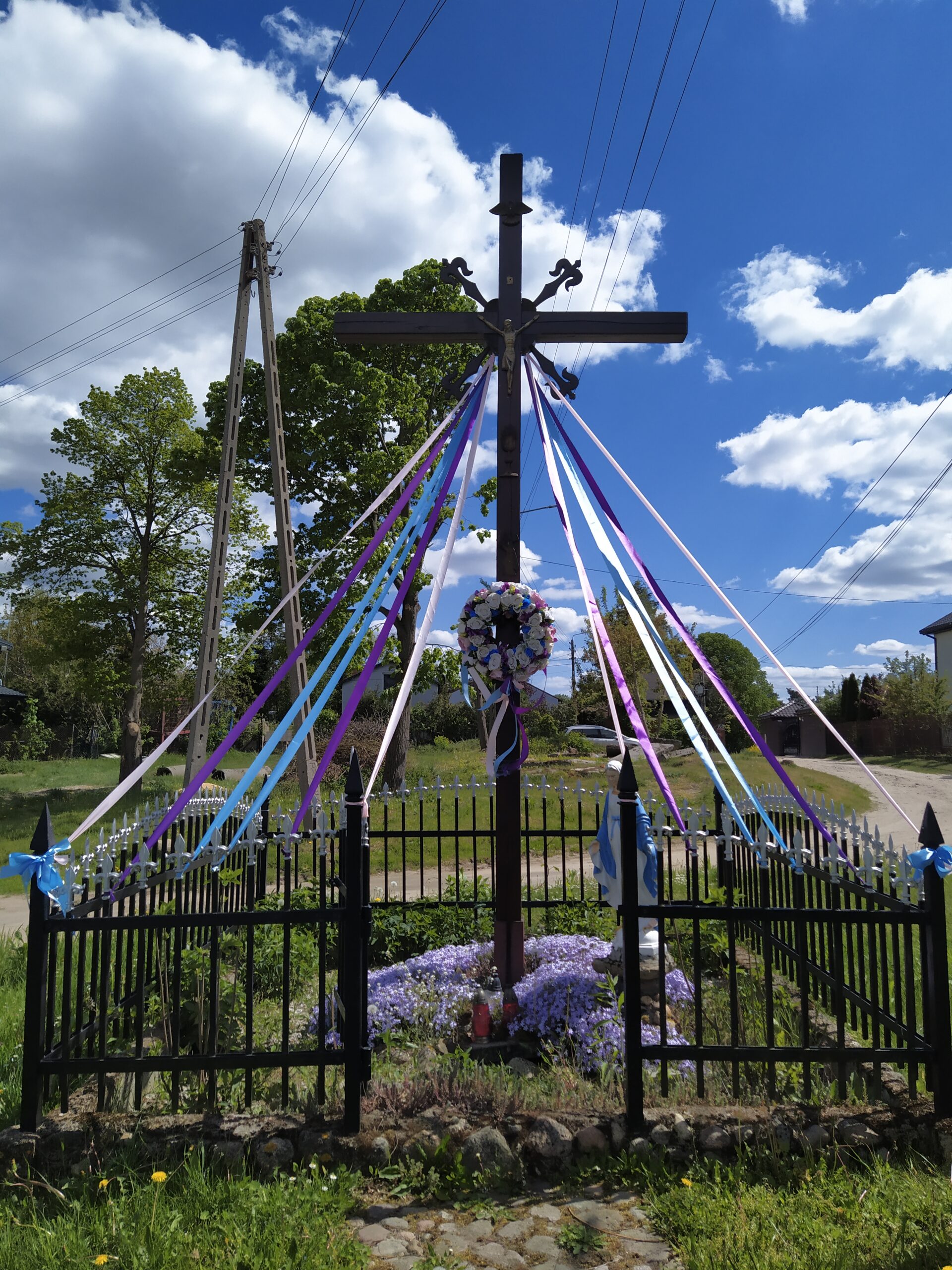 Metalowy krzyż znajdujący się na posesji, na skrzyżowaniu ulic Kwiatowej i Ogrodowej. Według przekazu ustnego, powstał jako wotum za szczęśliwy powrót z wojny.