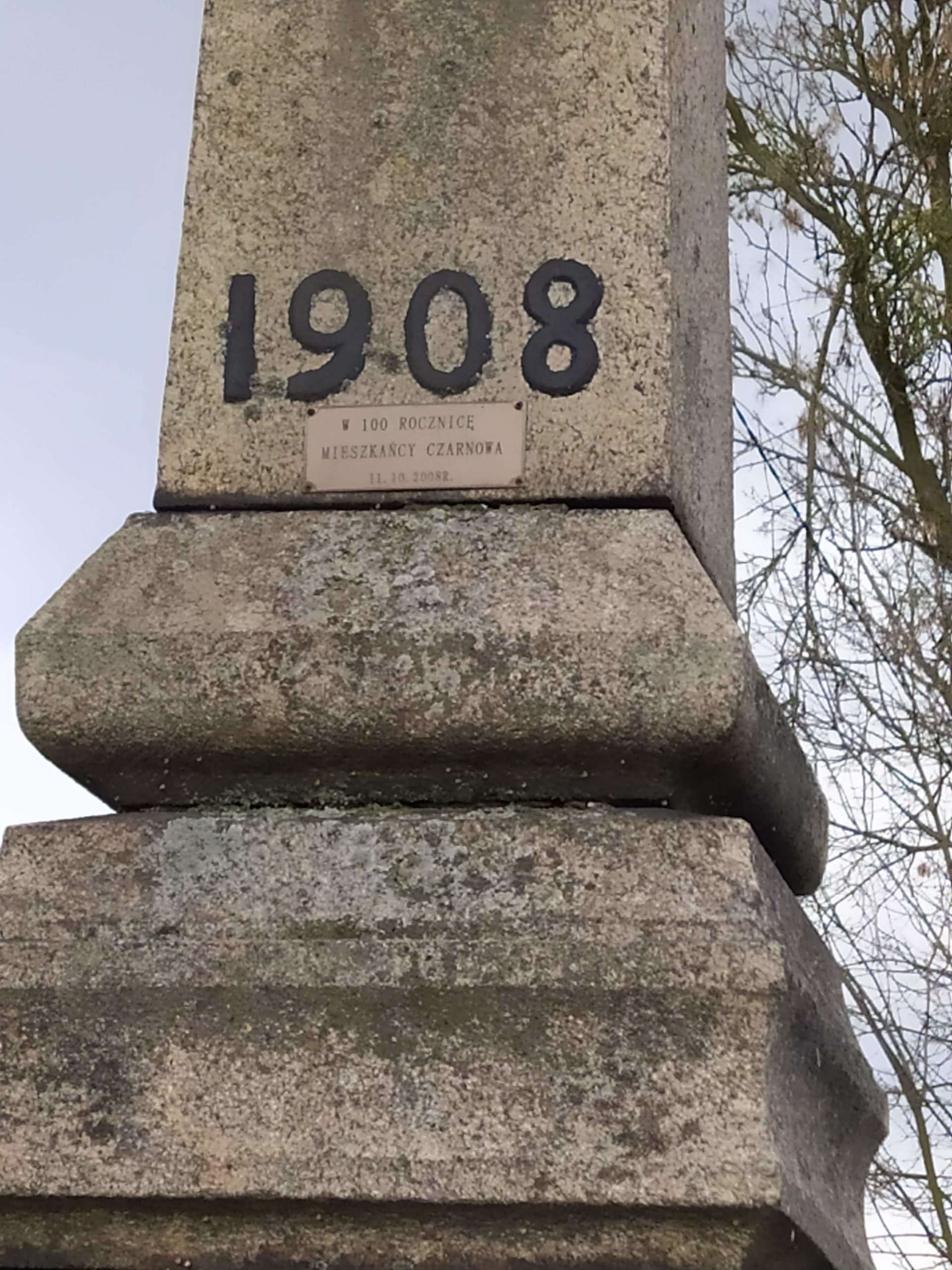 Teresa Wiśniewska: „Jest w Czarnowie na dole u podnóża jednej z działek stary metalowy krzyż (remontowany przez właściciela działki). Mój ojciec z opowieści dziadków pamięta, że był to krzyż wotywny za ustanie zarazy epidemii, ale w jakich latach, nie wiemy, na pewno przed II wojną światową, mógł powstać po I wojnie”.