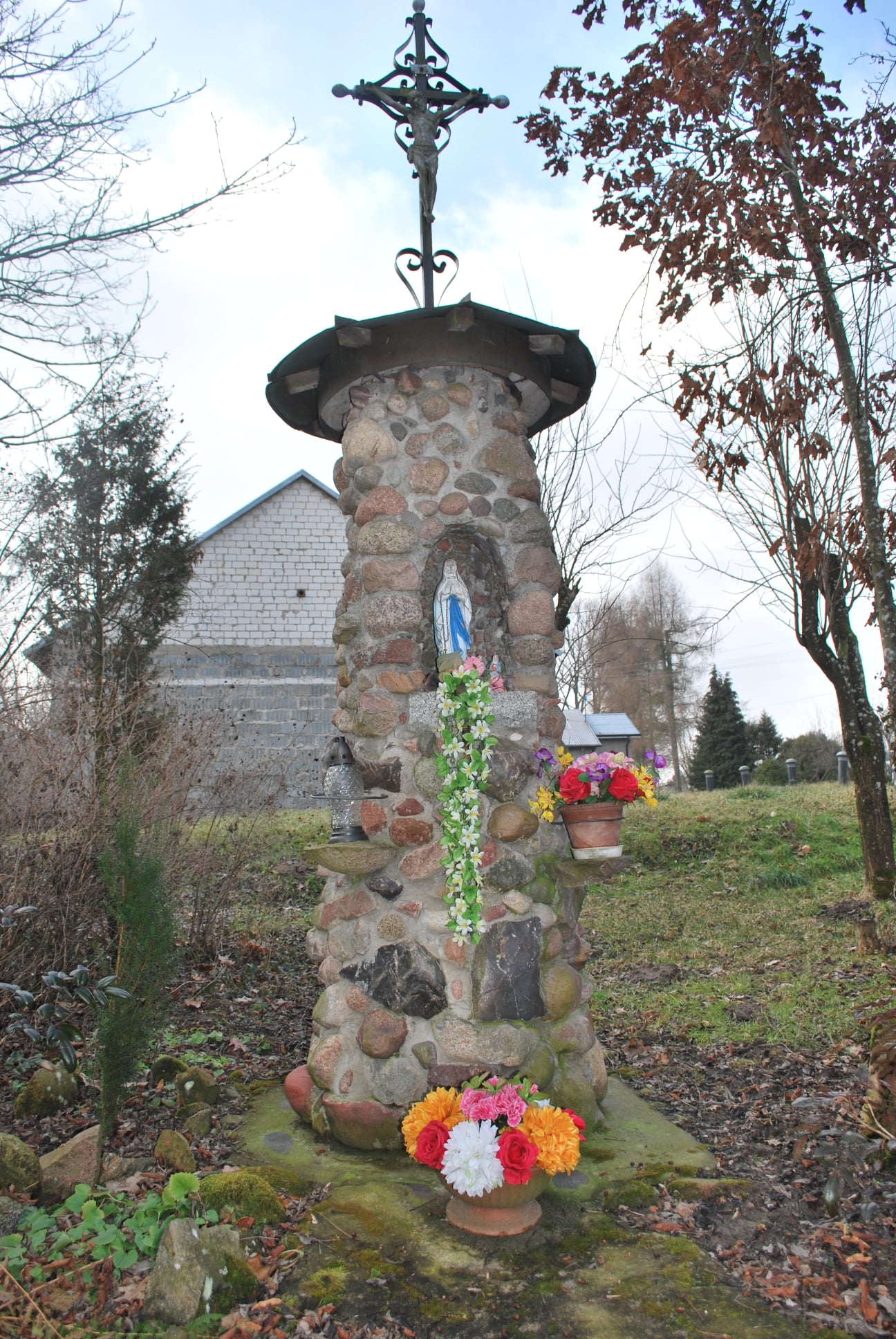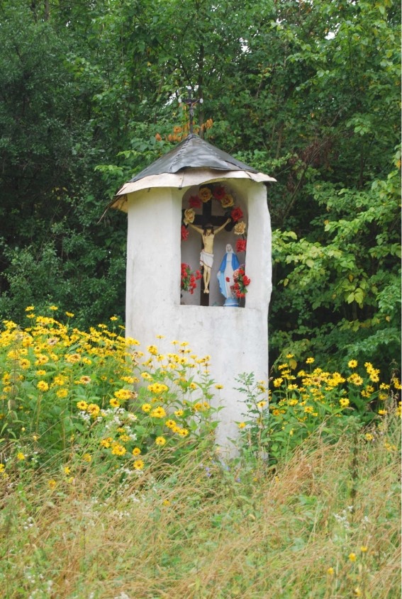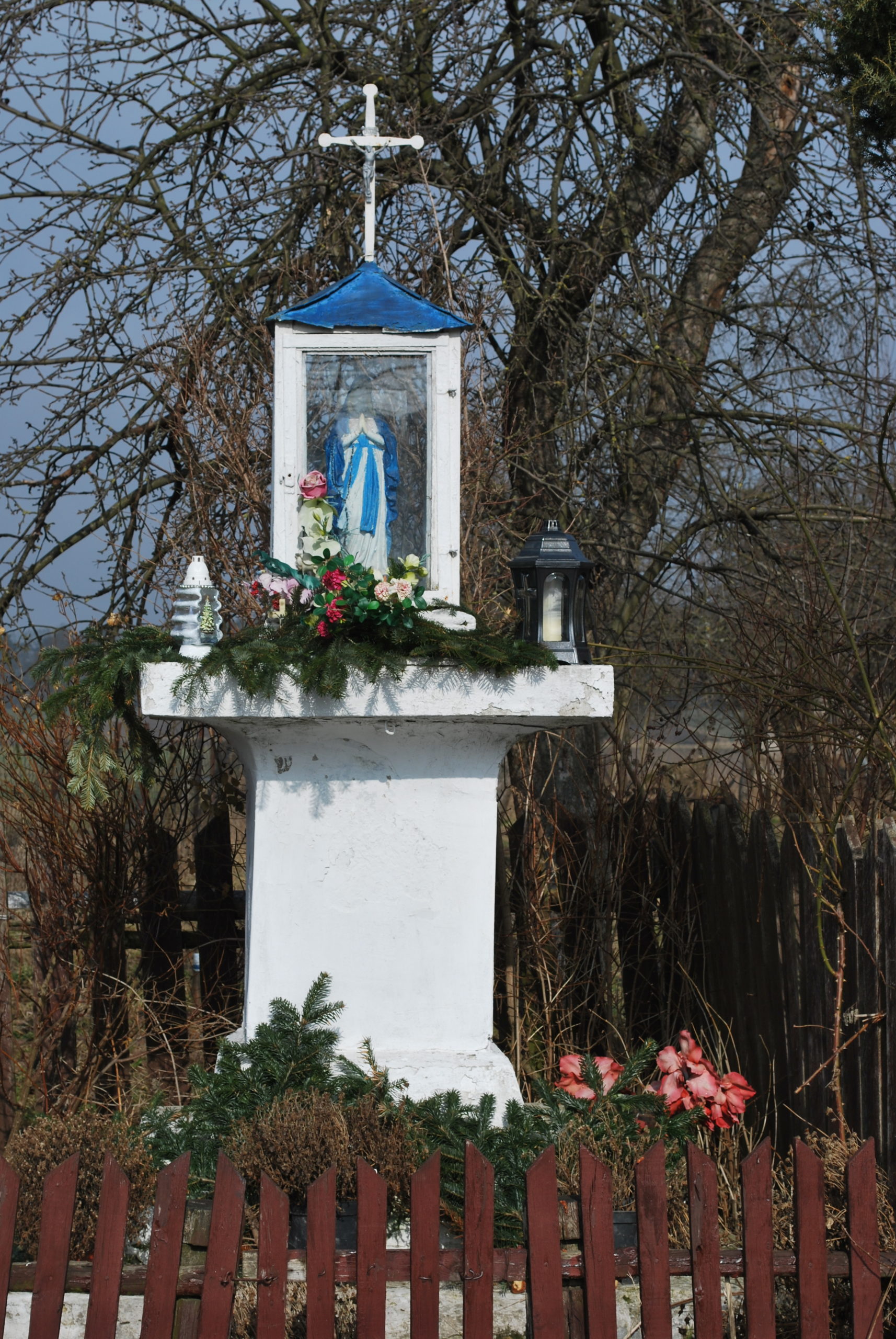 Jedna z trzech zachowanych skrzynkowych kapliczek na terenie gminy.