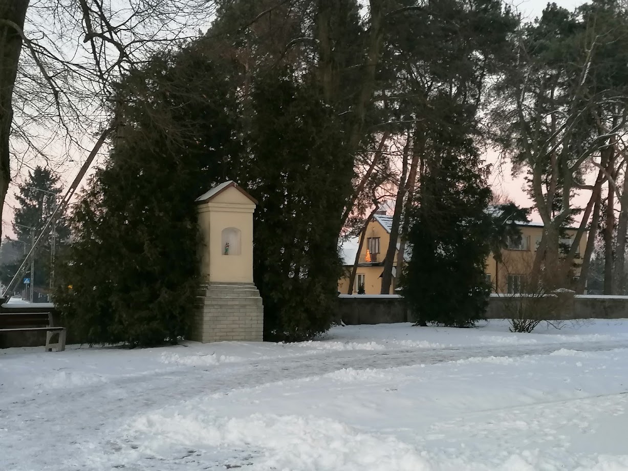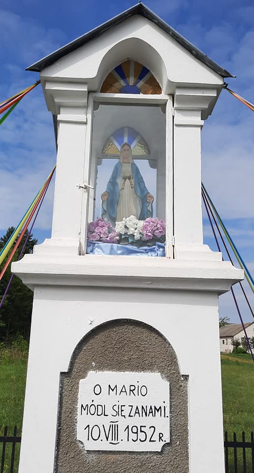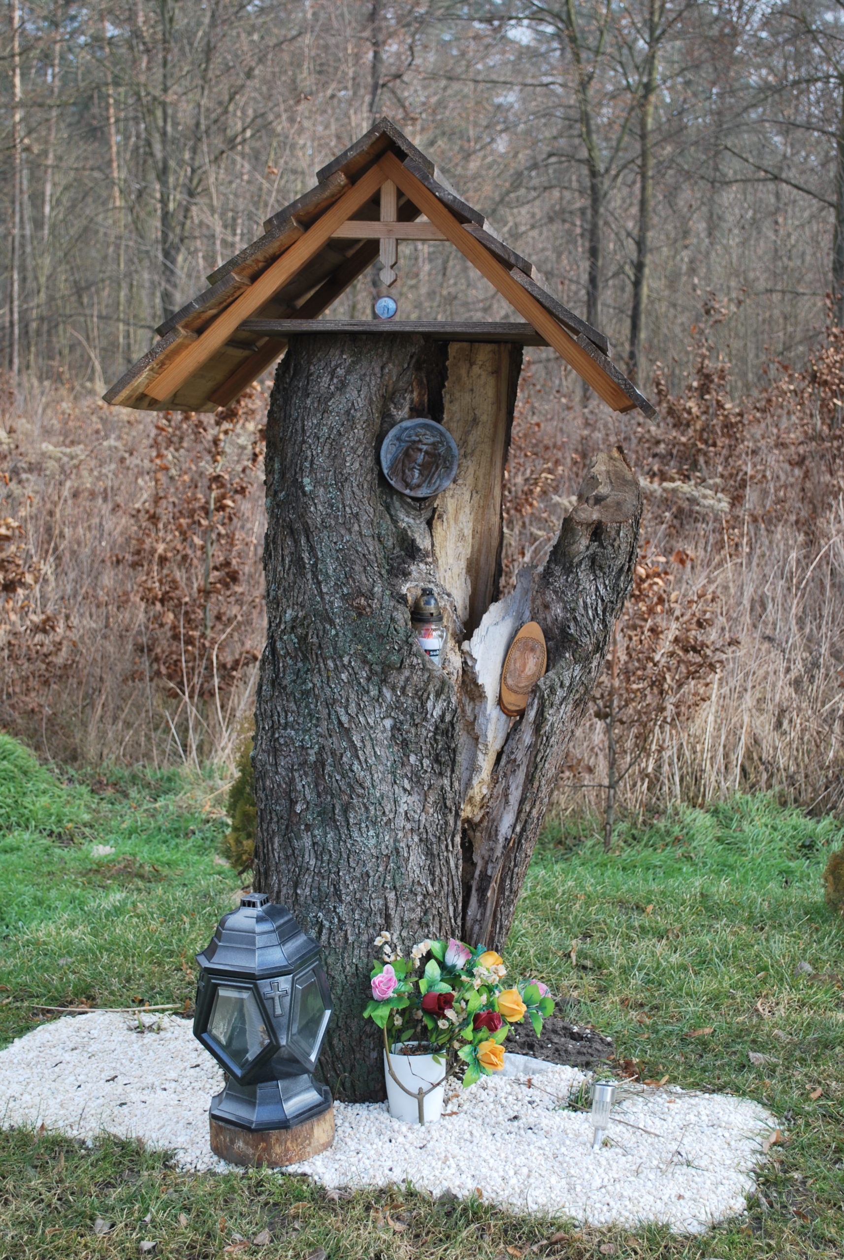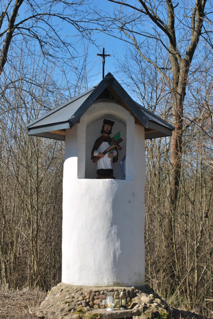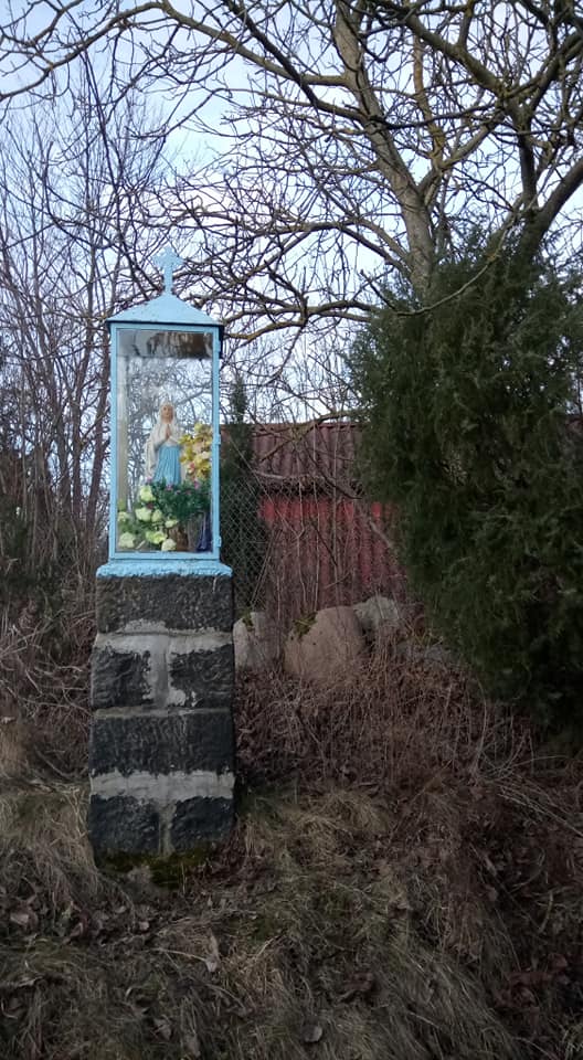 W 2020 roku podczas kolejnej burzy silny wiatr połamał gruszkę na skraju lasu, przy skrzyżowaniu dróg. Pozostał kikut pnia, w którym tkwił będący tam już wcześniej wizerunek Chrystusa… i można tak powiedzieć, że z dnia na dzień powstała kapliczka. ,,Ktoś” wyrównał teren wokół i posiał trawę, ,,Ktoś” posadził kwiaty, miejscowy życzliwy Pan Stolarz wykonał drewniany daszek, ,,Ktoś” codziennie zapala światło w lampce kapliczki… Tak powstała może najmłodsza kapliczka na terenie gminy.