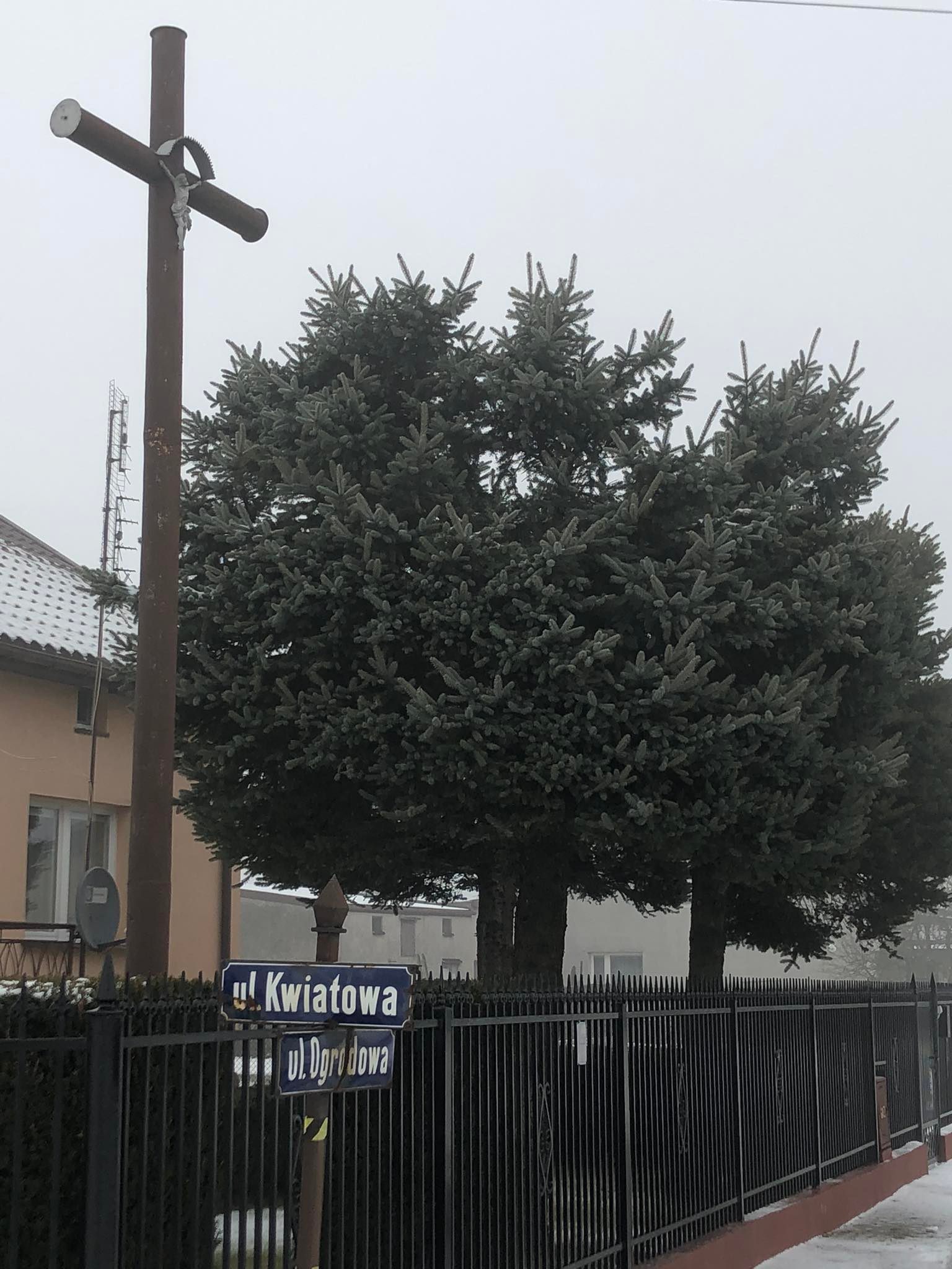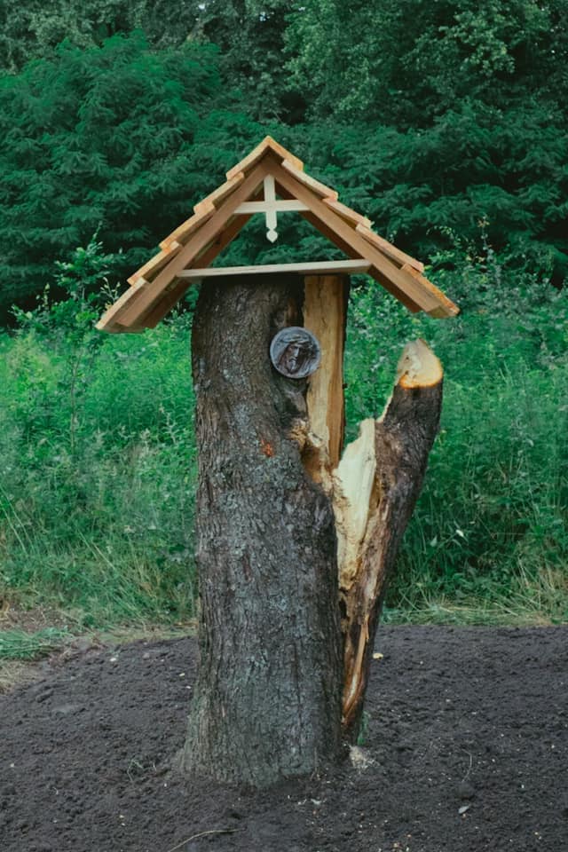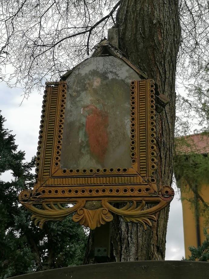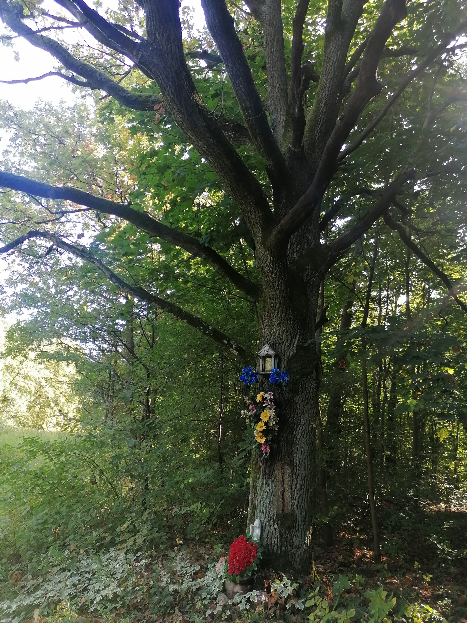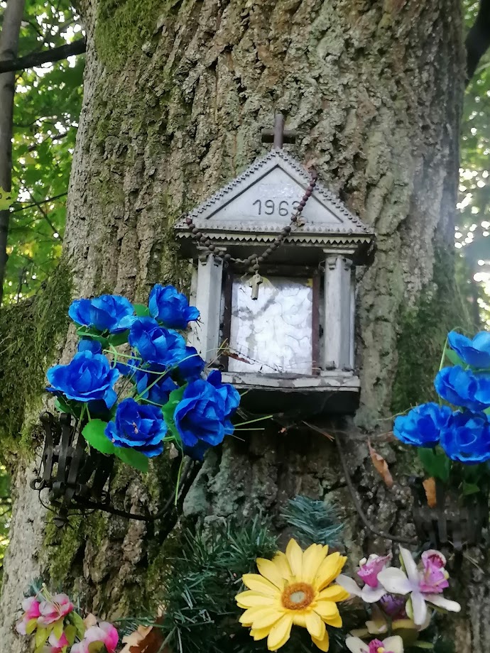 W 2020 roku podczas kolejnej burzy silny wiatr połamał gruszkę na skraju lasu, przy skrzyżowaniu dróg. Pozostał kikut pnia, w którym tkwił będący tam już wcześniej wizerunek Chrystusa… i można tak powiedzieć, że z dnia na dzień powstała kapliczka. ,,Ktoś” wyrównał teren wokół i posiał trawę, ,,Ktoś” posadził kwiaty, miejscowy życzliwy Pan Stolarz wykonał drewniany daszek, ,,Ktoś” codziennie zapala światło w lampce kapliczki… Tak powstała może najmłodsza kapliczka na terenie gminy.