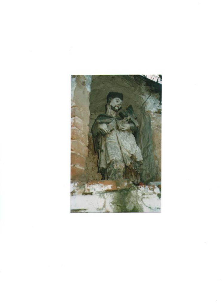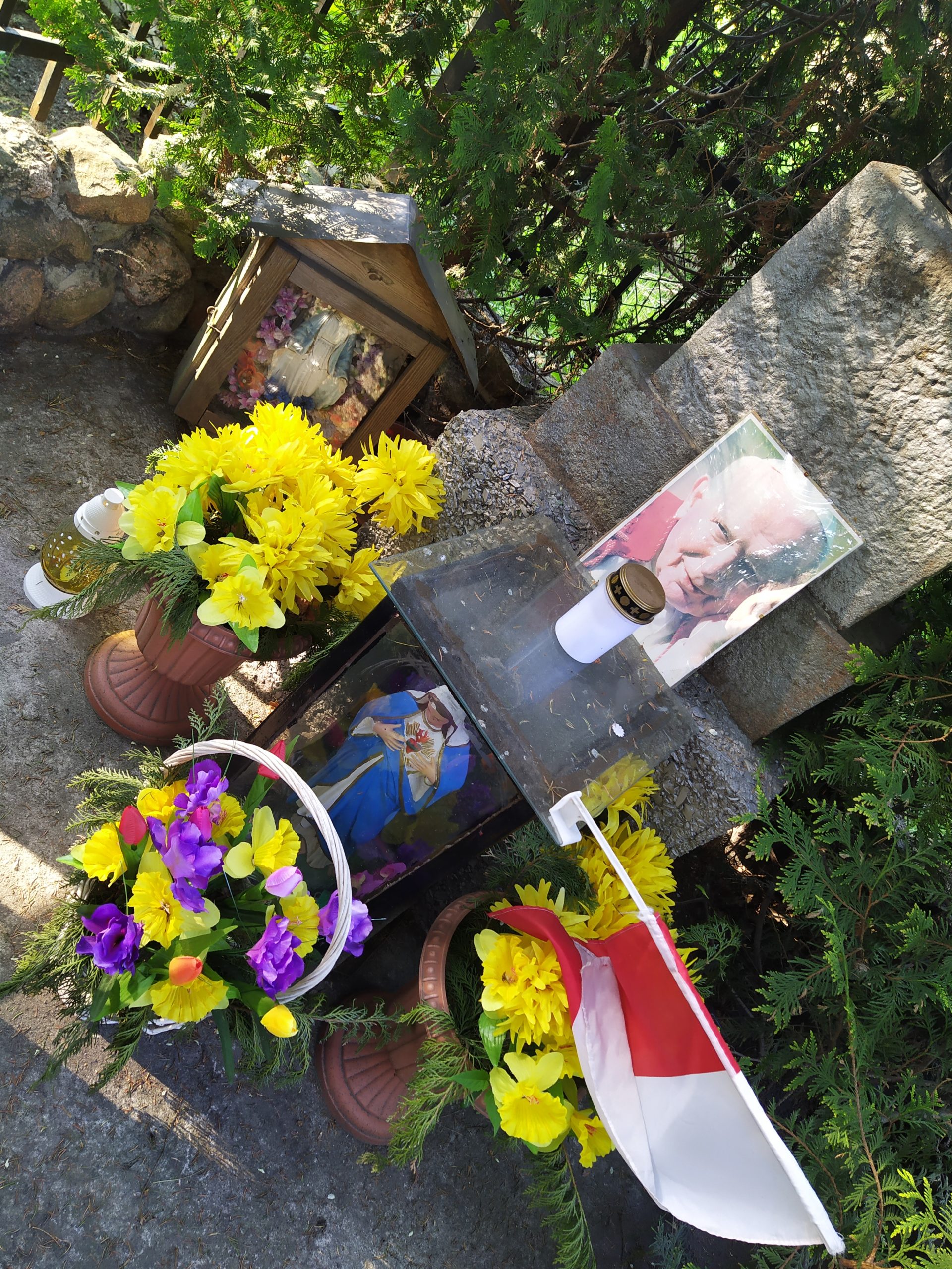 Joanna Kurpiewska: „Dodam jeszcze, że poprzednia figurka, wykonana z lastriko, stała w tym miejscu od lat 70.. Zastąpiła drewniany krzyż, który prawdopodobnie się przewrócił ze starości lub z powodu nagłego wiatru.”