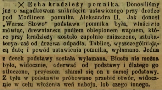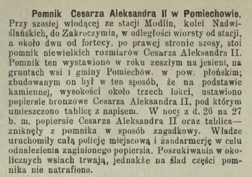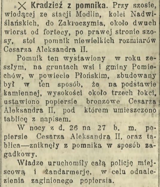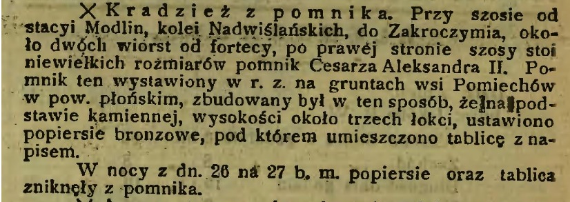100 – lecie bitwy pod Czarnowem w 1906 r. Rosjanie uczcili postawieniem pamiątkowego pomnika w tej miejscowości. Prawdopodobnie pomnik nie znajdował się w Czarnowie, tylko w Modlinie. Pierwotna wersja była upamiętnieniem bitwy pod Czarnowem.