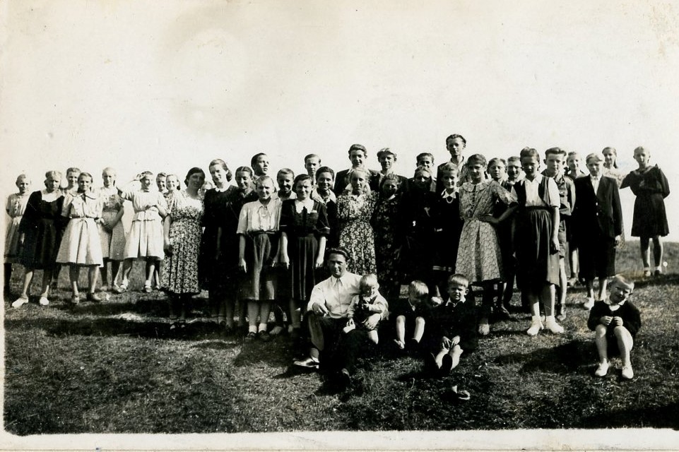 Na zdjęciu Władysław Piotrak z uczniami klasy IV, 1939 rok. (Kronika Szkoły)