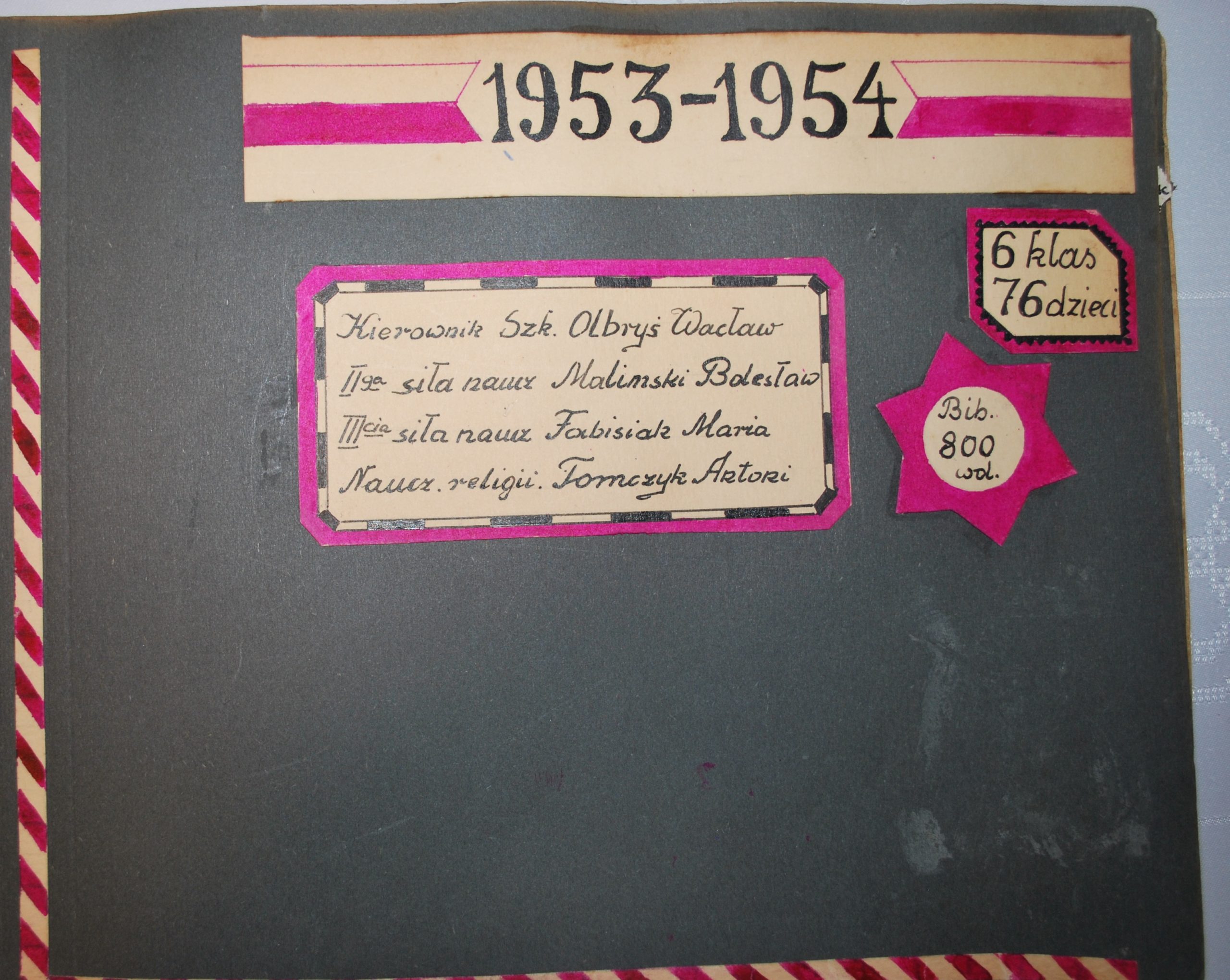 W roku szkolnym 1953 – 1954 kierownikiem pozostaje Wacław Olbryś. Nauczyciele to: Bolesław Malinowski i Maria Fabisiak. Nauczycielem religii był Antoni Tomczyk.