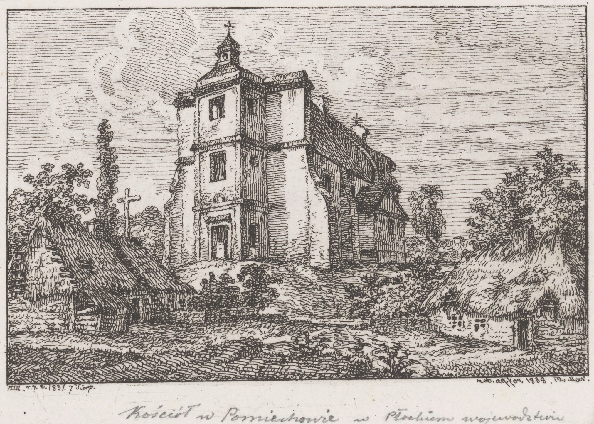 - 1837 r. – artysta Kajetan Kielisiński wykonuje akwafortę z wizerunkiem kościoła w Pomiechowie. Jest to pierwszy znany obecnie wizerunek tej świątyni.