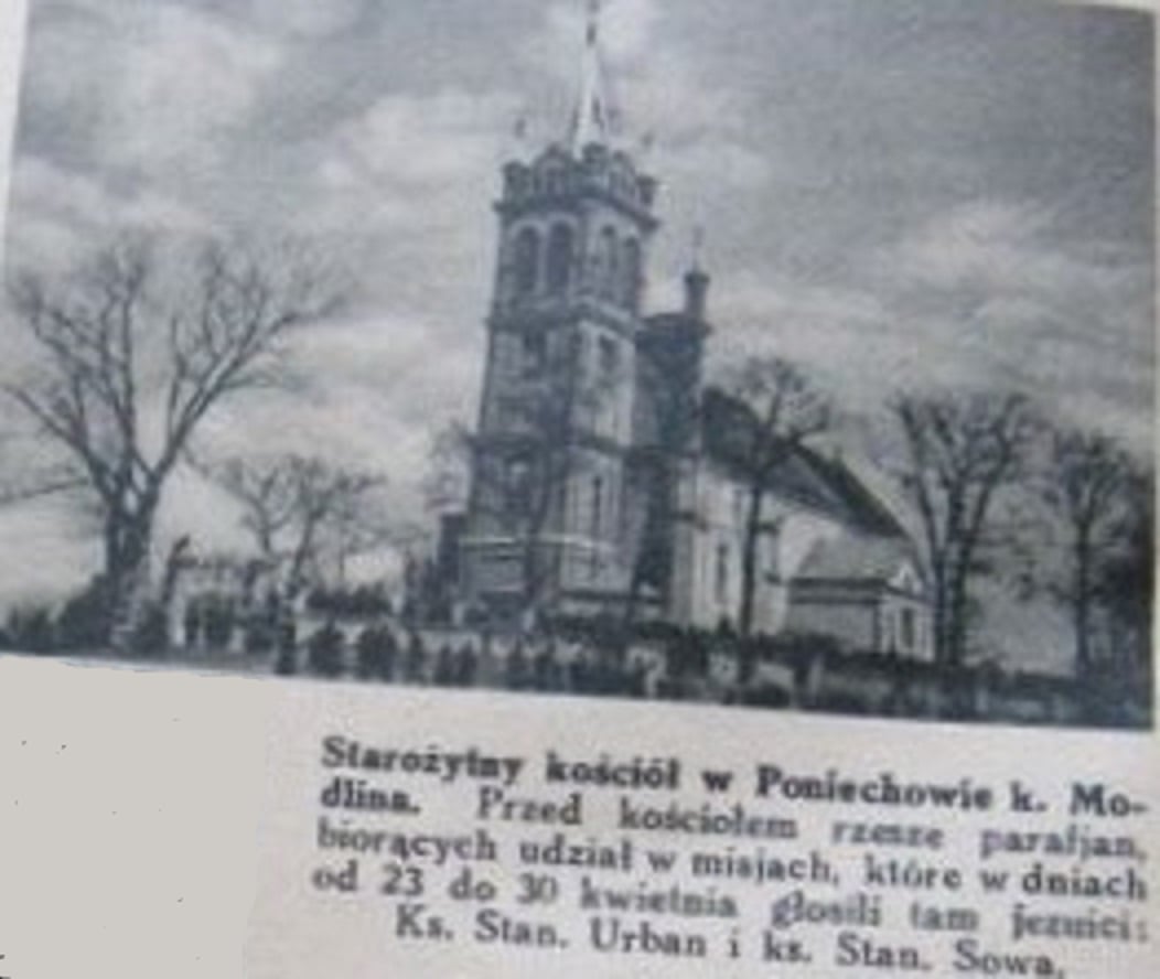 - 1937 r. – proboszczem zostaje ks. Gieryszewski. staraniem jego i gen, Składkowskiego pobudowana zostaje droga z Pomiechówka do Pomiechowa, powstaje plac przed kościołem, droga do plebanii i cmentarza. Zostają pomalowane sztachety wokół cmentarza. Kosztem parafian zostaje zbudowany budynek w podwórzu plebanii, gdzie urządzono wozarkę spichrz i bibliotekę parafialną i salkę na zebrania. do kościoła zakupiono obraz Serca Pana Jezusa, św. Teresy, św. Andrzeja Boboli, dwa srebrne kandelabry i bieliznę kościelną. wyremontowany został dach i przygotowano projekt domu katolickiego, na który zgromadzono materiały.