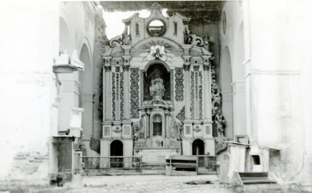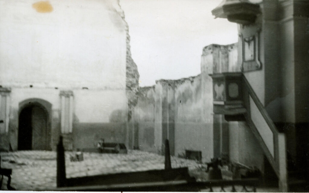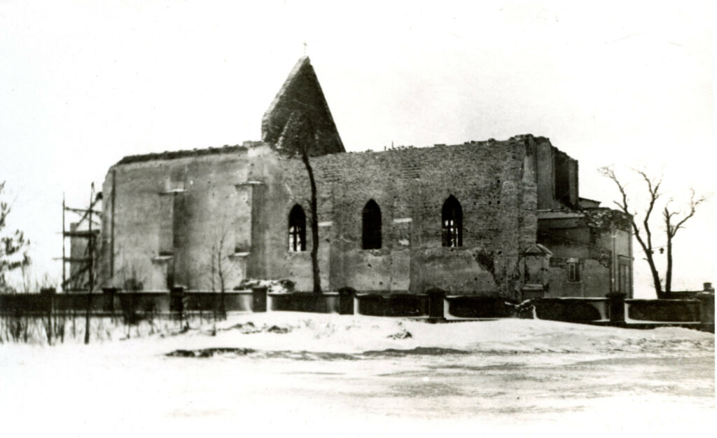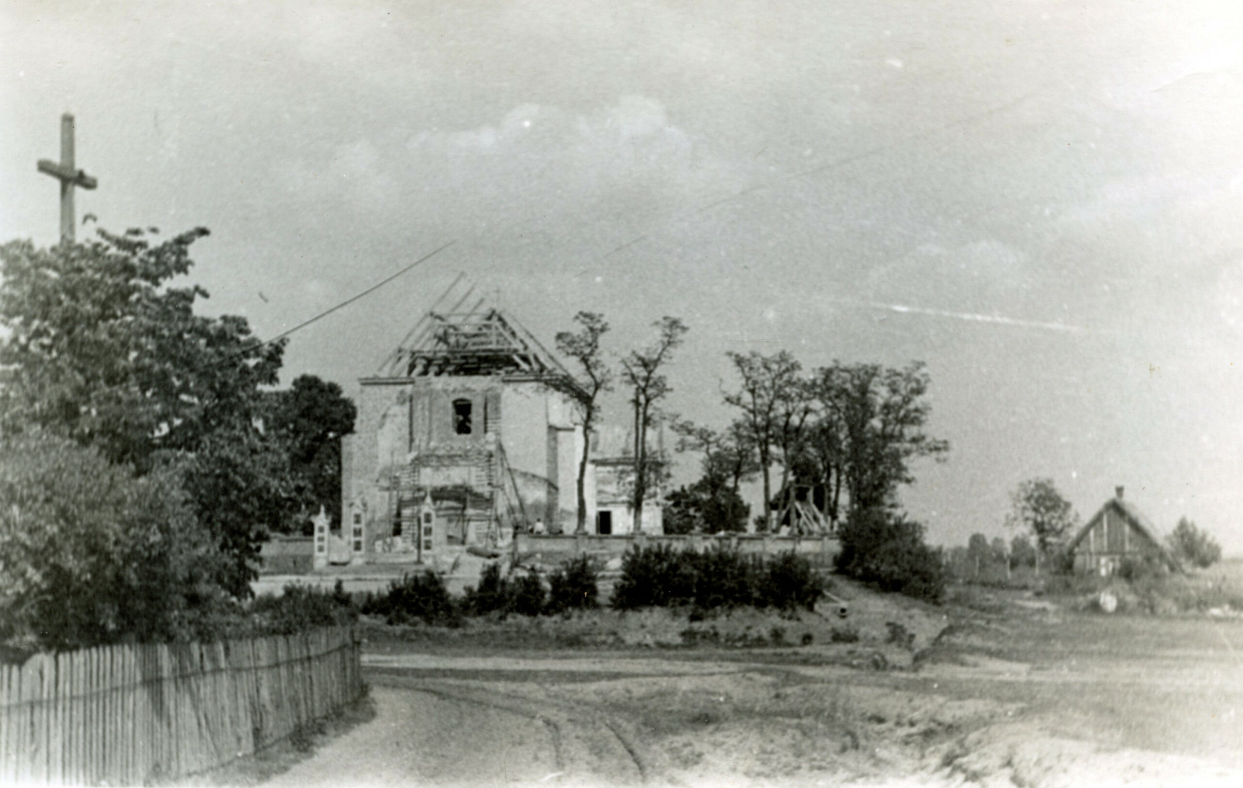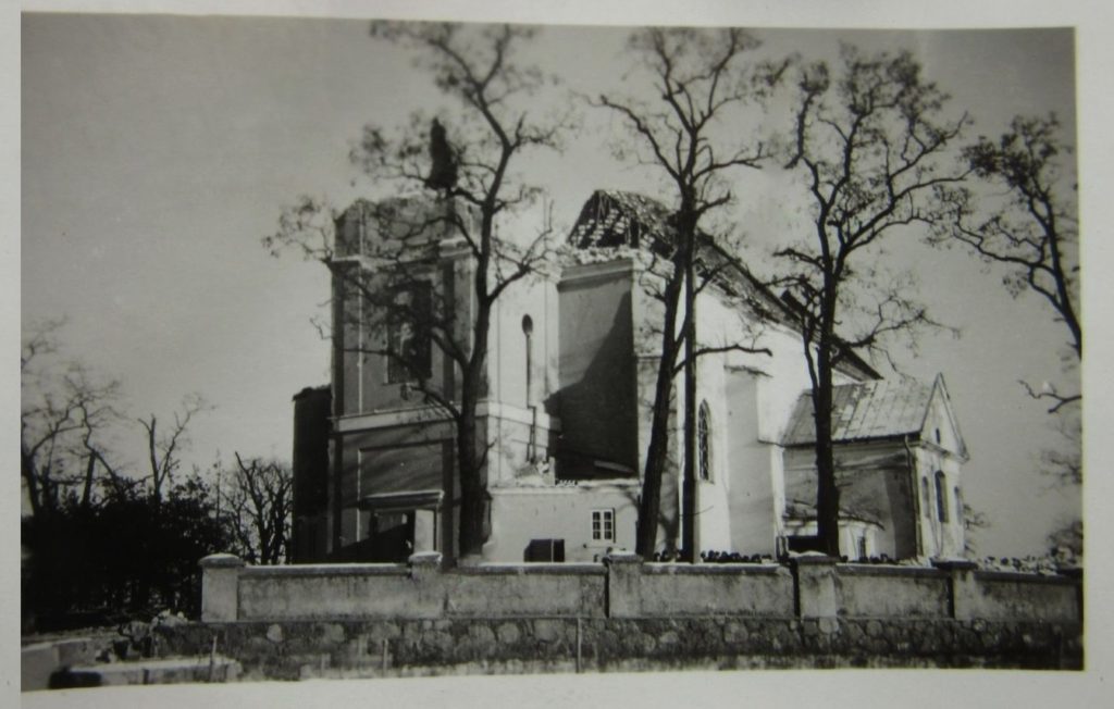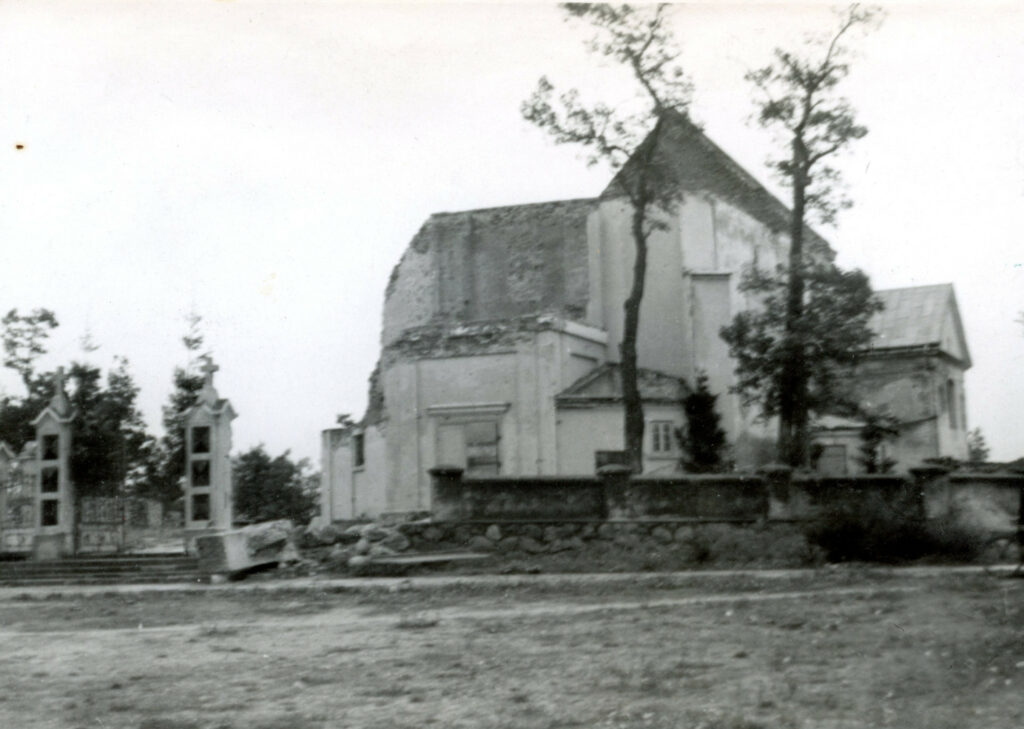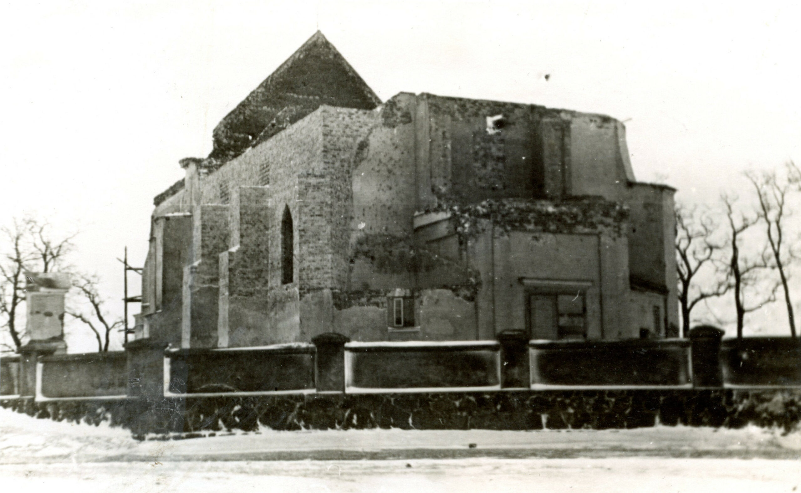 - 1945 r. – zniszczenie kościoła, z którego zostaje ściana tylna z ołtarzem, fragmenty ścian bocznych oraz posadzka.
