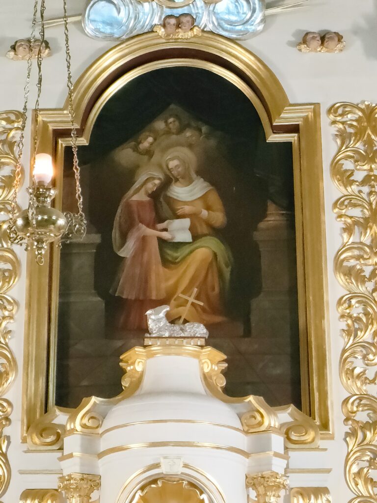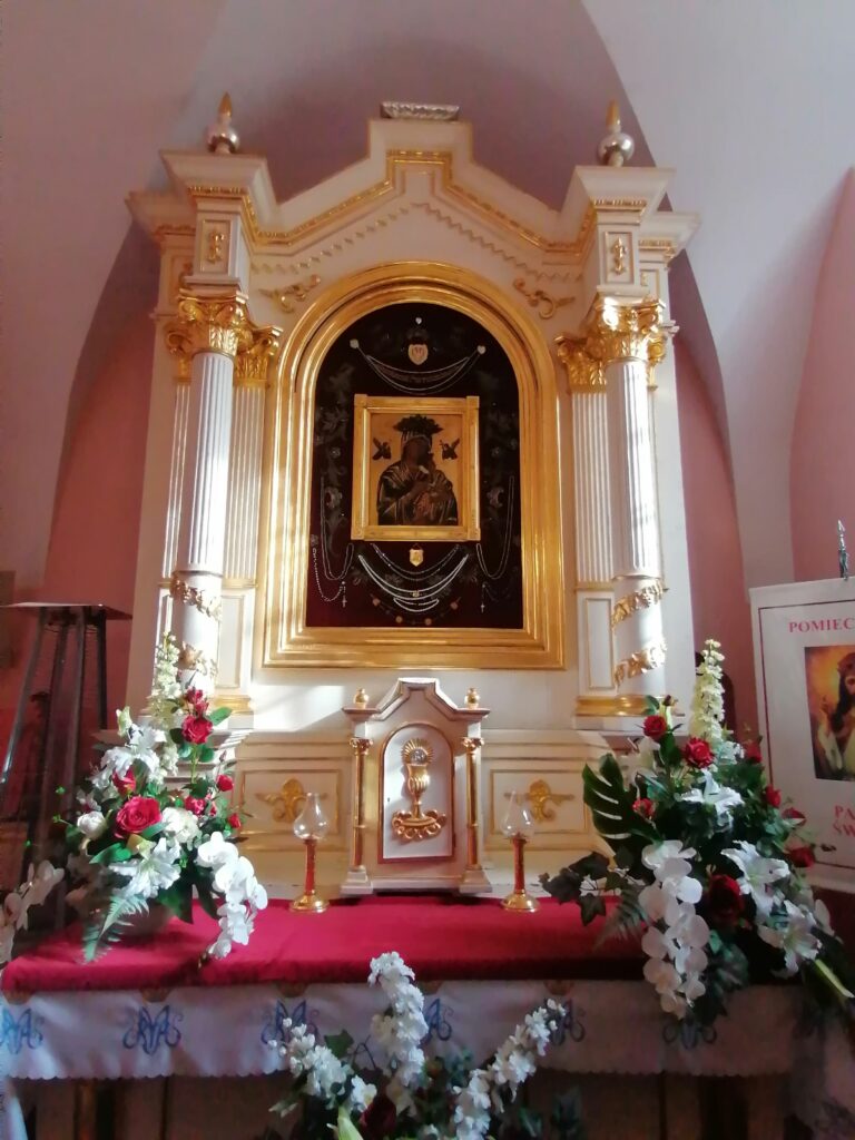 - neobarokowy ołtarz kościoła datowany na 1887 rok. Podobnie ołtarz w kaplicy,