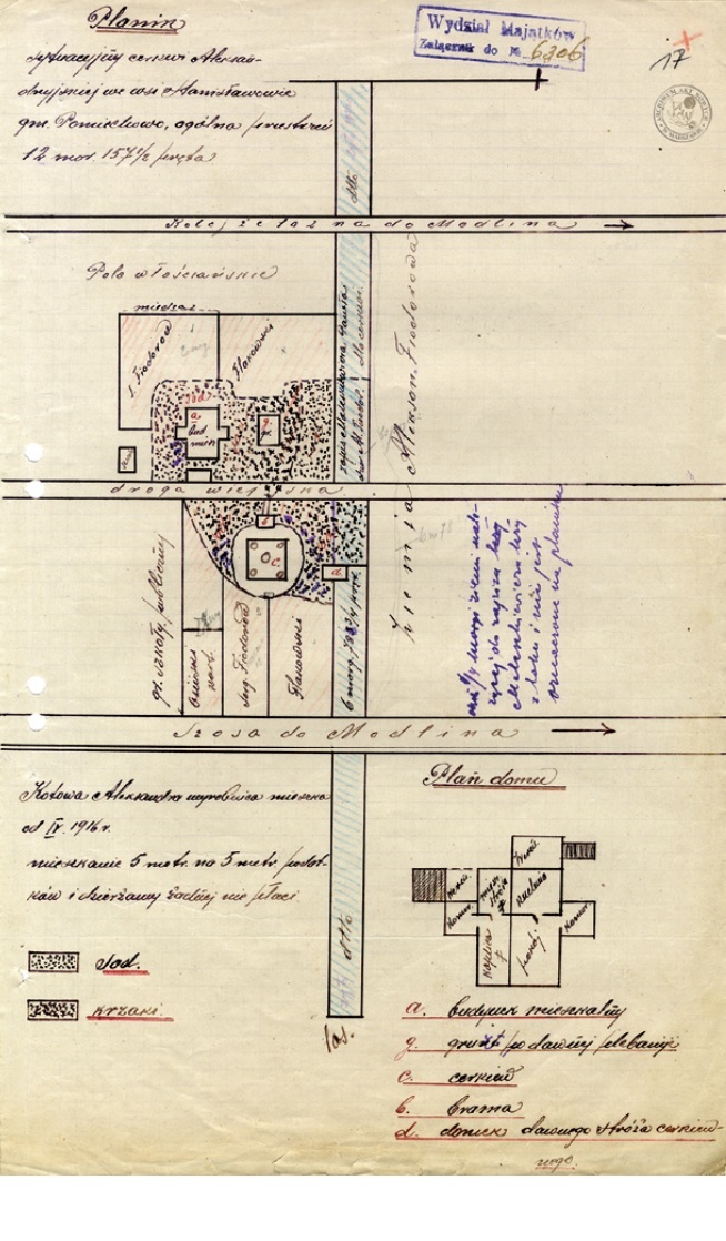 Plan sytuacyjny cerkwi Aleksandryjskiej we wsi Stanisławowie, gm. Pomiechowo. Niżej rzut