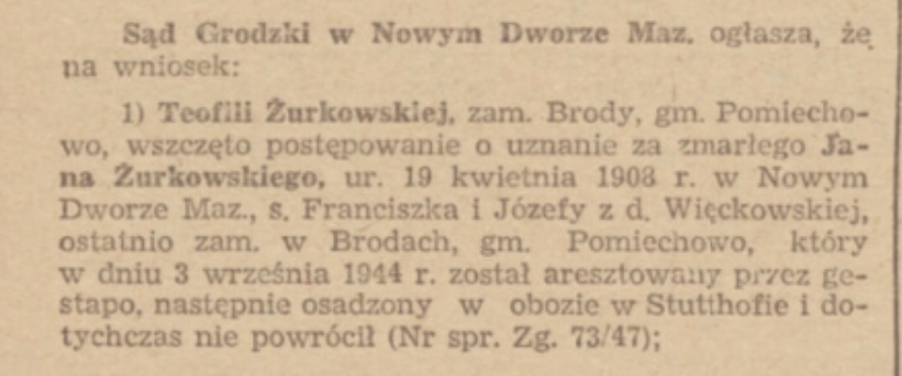 Obwieszczenie Publiczne dodatek do Dziennika Urzędowego Ministerstwa Sprawiedliwości 1948