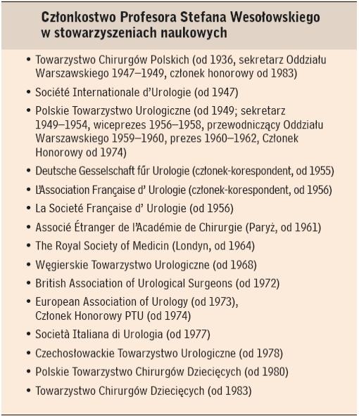 https://www.1944.pl/powstancze-biogramy/stefan-wesolowski,48020.html - Od 1947 był sekretarzem Komitetu Organizacyjnego Polskiego Towarzystwa Urologicznego a następnie od 1949 r. sekretarzem Towarzystwa. W latach 1960–1962 – jego prezesem.