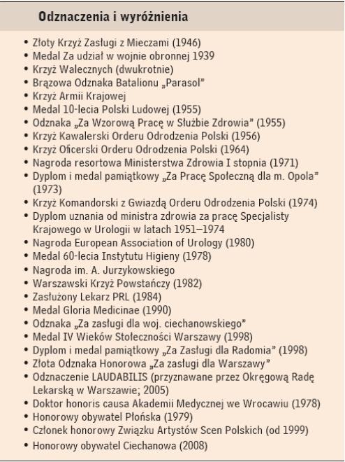 - W 1951 otrzymał habilitację (przewód habilitacyjny pt. Zagadnienie odprowadzania moczu), objął też funkcję Specjalisty Krajowego Ministerstwa Zdrowia w zakresie urologii (do 1974).