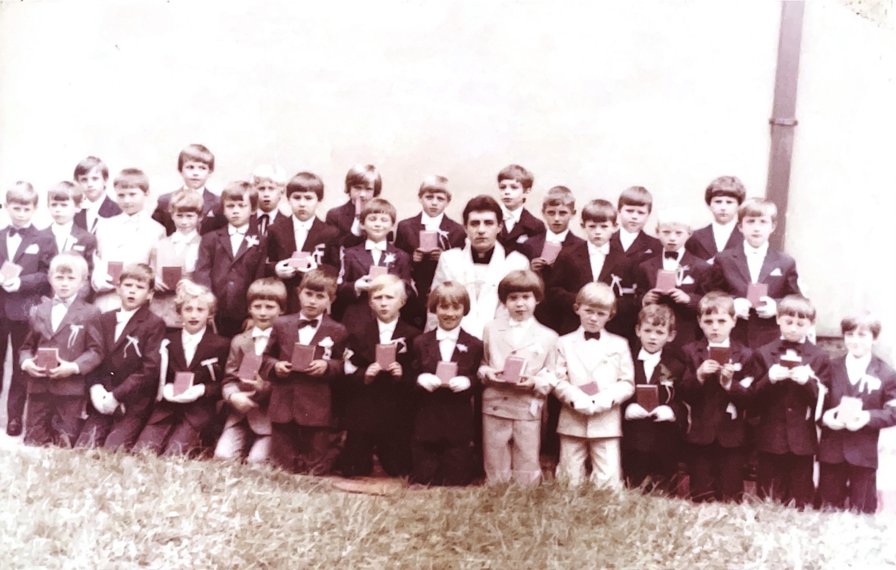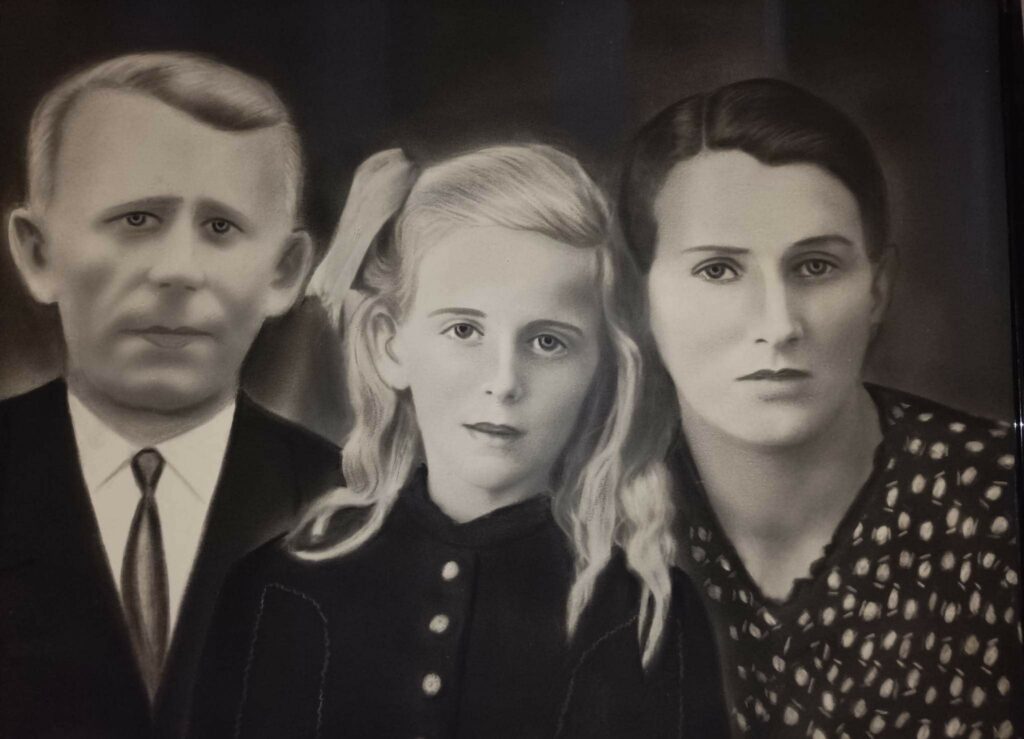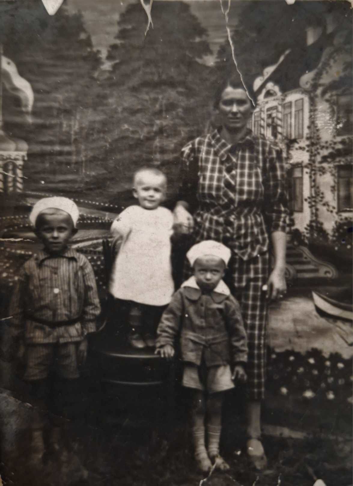 Około 1914 r. Zdjęcie rodzinne. Siedzący mężczyzna z wąsami to Jan Fulgenty Sobieszek (ur.1876 zm. 1942), mąż Zofii z d. Skorupska, przytulony do niego chłopiec to syn Jan Sobieszek (ur. 1909 r zm. po 1944 r. więzień KL Stutthof). Mieszkańcy Pomiechówka od około 1914 r. przeprowadzili się z Warszawy (Wawrzyszew) Pozostałe osoby nierozpoznane.
