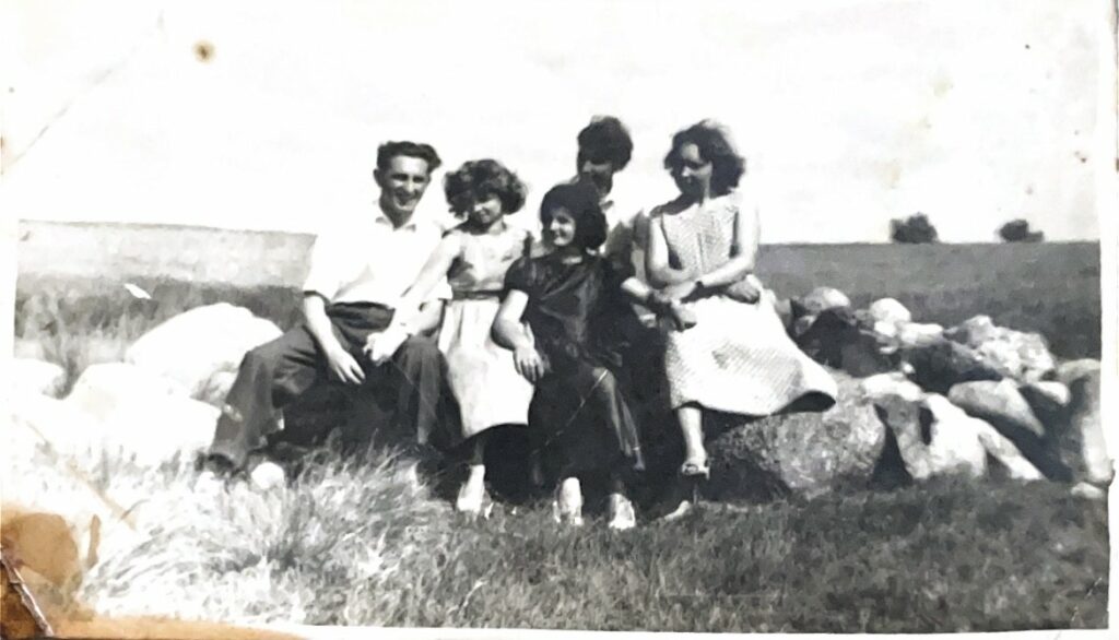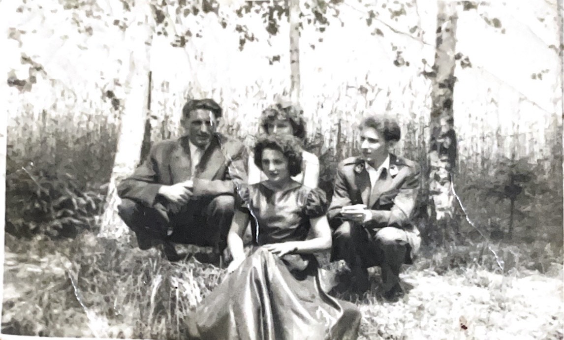 Lata 60. Zdjęcia wykonano w Kikołach. Mieszkanka Pomiechówka Krystyna Szubska z d. Piórkowska (siedzi w środku) z przyjaciółmi.