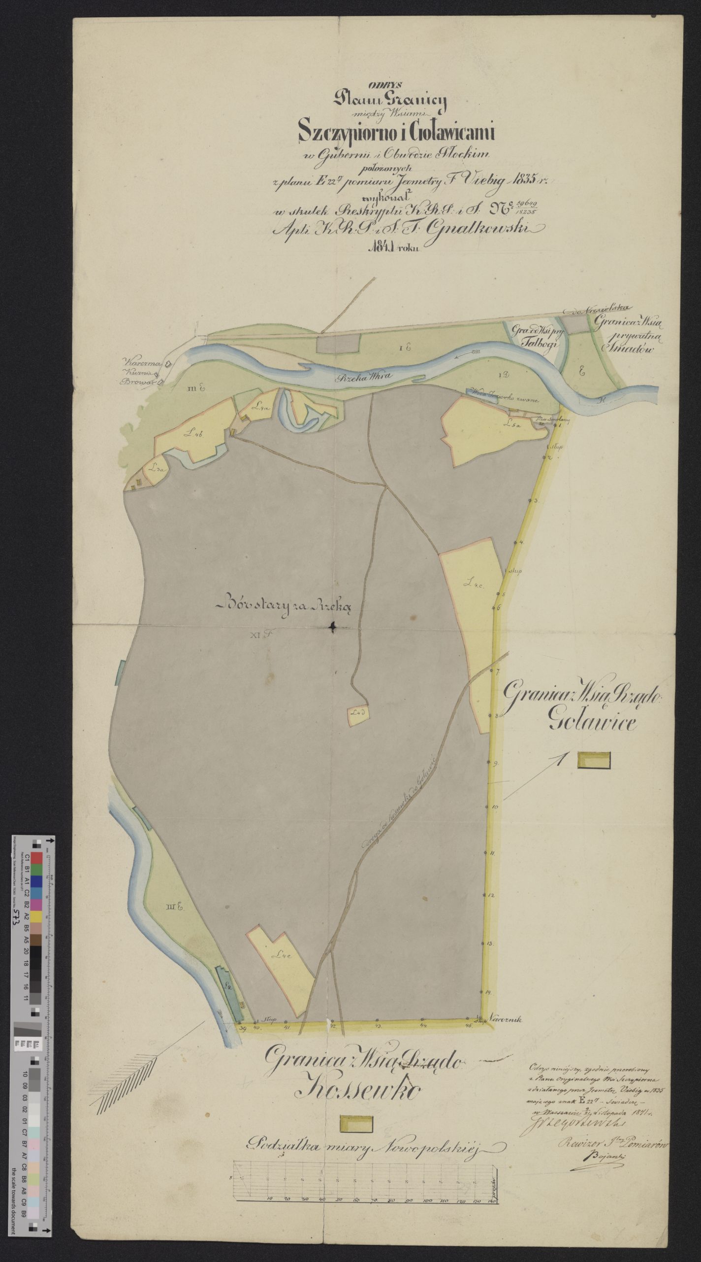 Mapa sporu granicznego między wsiami Szczypiorno, Kossewko, Kossewo i miastem Zakroczym
