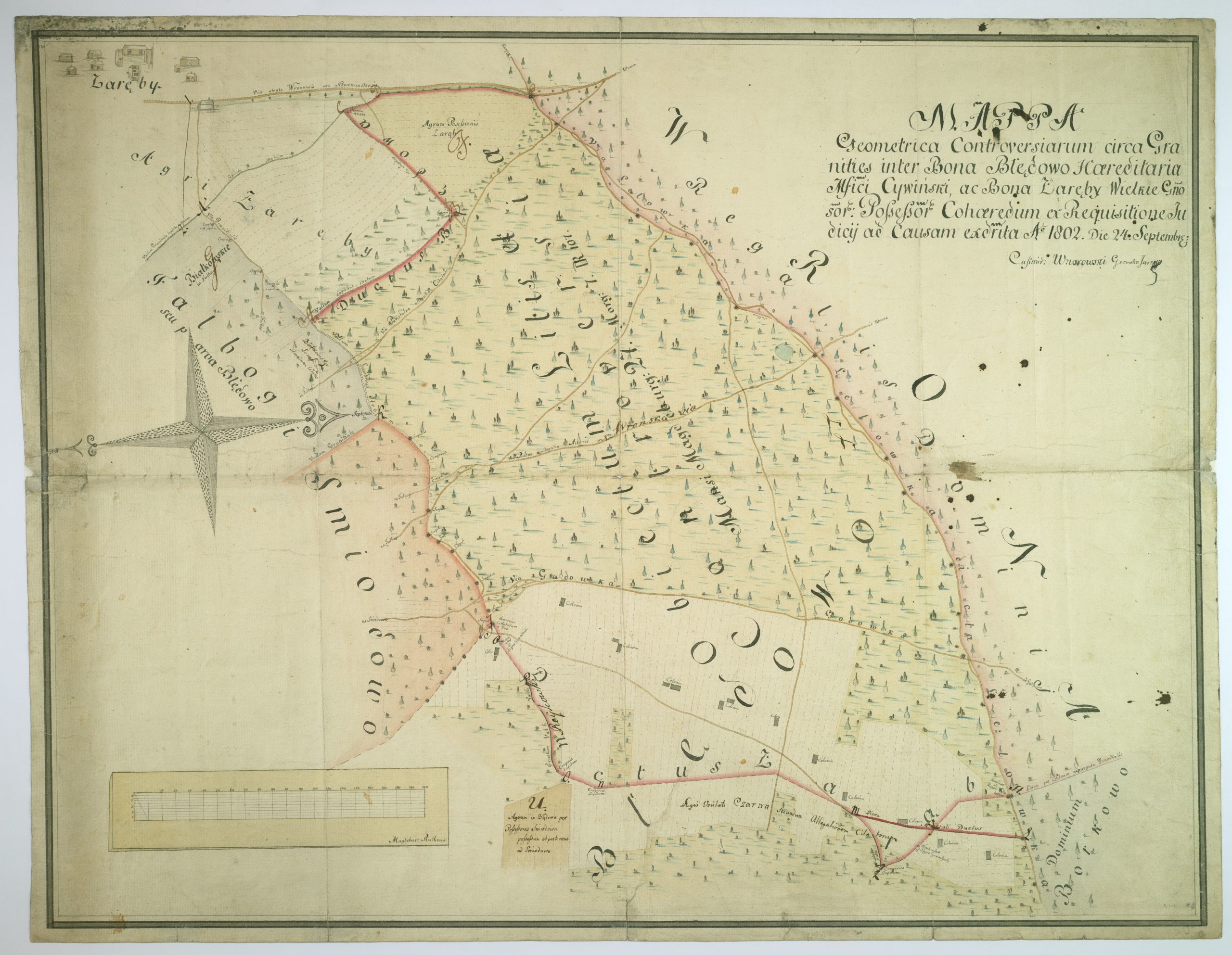 Mapa sporu granicznego między dobrami Błędowo i Zaręby