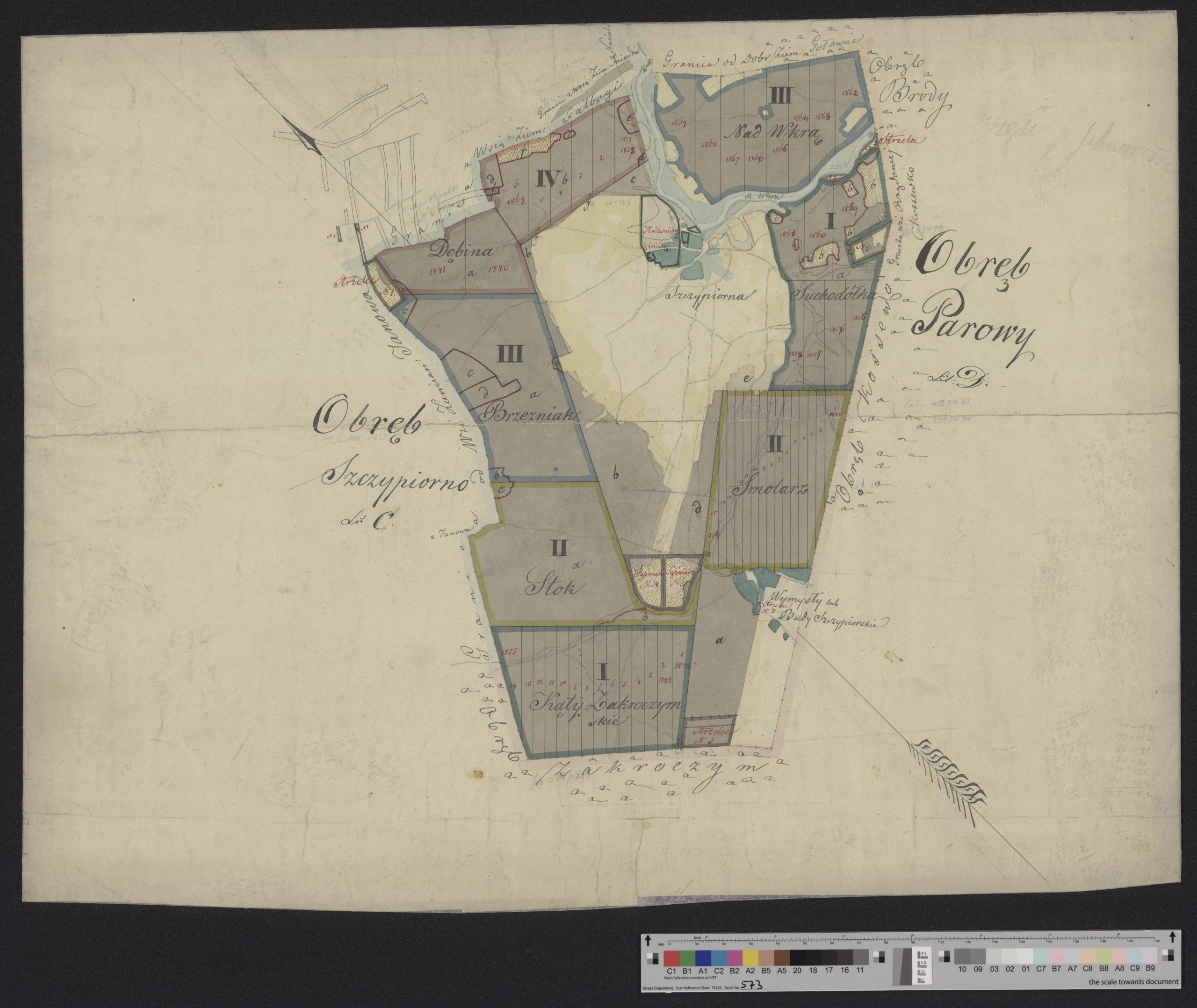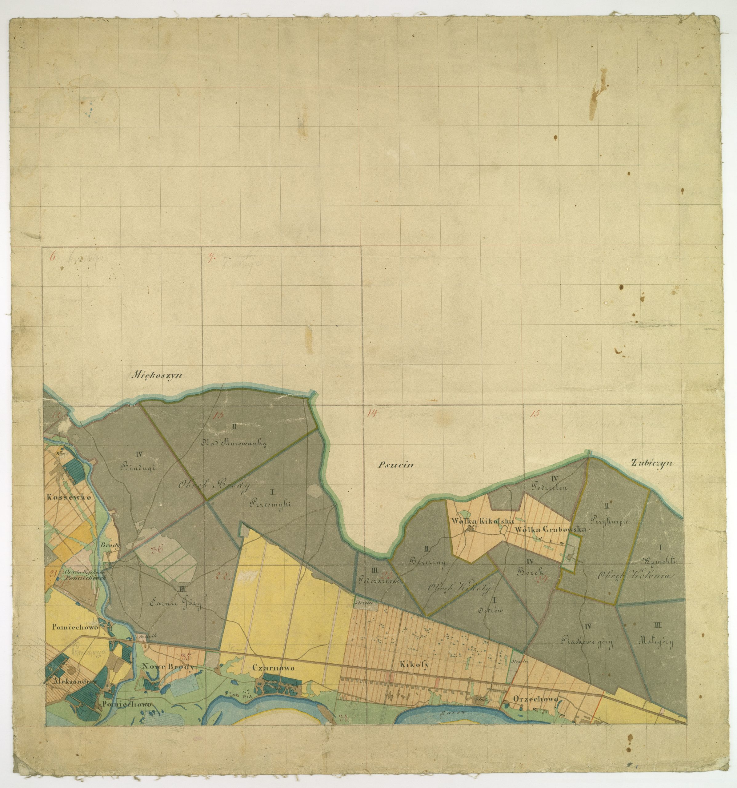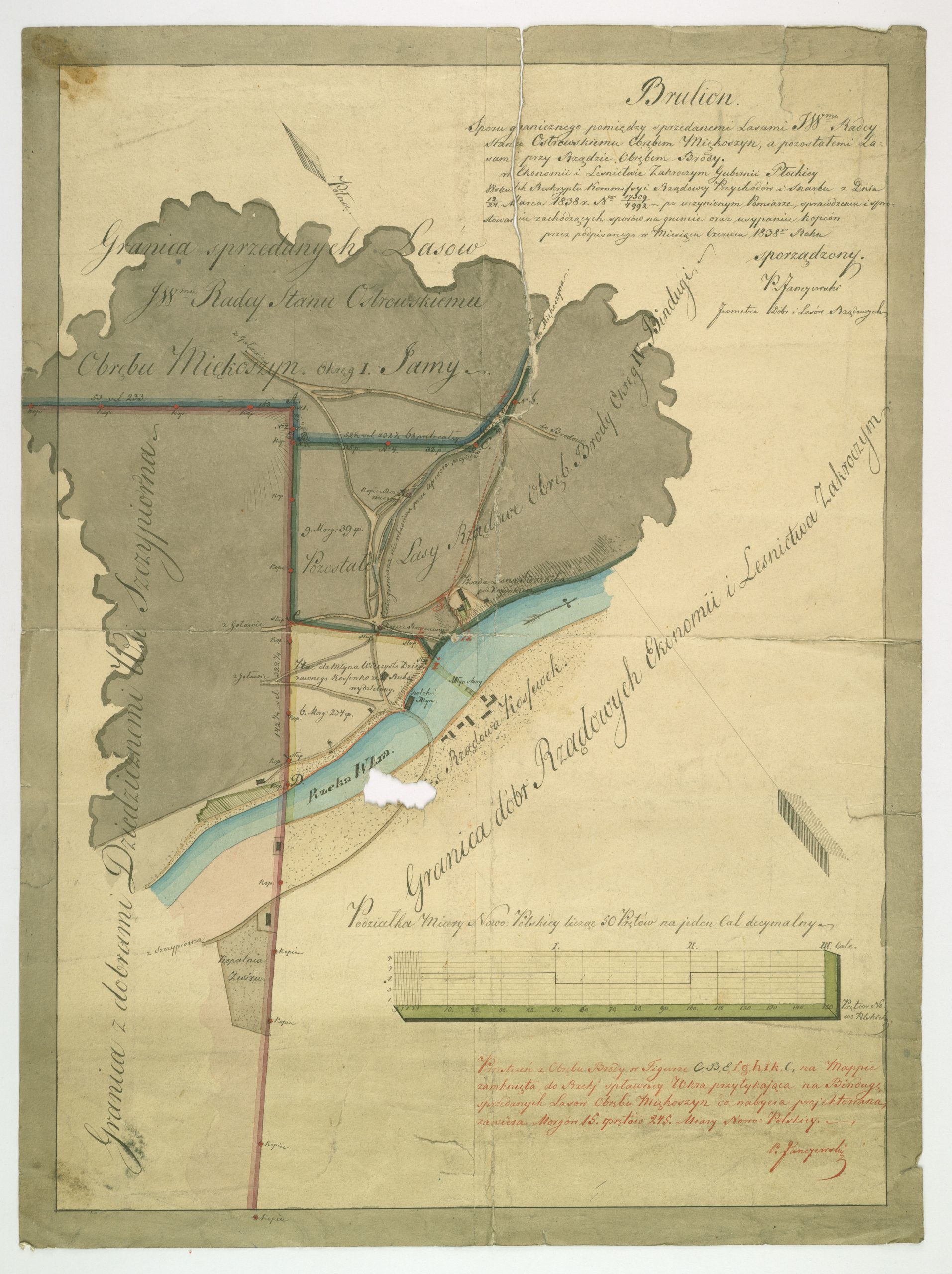 Plan sytuacyjny lasów wokół dóbr Pomiechów i Brody.