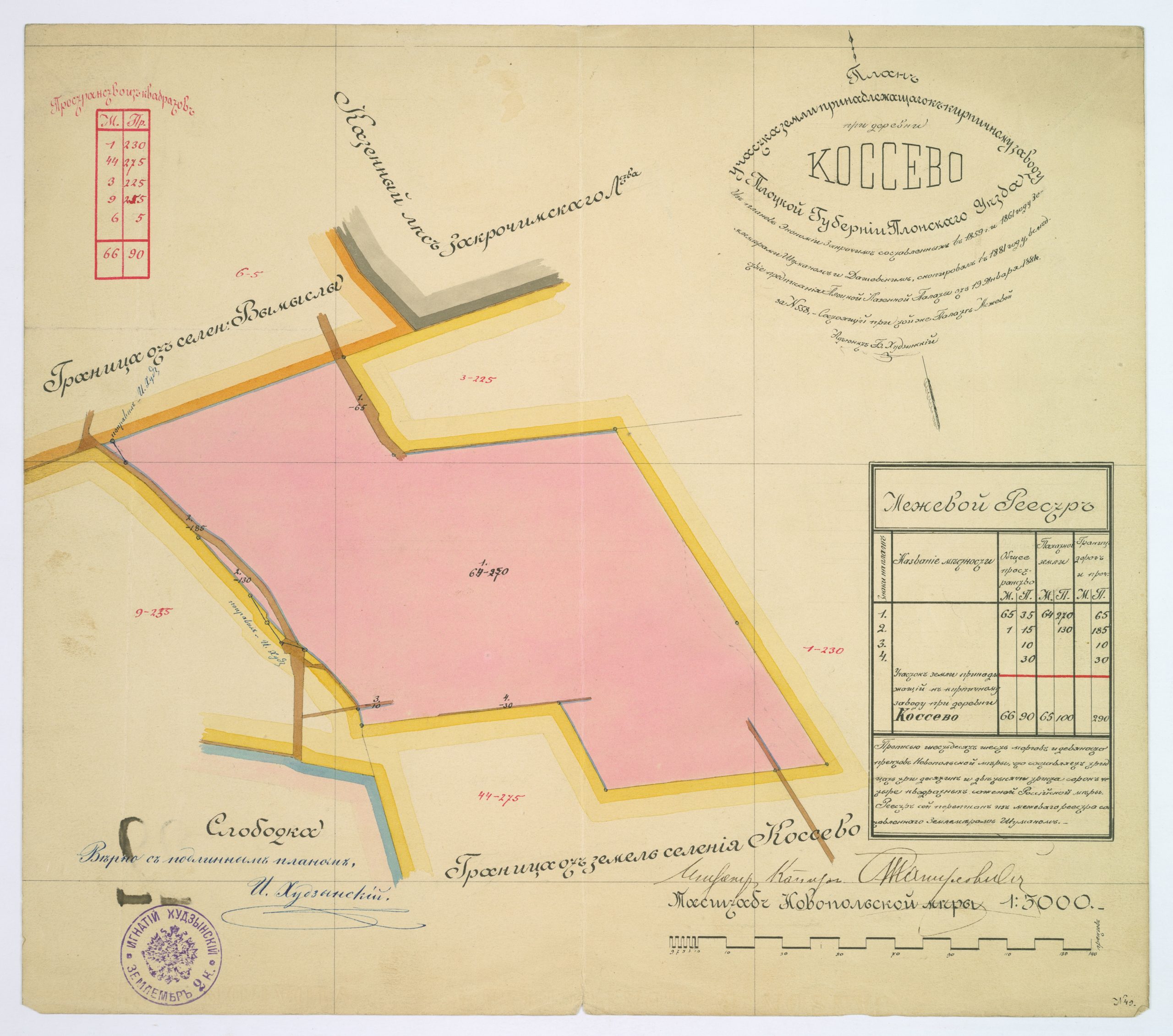 Mapa gruntów wsi Kossewo w ekonomii Zakroczym 1800-1815