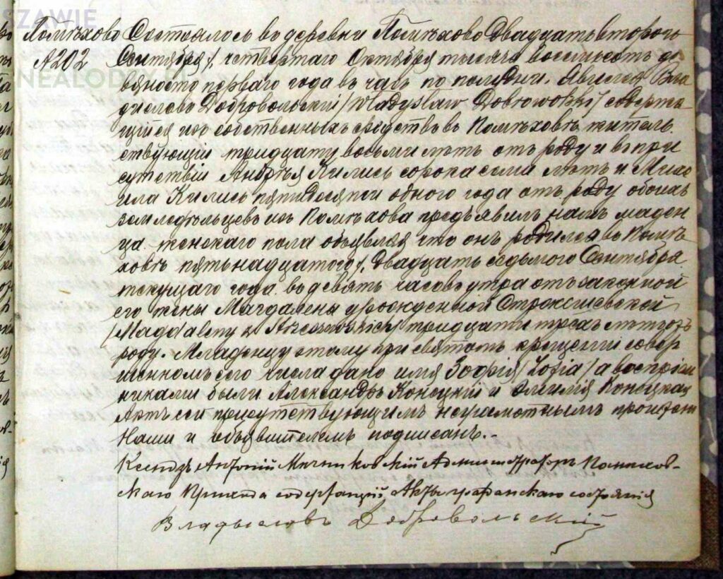 Poniżej akt chrztu Zofii Dobrowolskiej spisany w p. Pomiechowo.